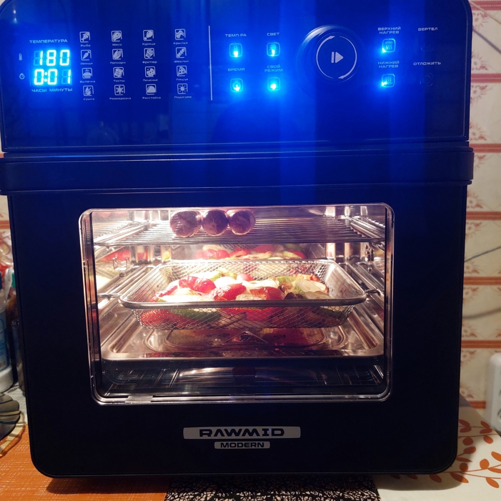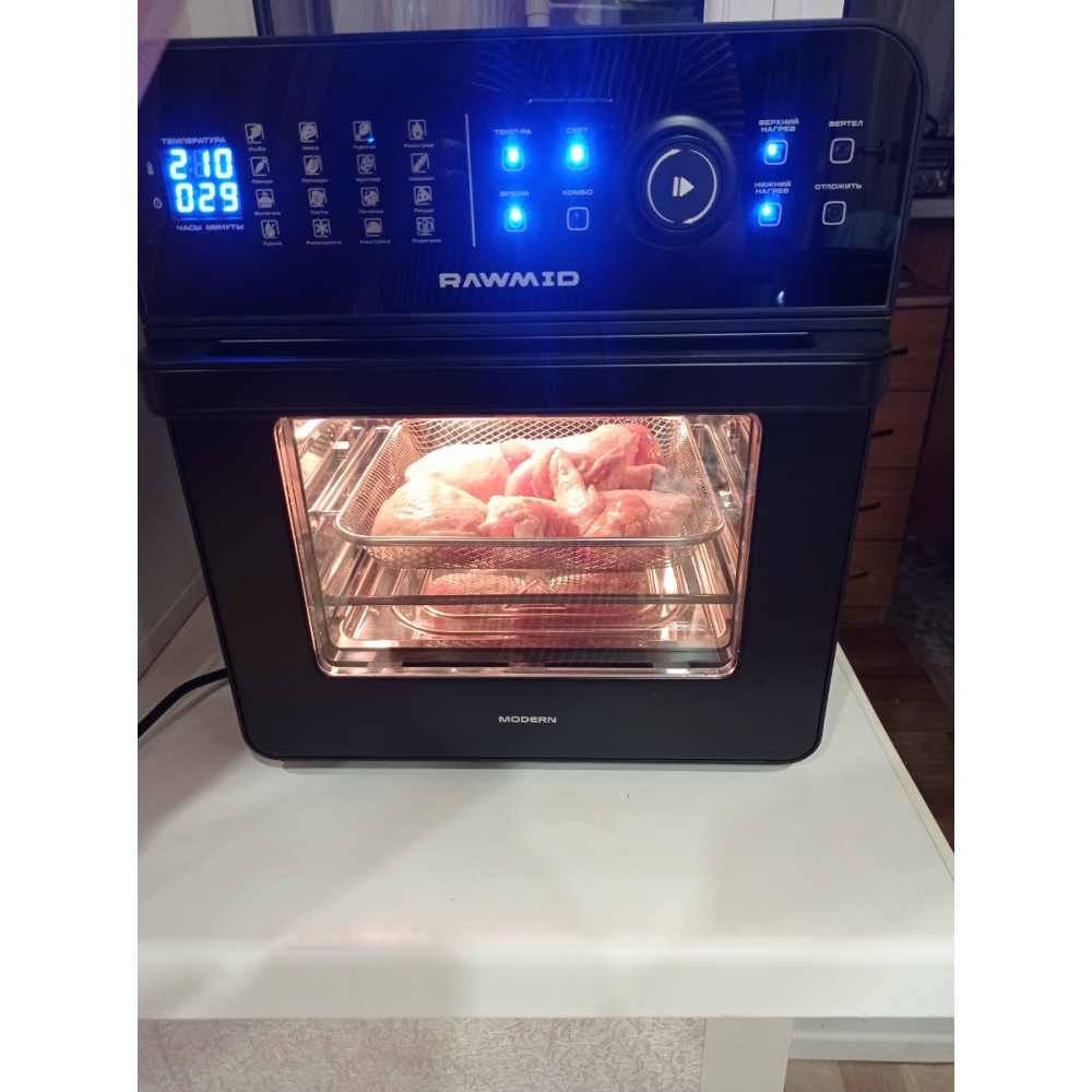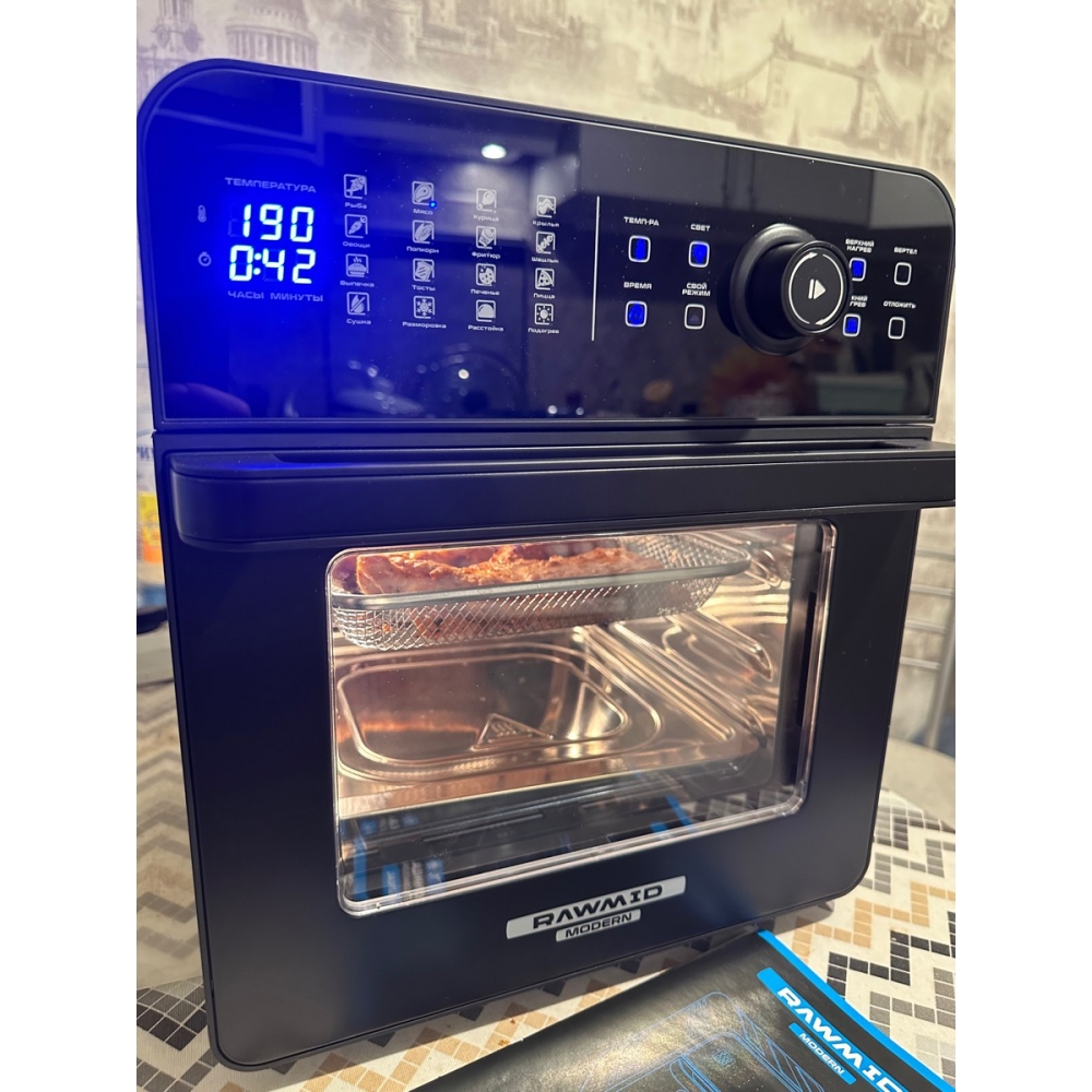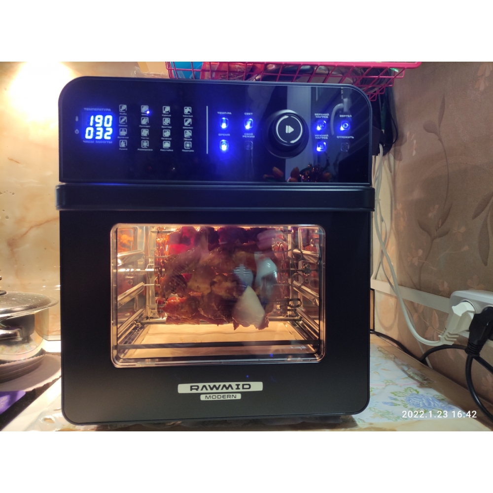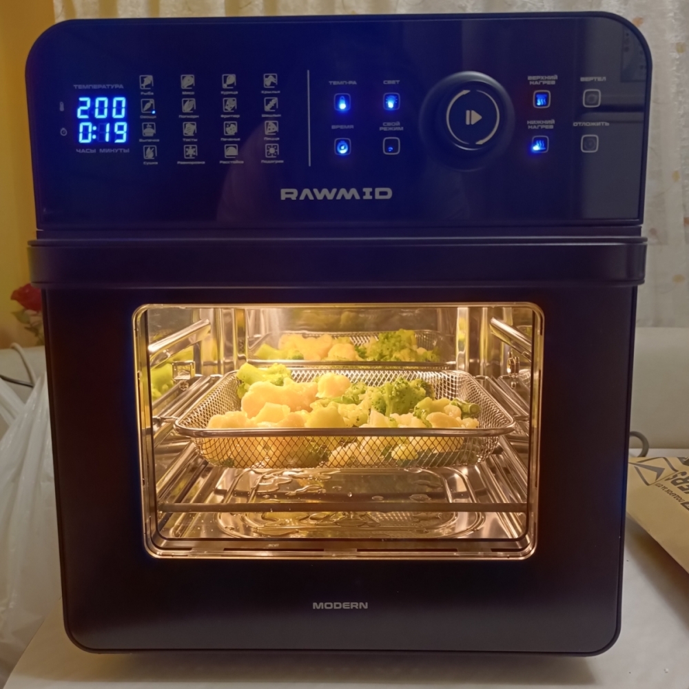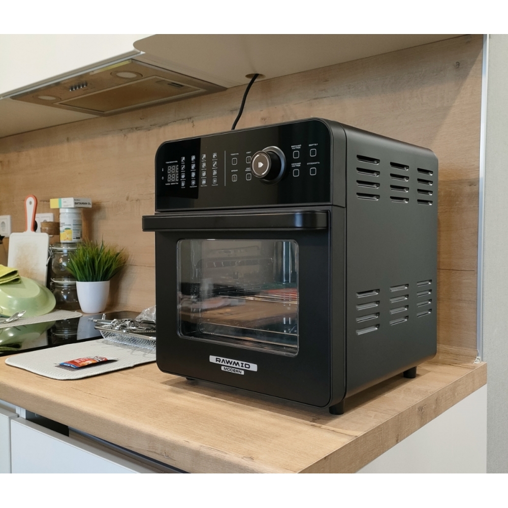 Аэрофритюрница RMA-02 — многофункциональная печь, которая сочетает в себе 4 прибора: фритюр, гриль, мини-печь, дегидратор. Любимые блюда получаются с хрустящей корочкой и сочными внутри, без добавления масла!