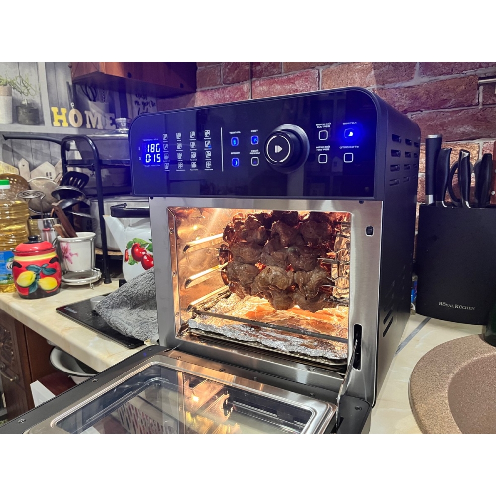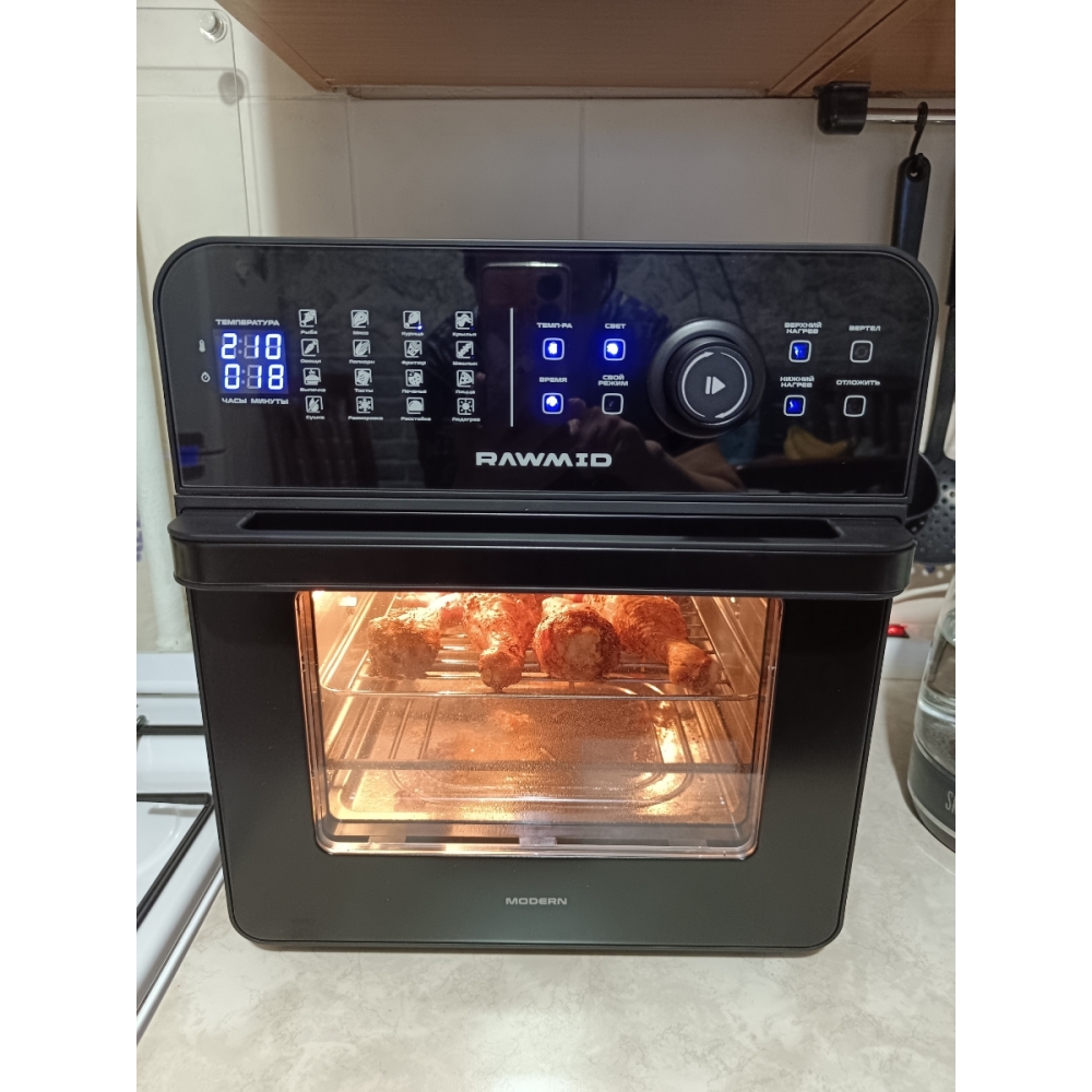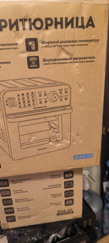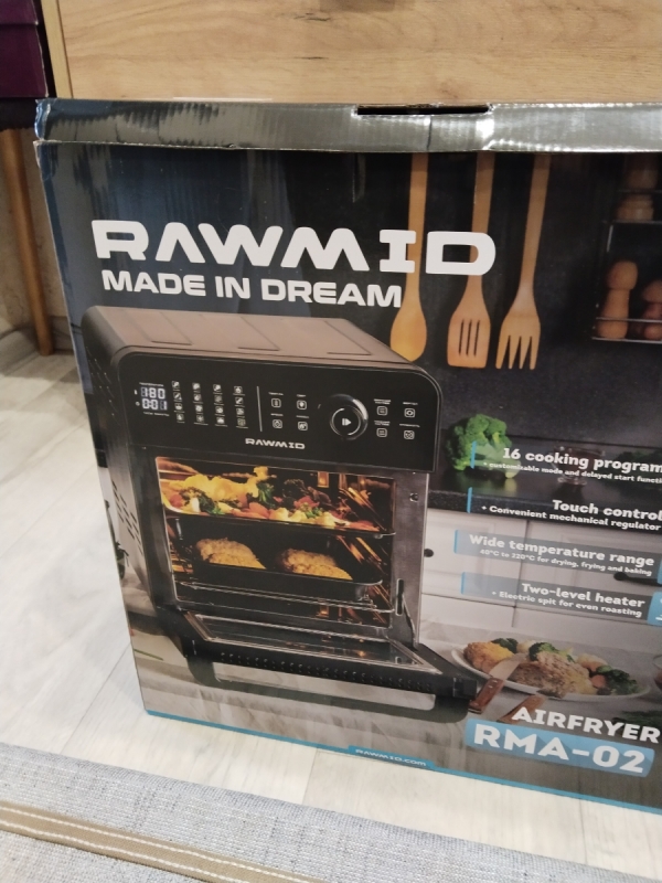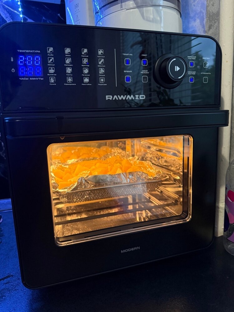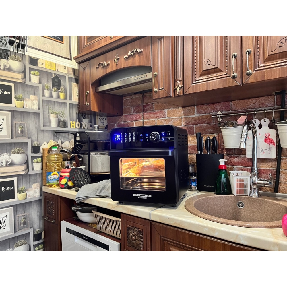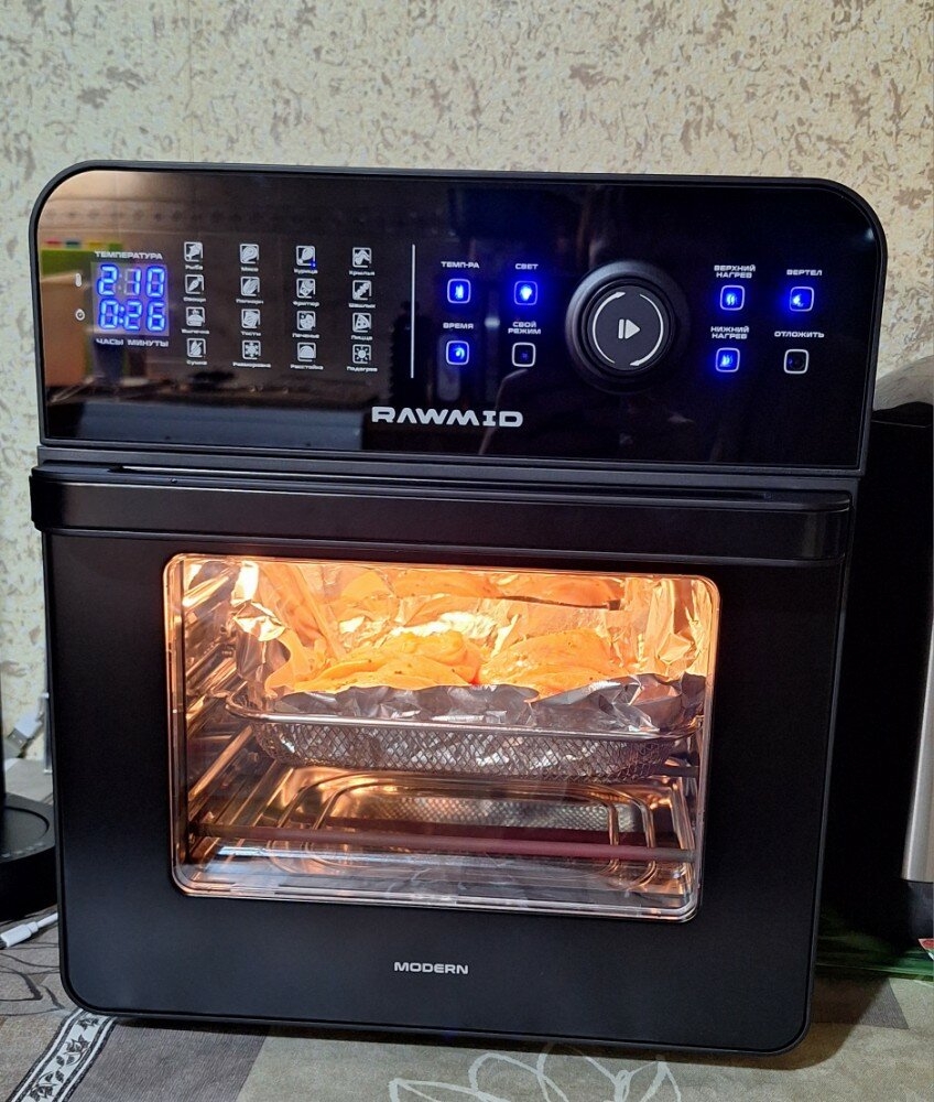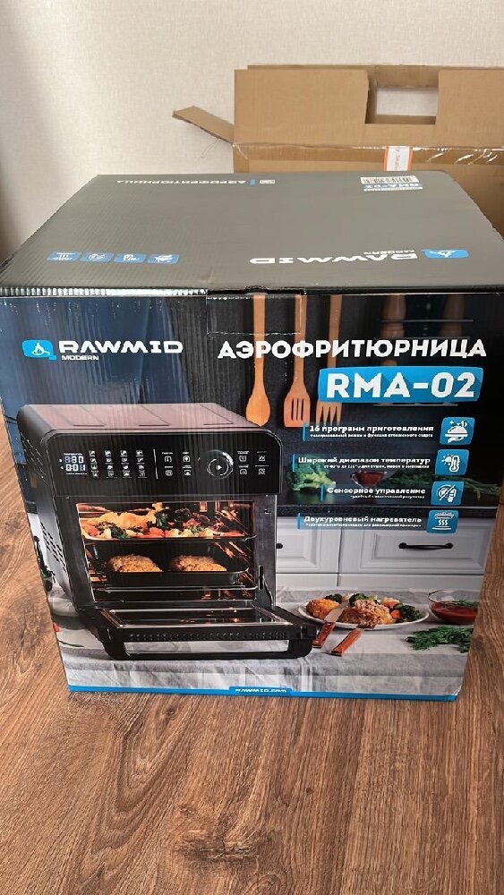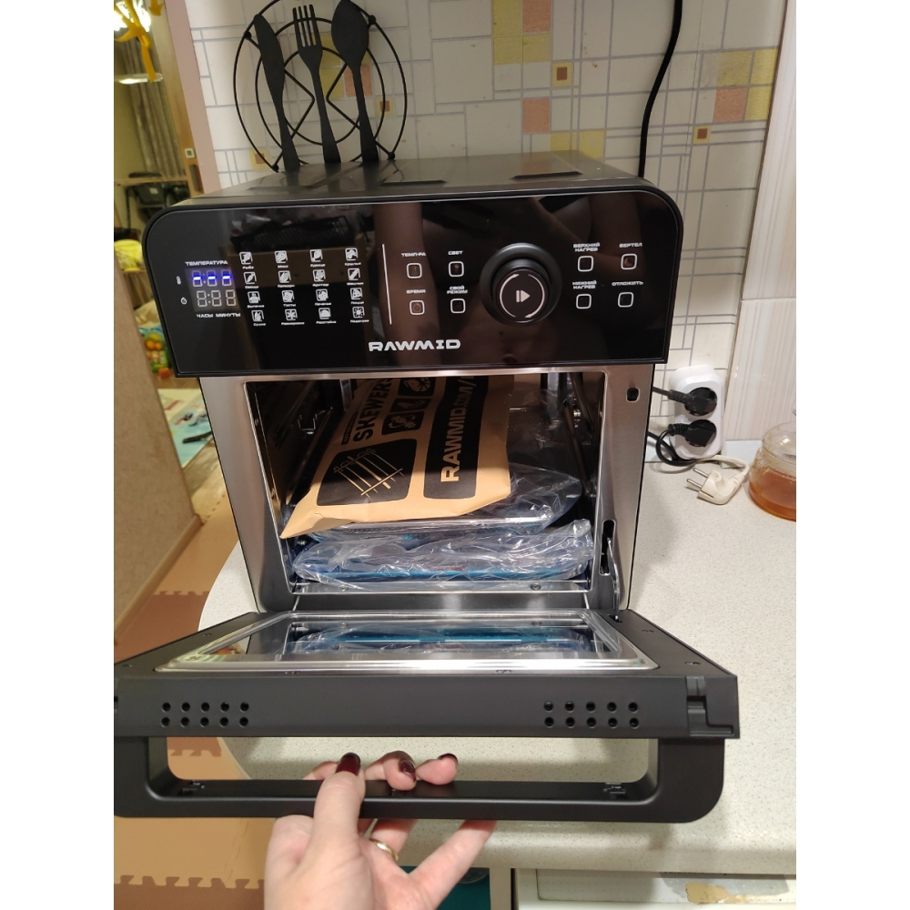 Аэрофритюрница RMA-02 — многофункциональная печь, которая сочетает в себе 4 прибора: фритюр, гриль, мини-печь, дегидратор. Любимые блюда получаются с хрустящей корочкой и сочными внутри, без добавления масла!