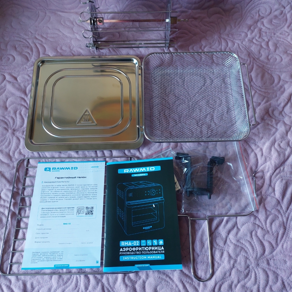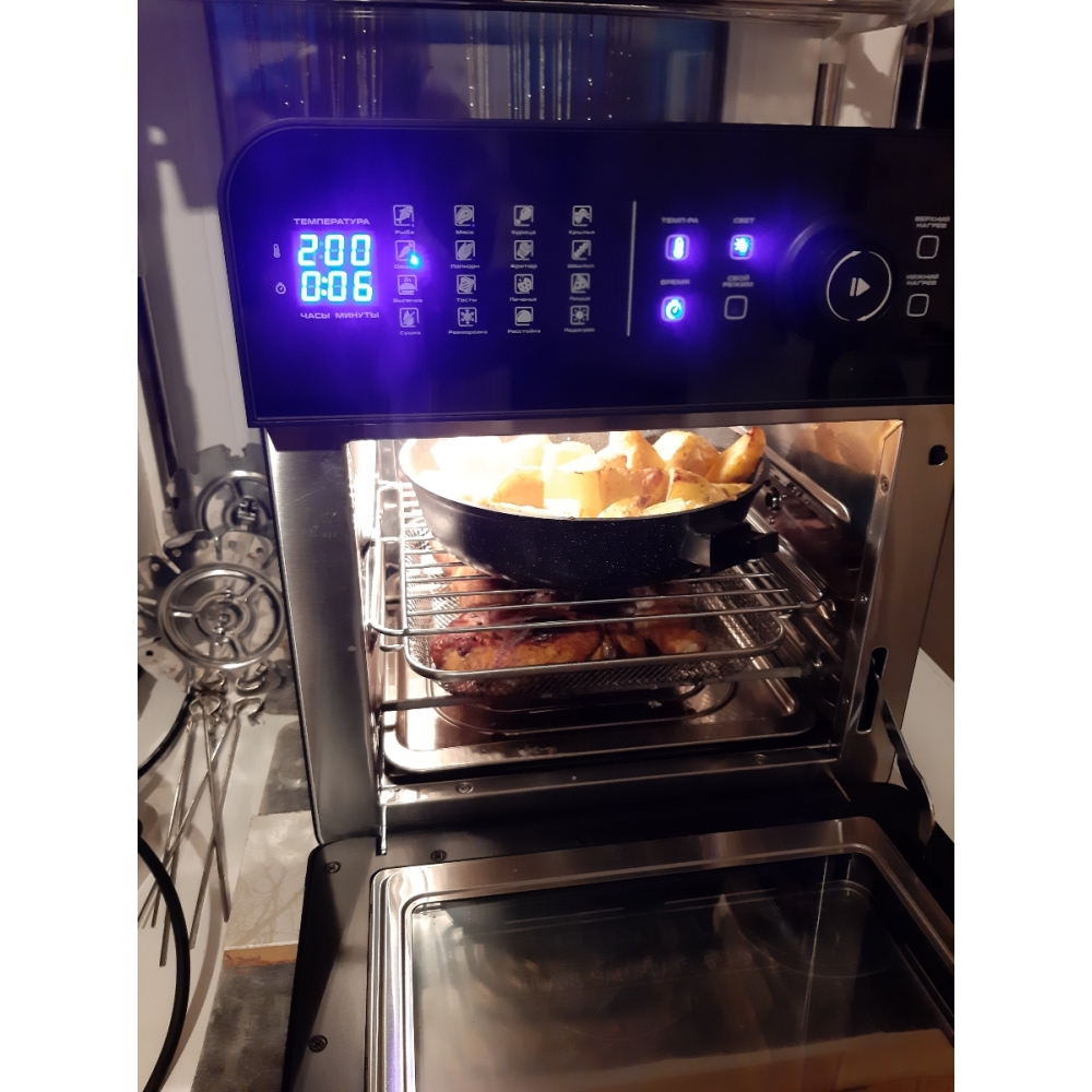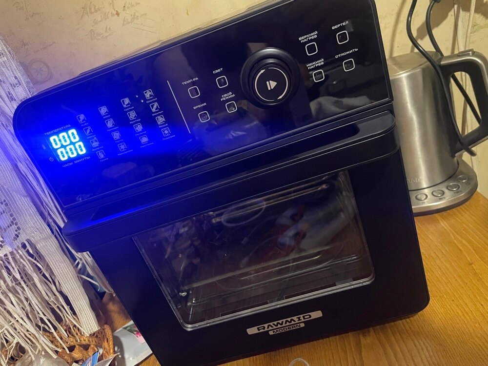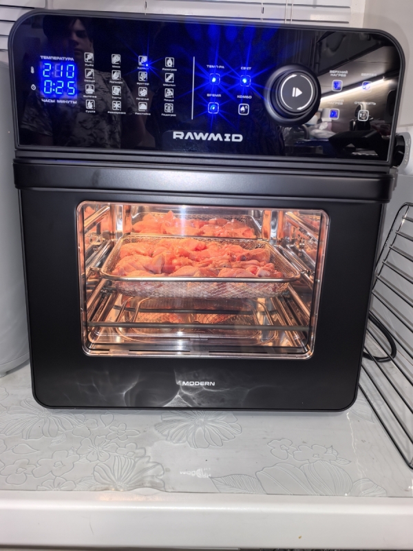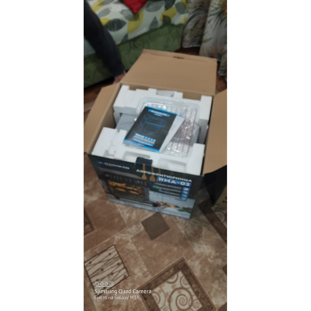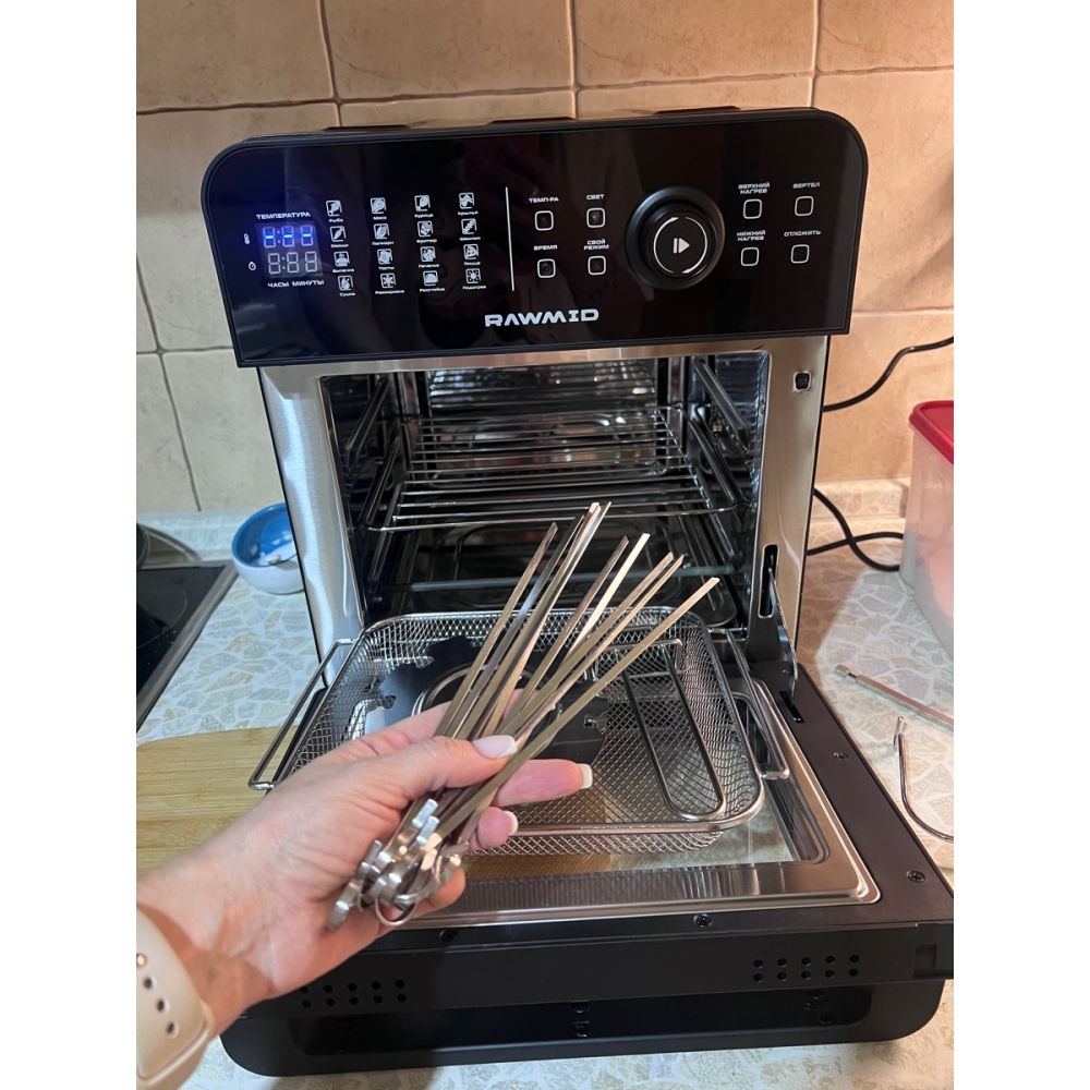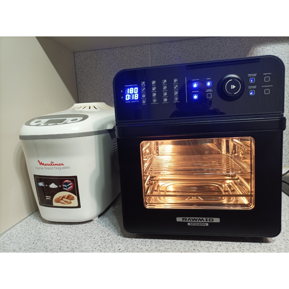 Аэрофритюрница RMA-02 — многофункциональная печь, которая сочетает в себе 4 прибора: фритюр, гриль, мини-печь, дегидратор. Любимые блюда получаются с хрустящей корочкой и сочными внутри, без добавления масла!