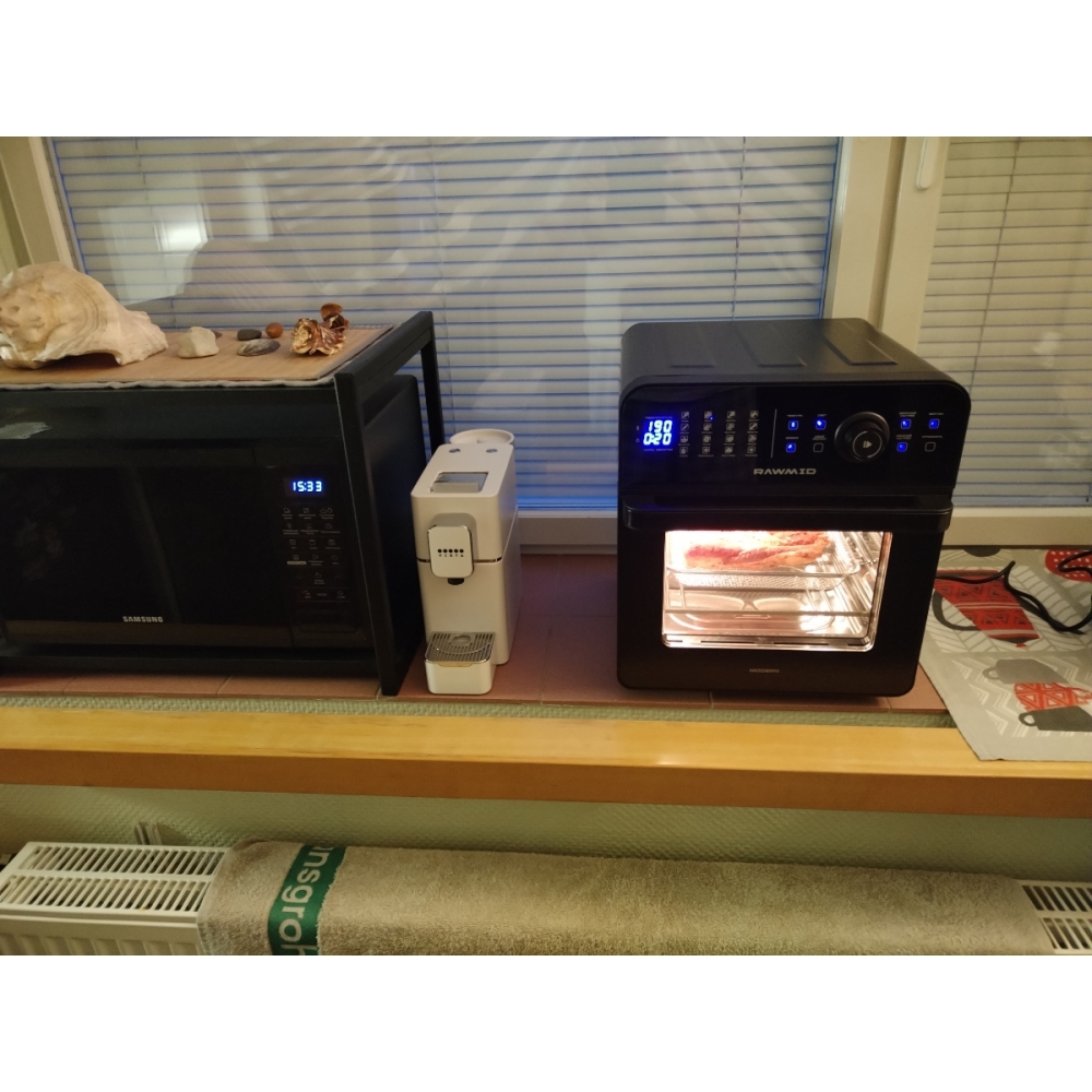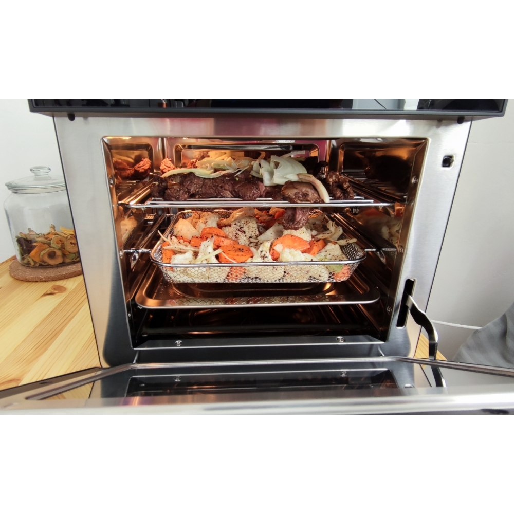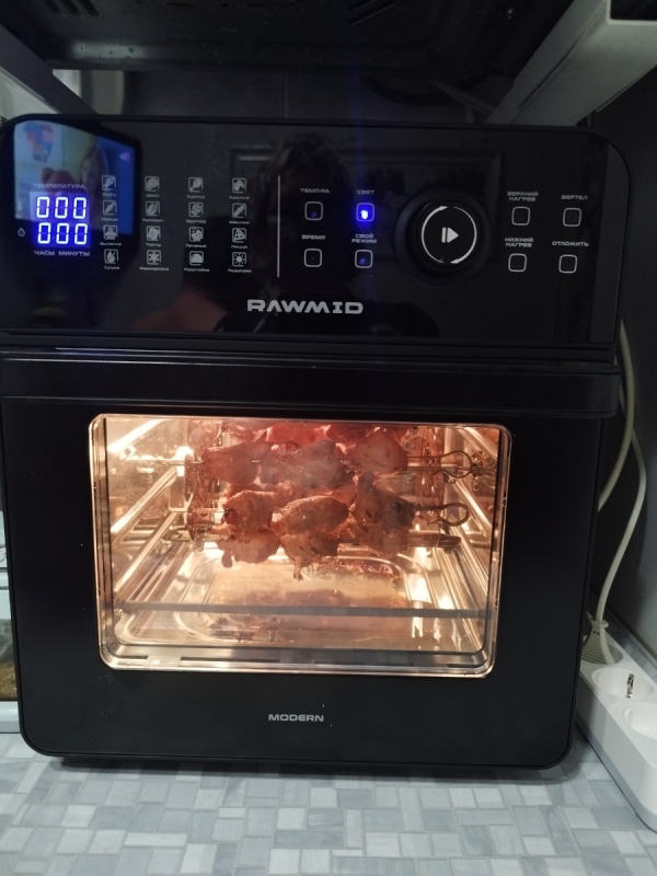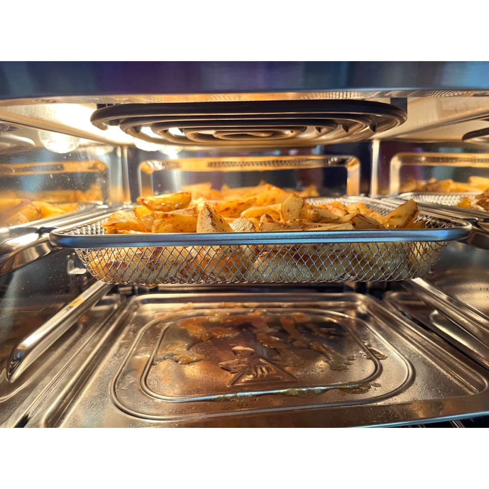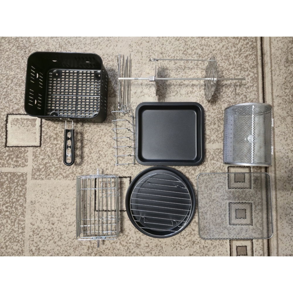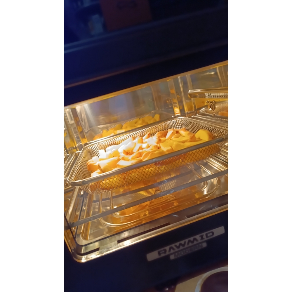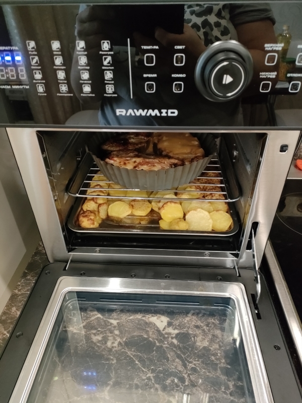 Аэрофритюрница RMA-02 — многофункциональная печь, которая сочетает в себе 4 прибора: фритюр, гриль, мини-печь, дегидратор. Любимые блюда получаются с хрустящей корочкой и сочными внутри, без добавления масла!