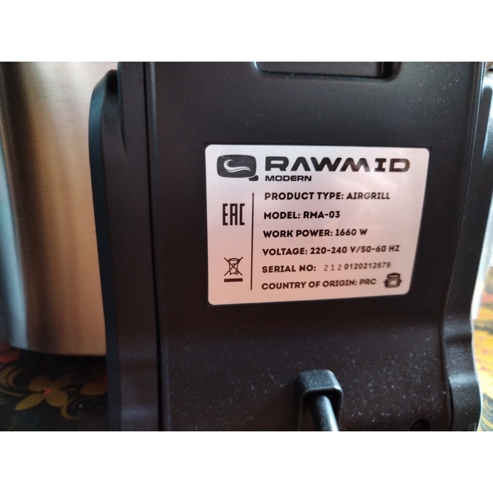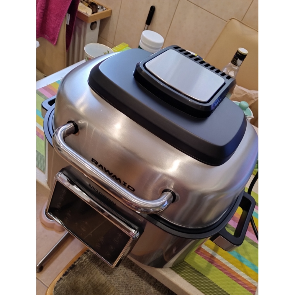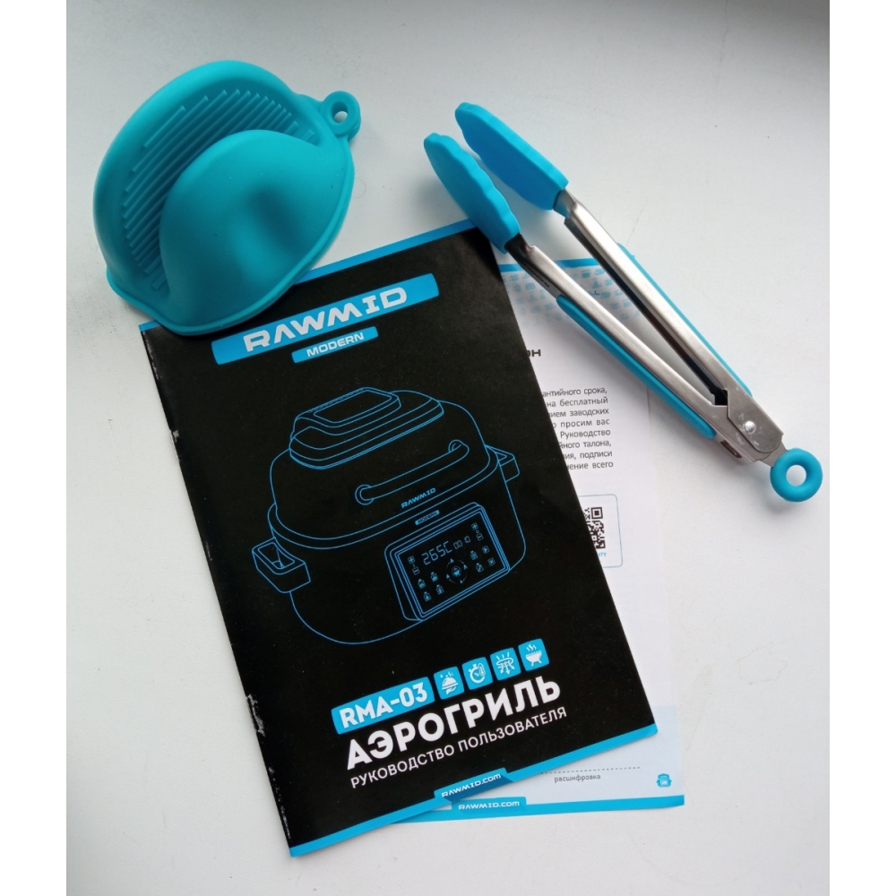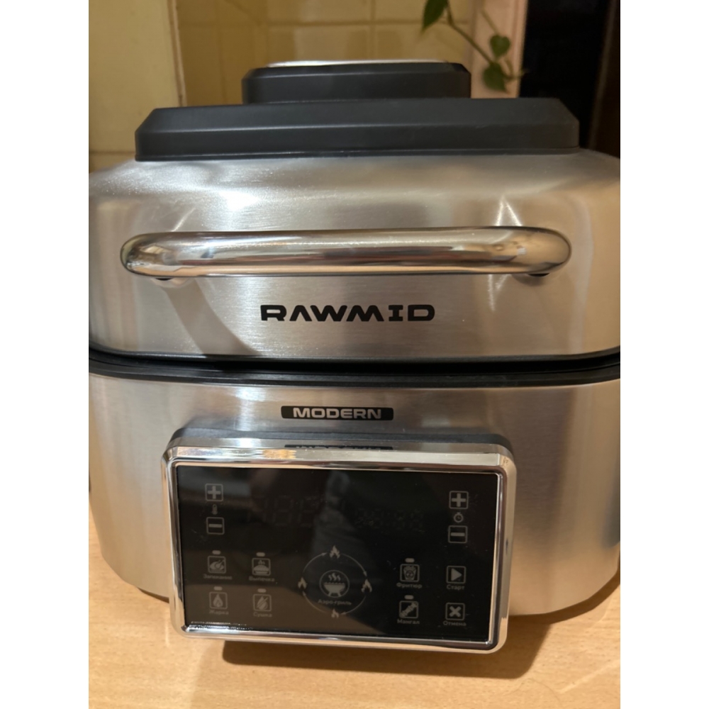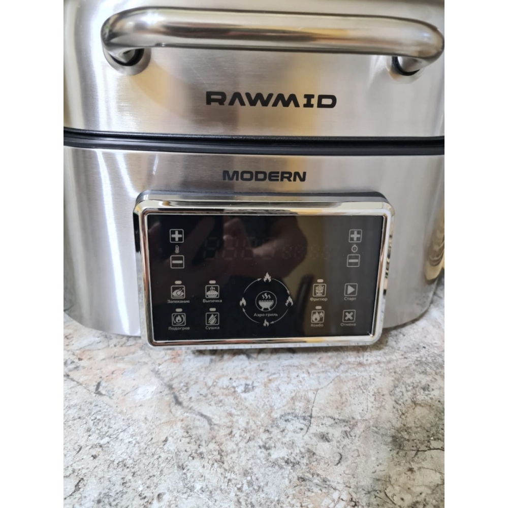 Аэрогриль RAWMID Modern лёгок и прост в уходе. Продукты нагреваются воздухом, а не решёткой, поэтому масло, специи и прочие ингредиенты не прилипают к поверхности (как это бывает с контактными грилями). К тому же чаша для запекания и решётка-гриль имеют стойкое антипригарное покрытие, с которого остатки пищи легко смываются. Нагревательный элемент спрятан в верхнюю крышку и никак не контактирует с продуктами, поэтому его вовсе не придётся чистить.