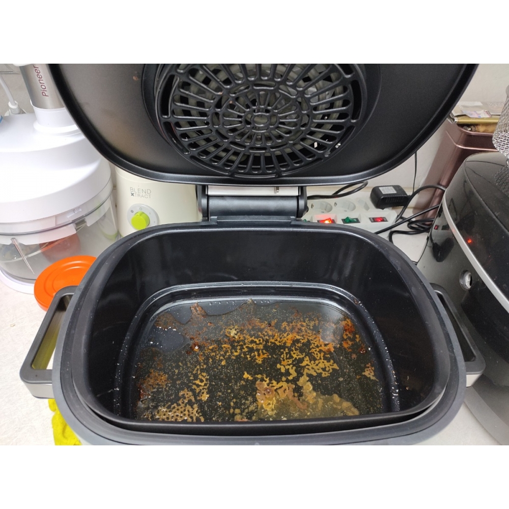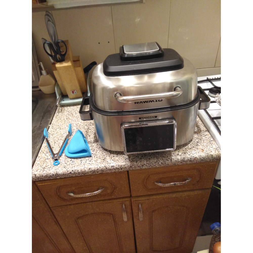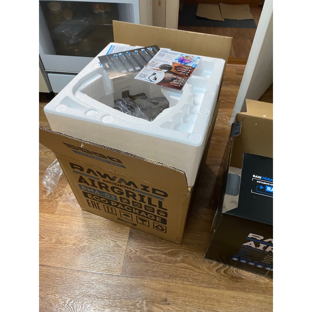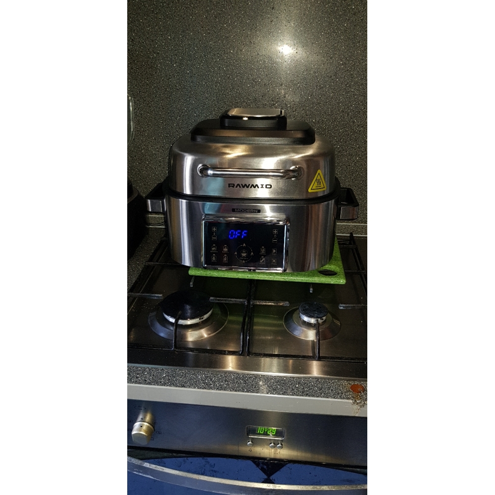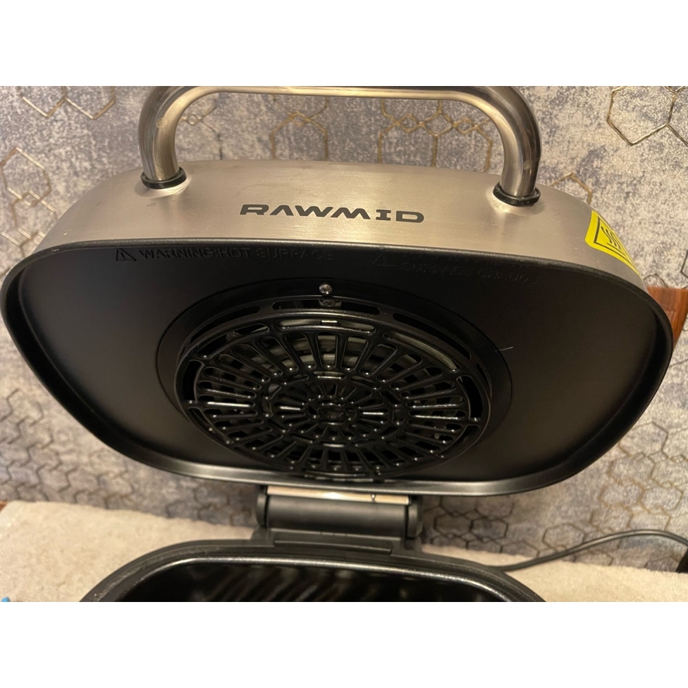 Аэрогриль RAWMID Modern лёгок и прост в уходе. Продукты нагреваются воздухом, а не решёткой, поэтому масло, специи и прочие ингредиенты не прилипают к поверхности (как это бывает с контактными грилями). К тому же чаша для запекания и решётка-гриль имеют стойкое антипригарное покрытие, с которого остатки пищи легко смываются. Нагревательный элемент спрятан в верхнюю крышку и никак не контактирует с продуктами, поэтому его вовсе не придётся чистить.