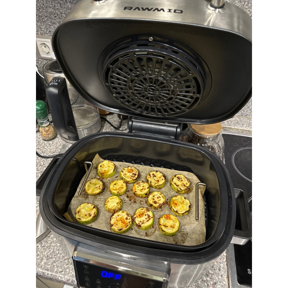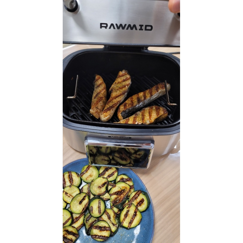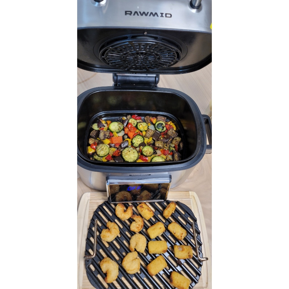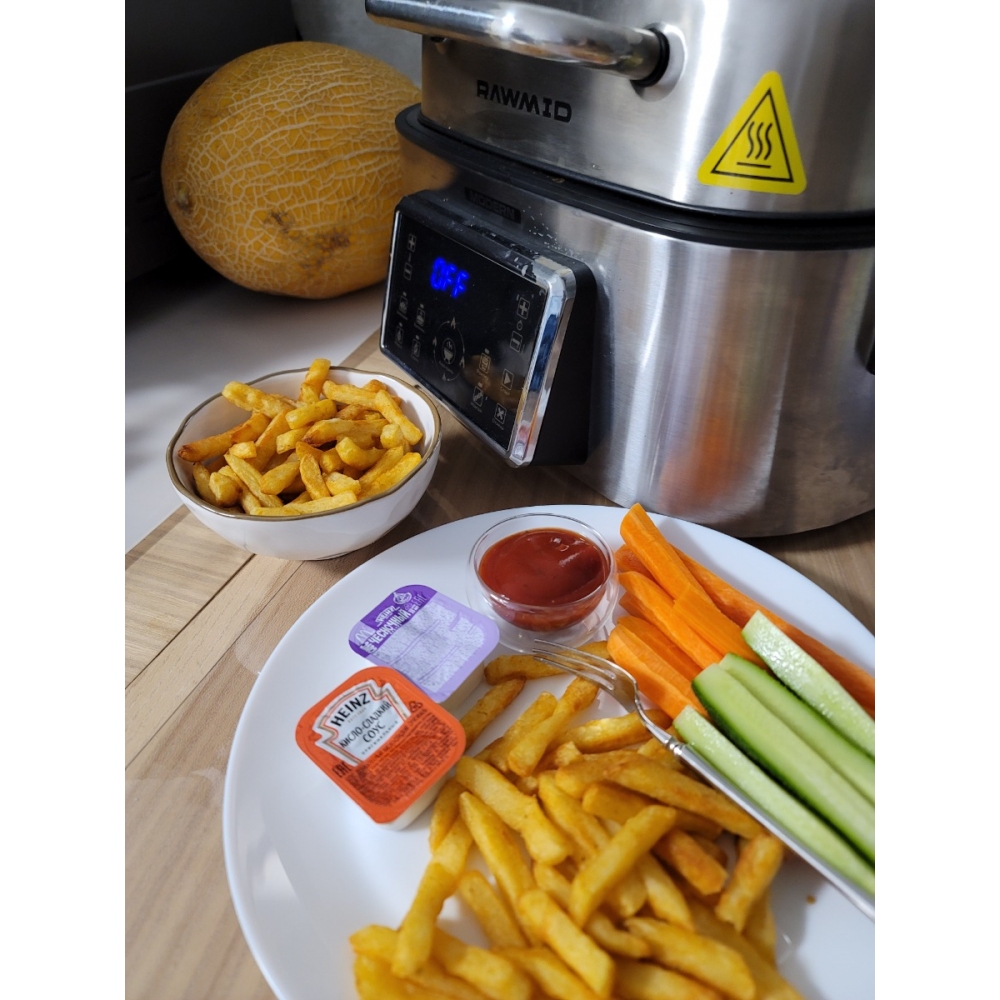 В аэрогриле RAWMID продукты обжариваются за счёт потоков горячего воздуха, поэтому в них можно добавлять меньше масла или вовсе не добавлять его, при этом блюда всё равно будут получаться поджаристыми, а значит вкусными и при этом ещё и более полезными.