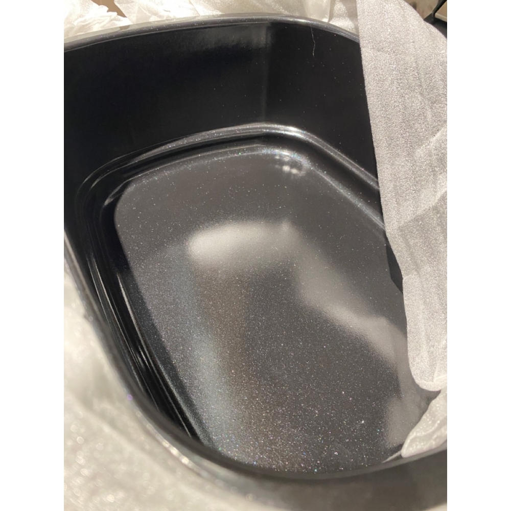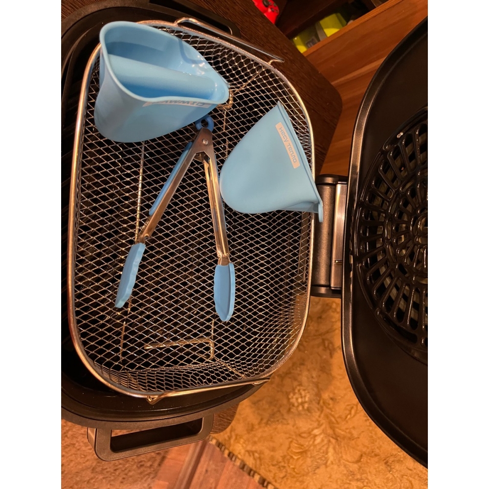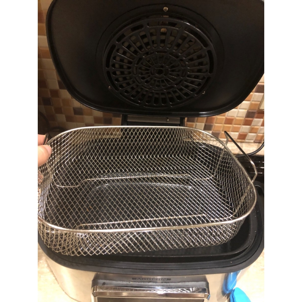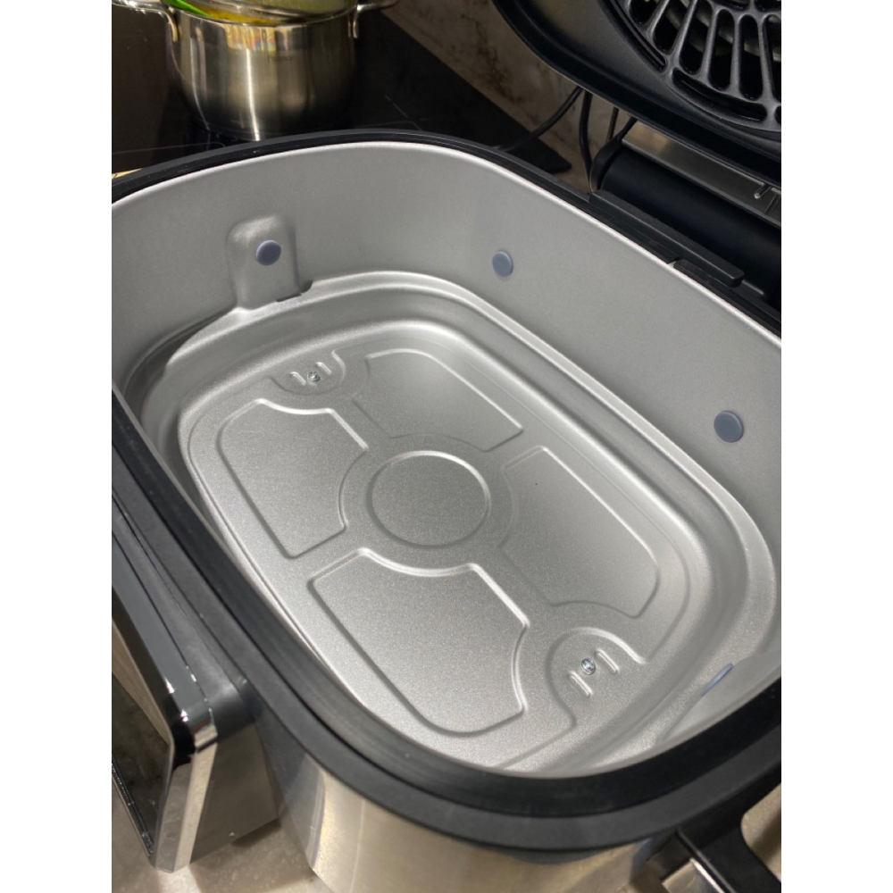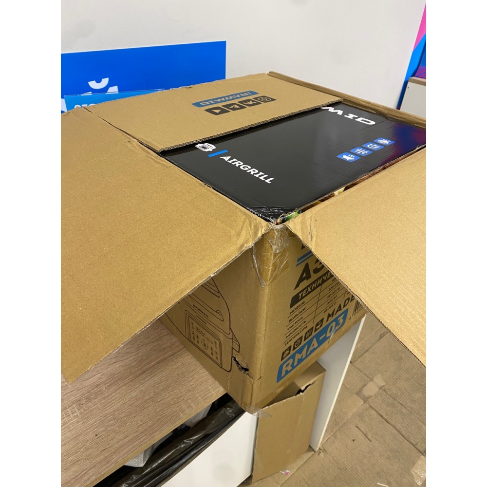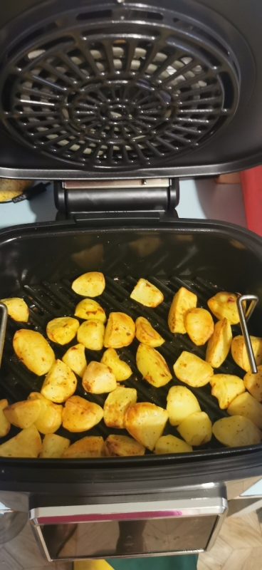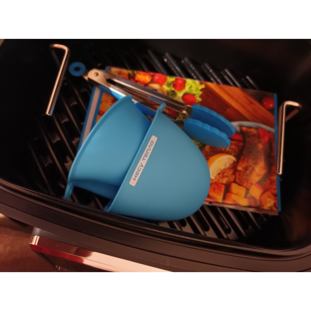 Большой многолопастной вентилятор, расположенный в верхней крышке устройства, сквозная решётка-гриль и обтекаемая форма чаши для запекания обеспечивают мощный и равномерный со всех сторон 3D-обдув продуктов для их равномерной обработки горячим воздухом.