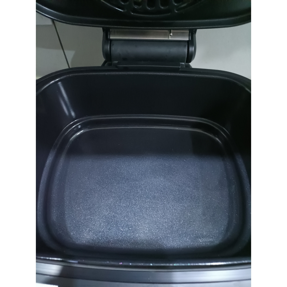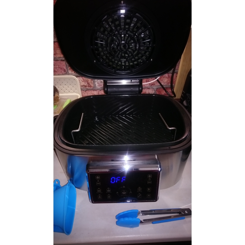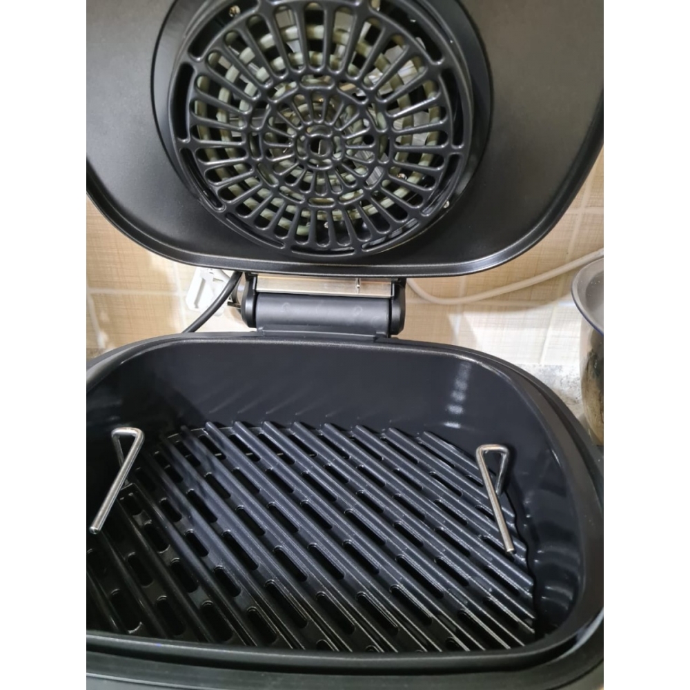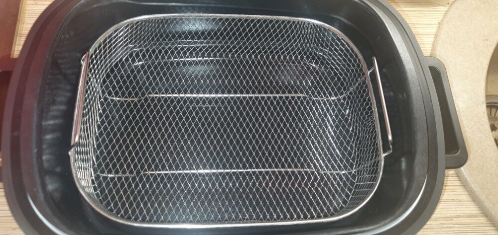 За нагрев воздуха отвечает обширный и мощный нагревательный элемент, выполненный из долговечной стали и расположенный в верхней крышке устройства. Спиральная форма нагревательного элемента обеспечивает широкий охват пространства и быстрый прогрев воздуха. Съёмная защитная решётка нагревателя предотвращает его загрязнение, а также способствует более равномерному распределнию воздуха в чаше.