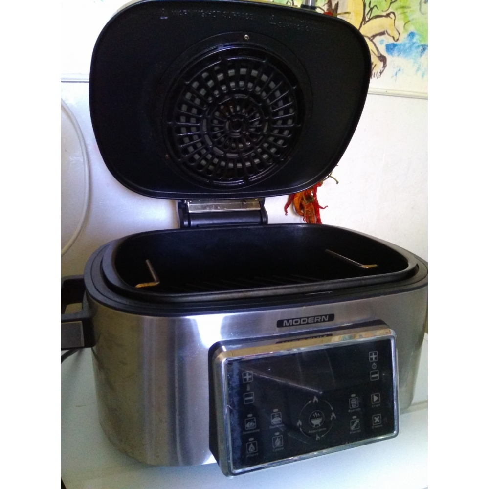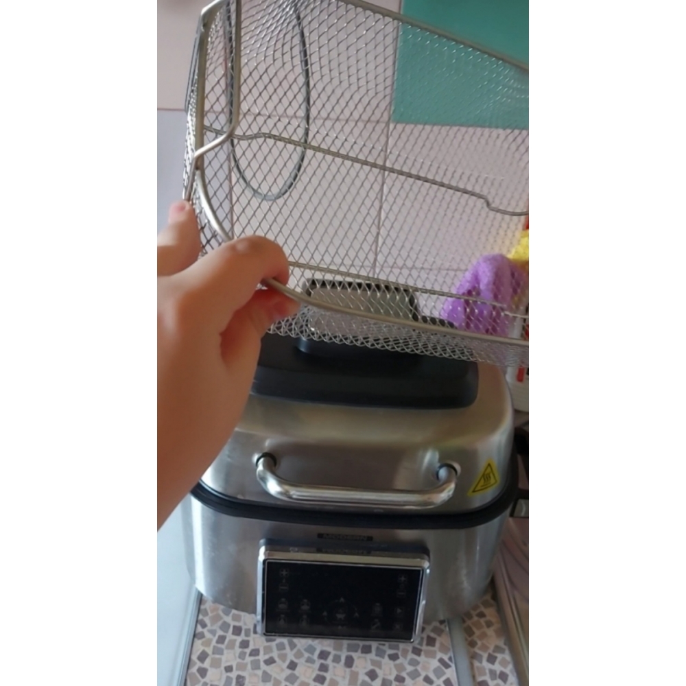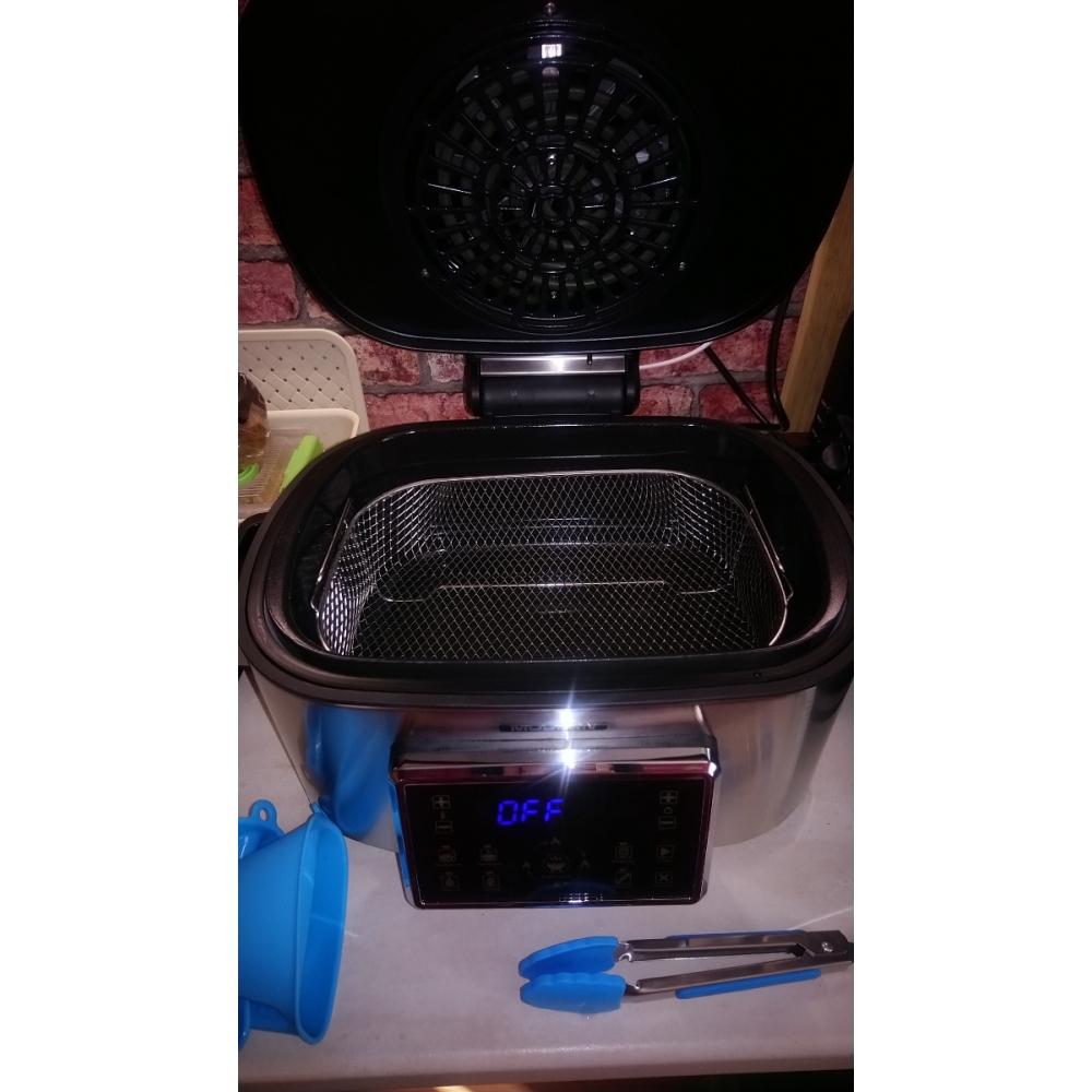 За нагрев воздуха отвечает обширный и мощный нагревательный элемент, выполненный из долговечной стали и расположенный в верхней крышке устройства. Спиральная форма нагревательного элемента обеспечивает широкий охват пространства и быстрый прогрев воздуха. Съёмная защитная решётка нагревателя предотвращает его загрязнение, а также способствует более равномерному распределнию воздуха в чаше.