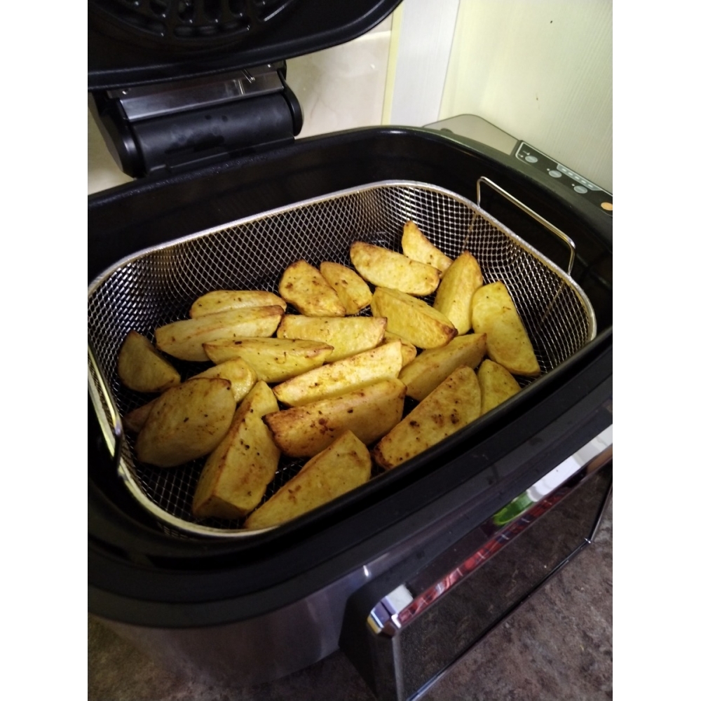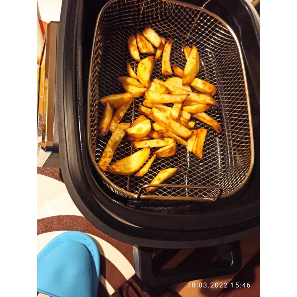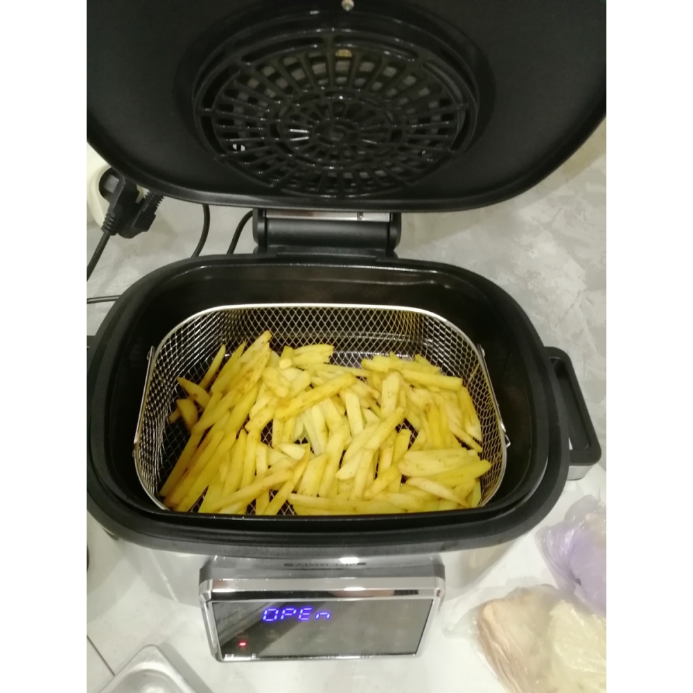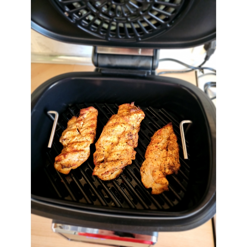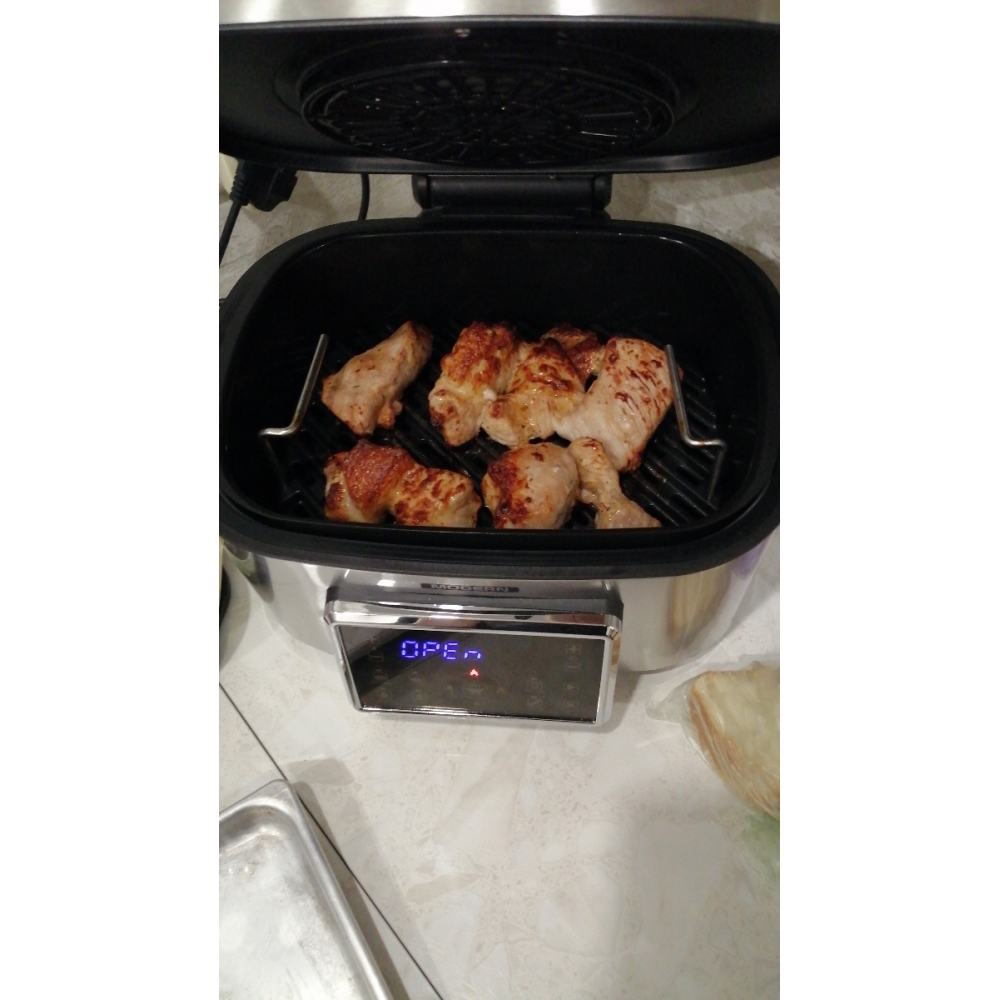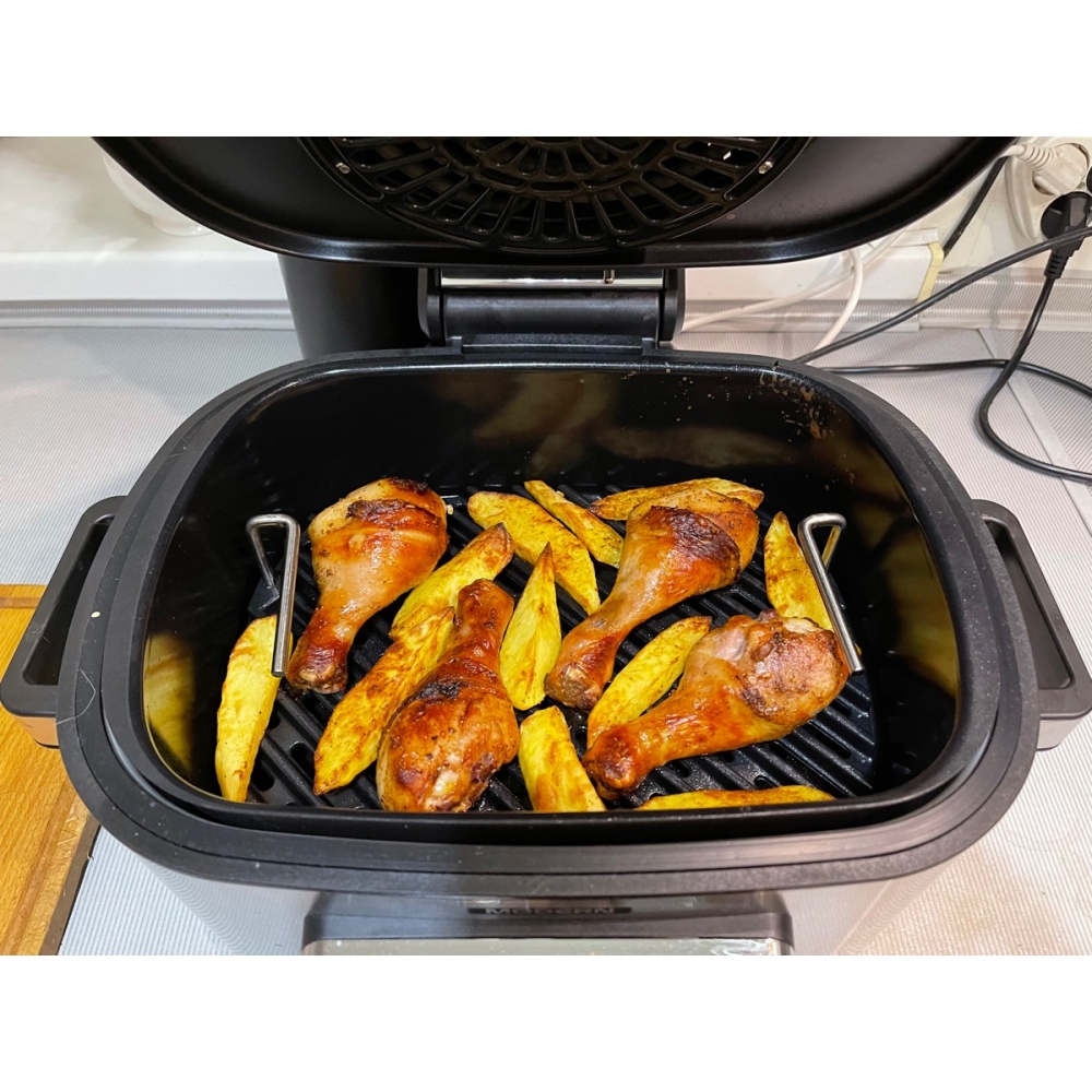 Просто включите прибор, прогрейте его и положите продукты. Всё остальное аэрогриль сделает за Вас. Не нужно постоянно открывать крышку и переворачивать продукты — они и так будут обжариваться равномерно со всех сторон за счёт продуманной циркуляции воздуха.