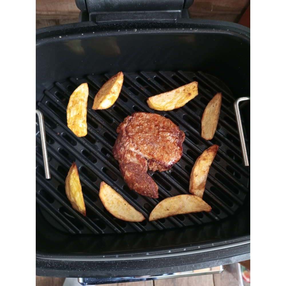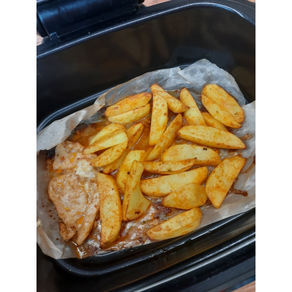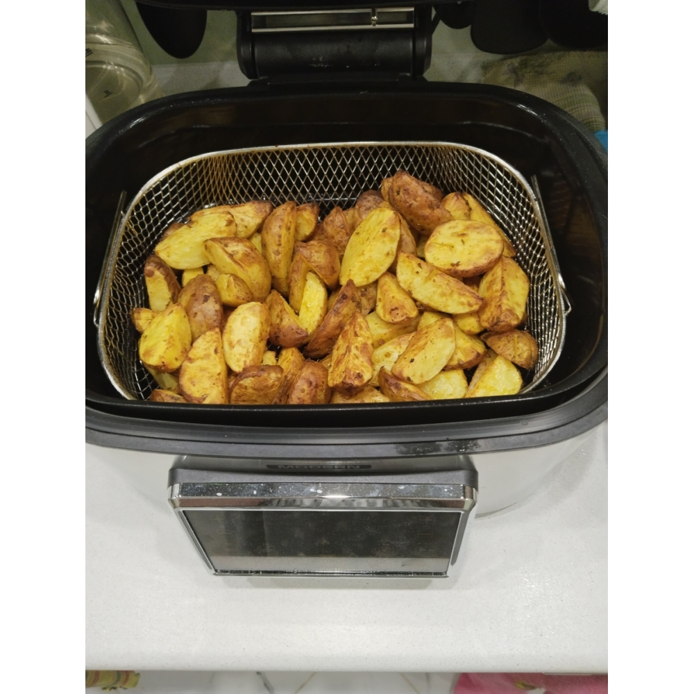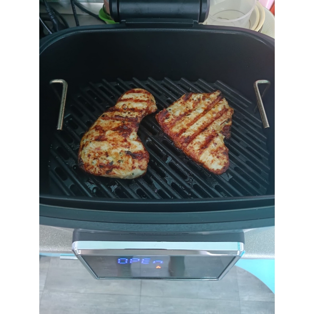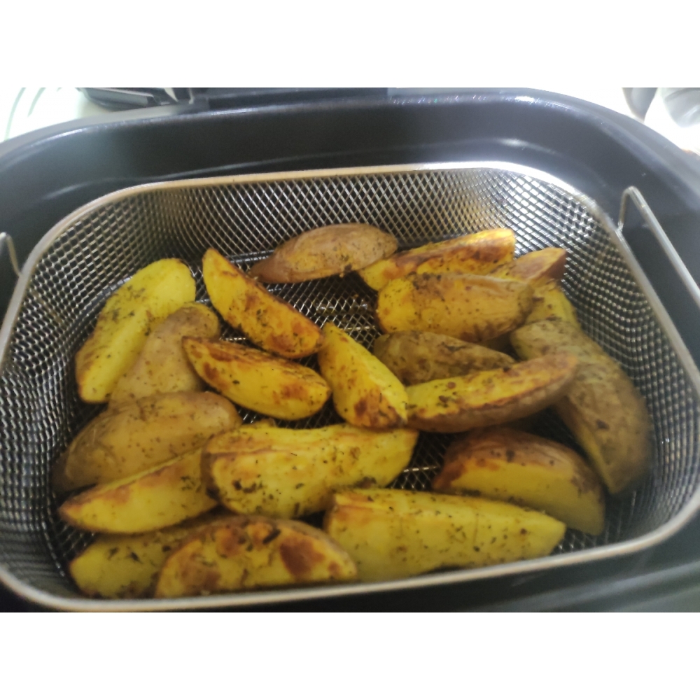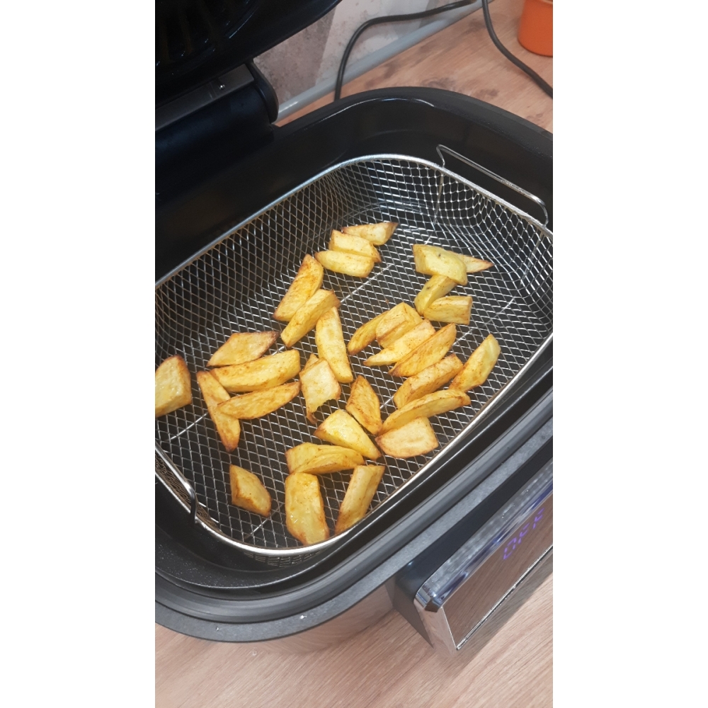 Просто включите прибор, прогрейте его и положите продукты. Всё остальное аэрогриль сделает за Вас. Не нужно постоянно открывать крышку и переворачивать продукты — они и так будут обжариваться равномерно со всех сторон за счёт продуманной циркуляции воздуха.