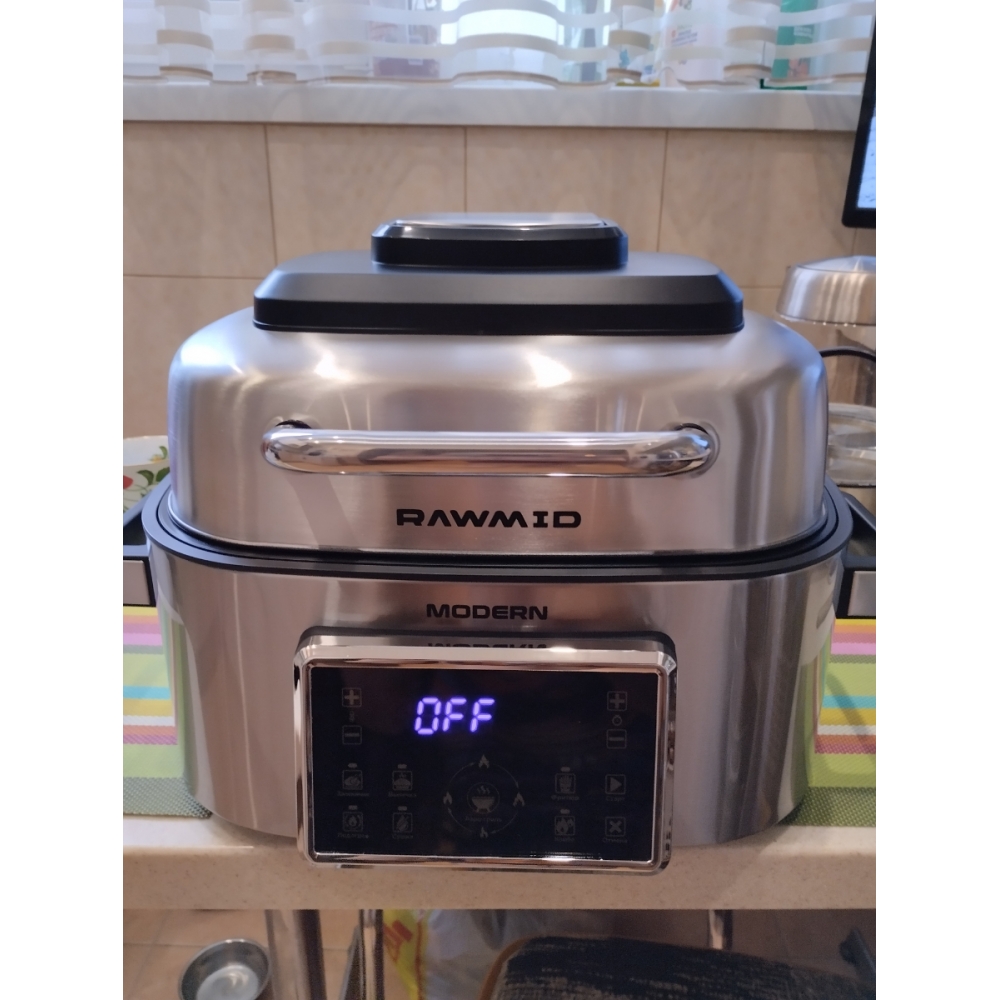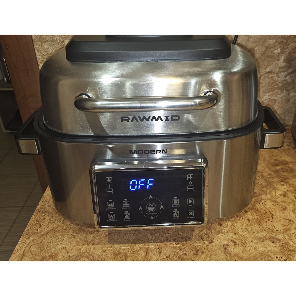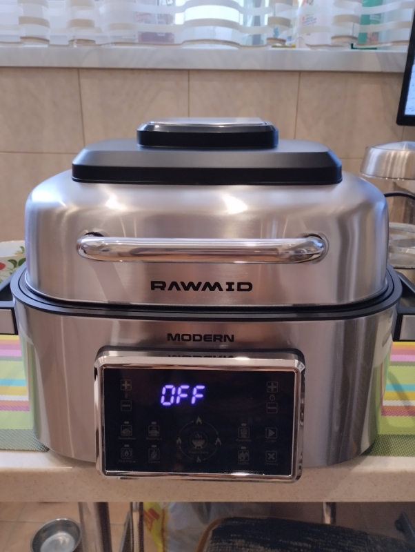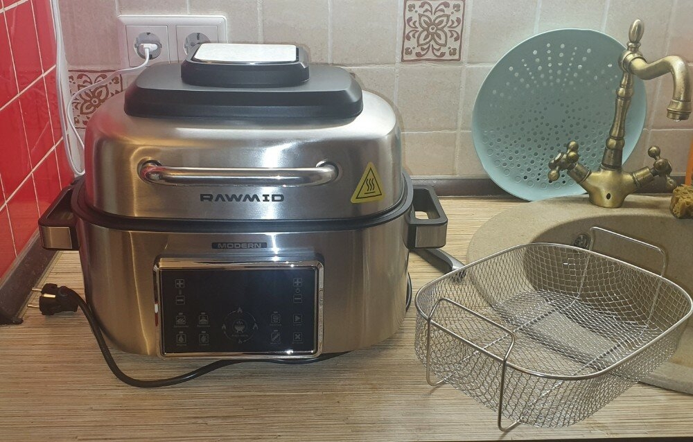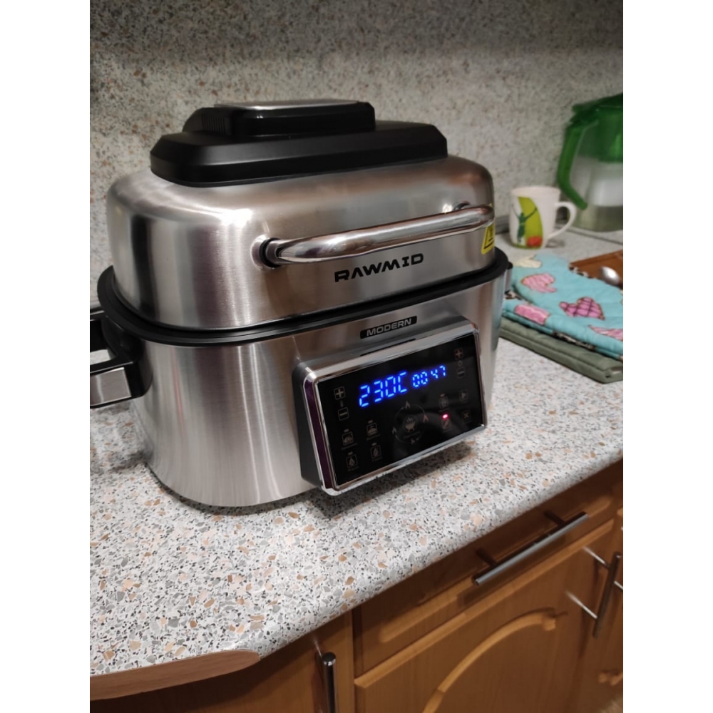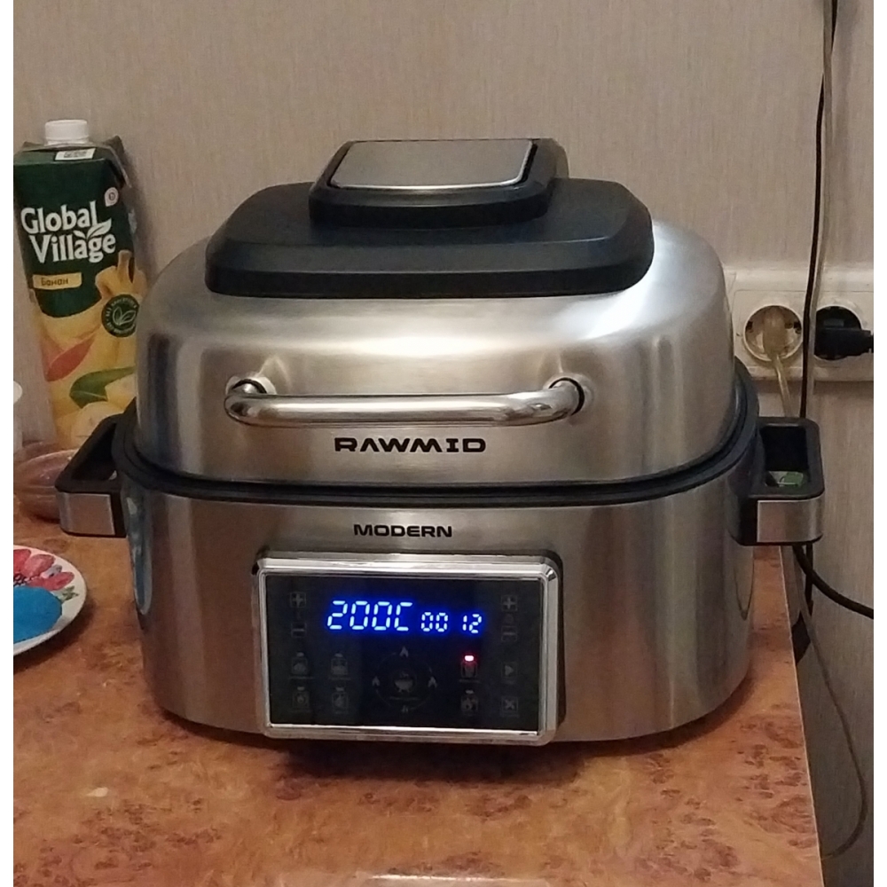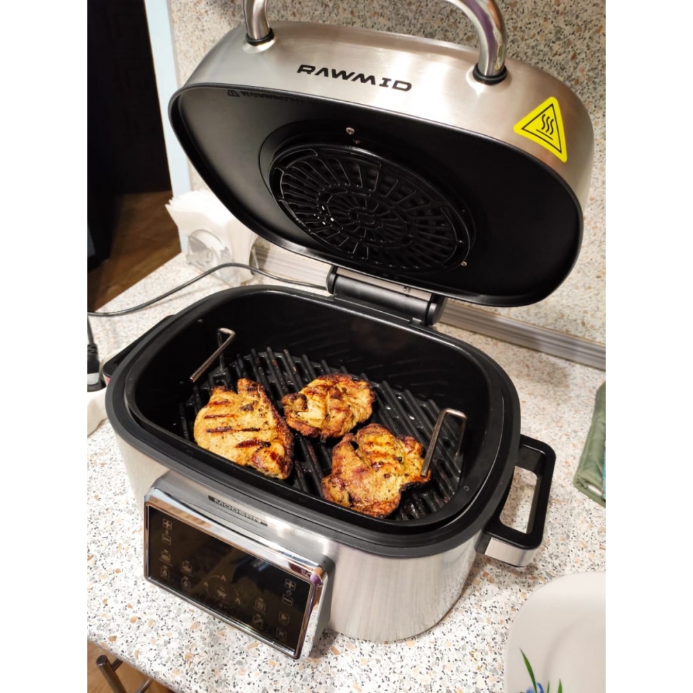 Если в обычном контактном гриле можно запекать продукты только определённой толщины, то в аэрогриле RAWMID Modern RMA-03 можно готовить всё что угодно. Благодаря объёмной вместительной ёмкости аэрогриля, в нём можно одновременно готовить мясной стейк и тушёные овощи, печь пирожки и запекать рыбу. А можно вообще запечь целую курицу.