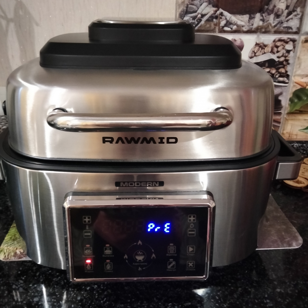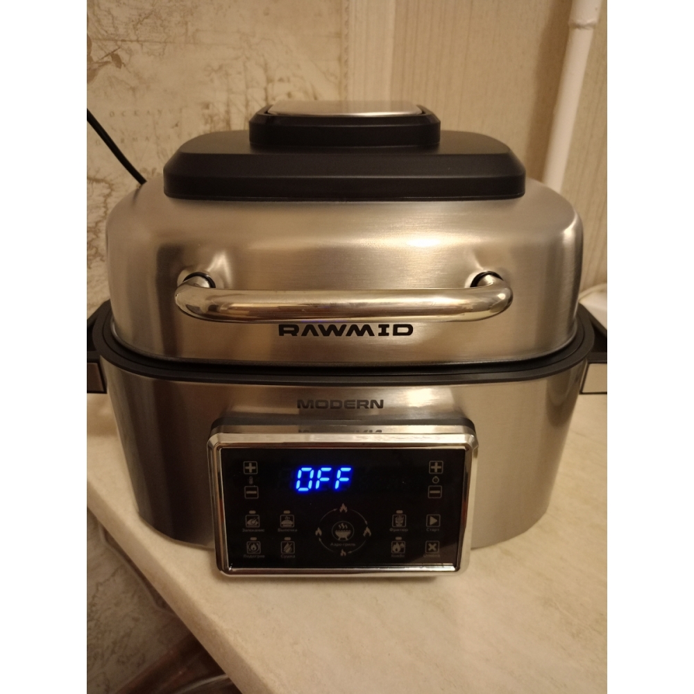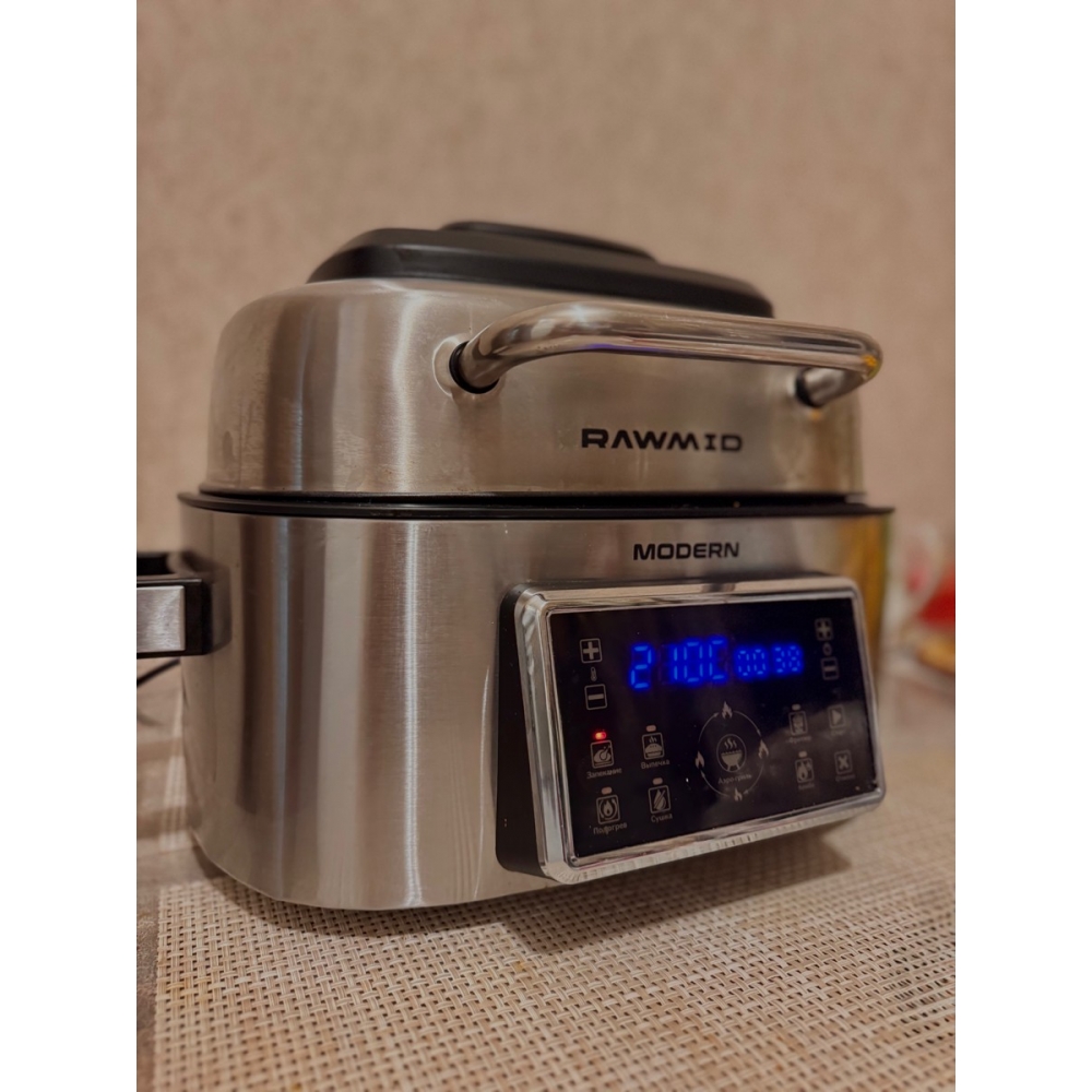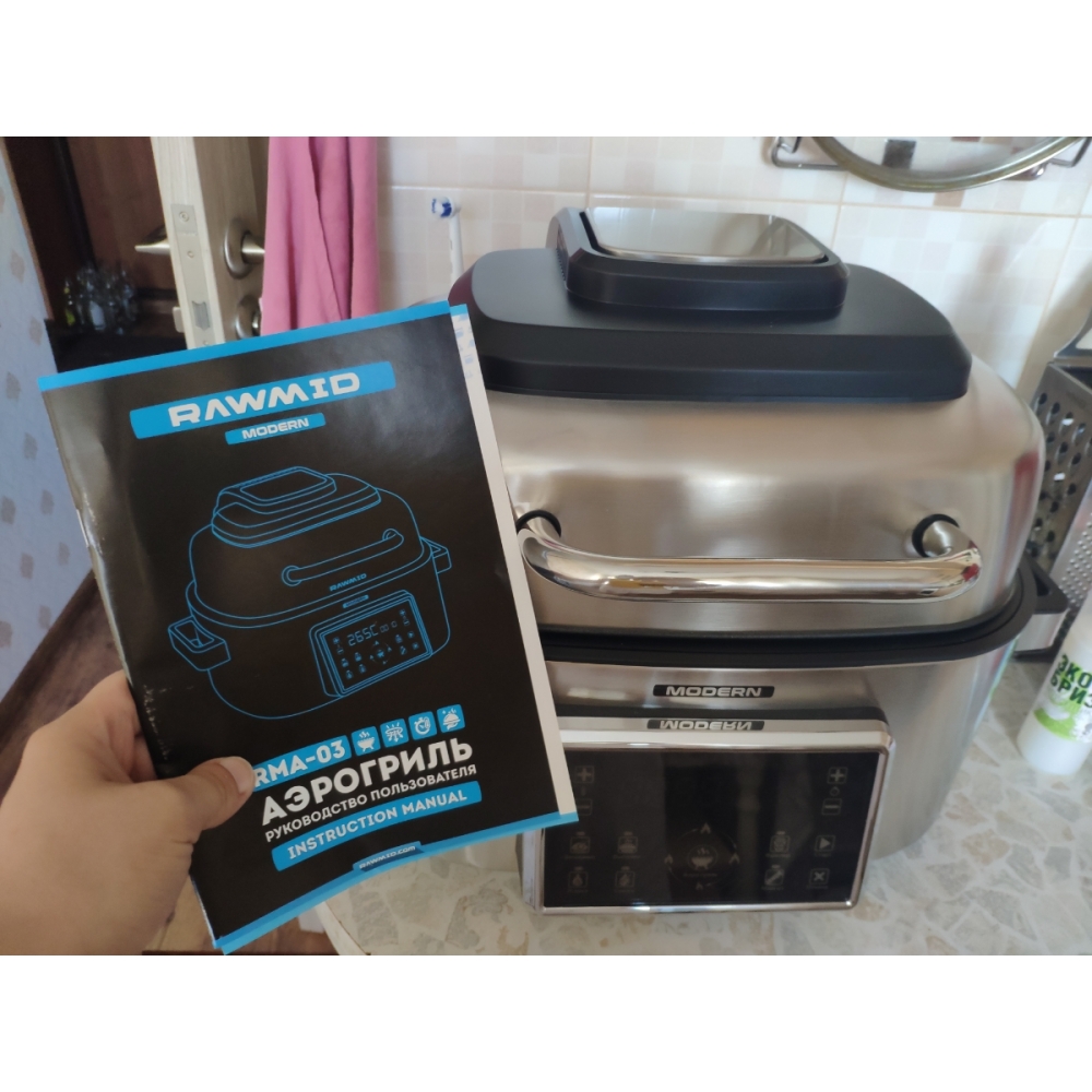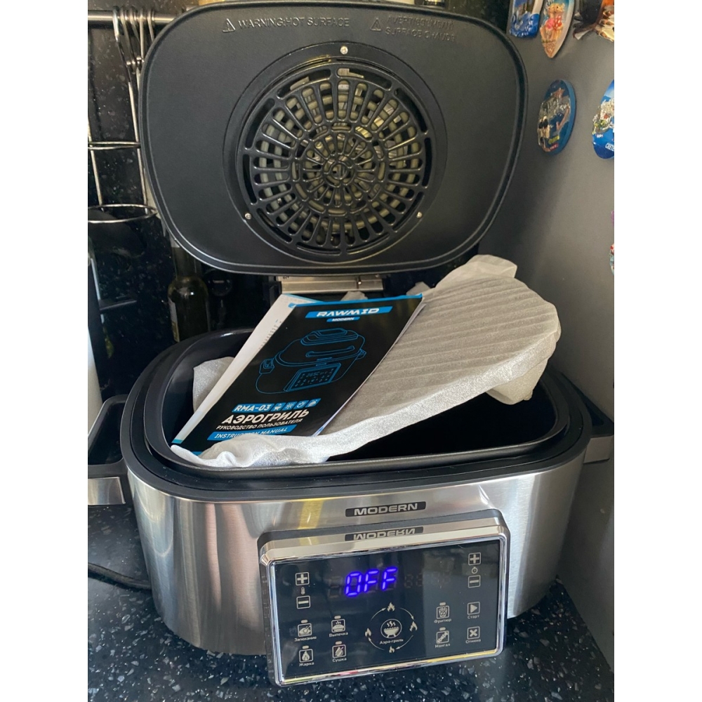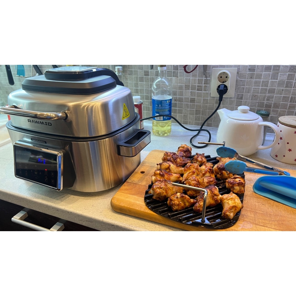 Если в обычном контактном гриле можно запекать продукты только определённой толщины, то в аэрогриле RAWMID Modern RMA-03 можно готовить всё что угодно. Благодаря объёмной вместительной ёмкости аэрогриля, в нём можно одновременно готовить мясной стейк и тушёные овощи, печь пирожки и запекать рыбу. А можно вообще запечь целую курицу.