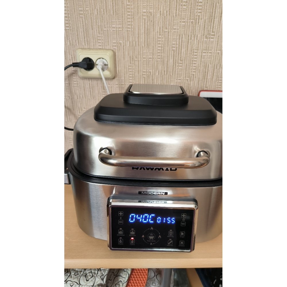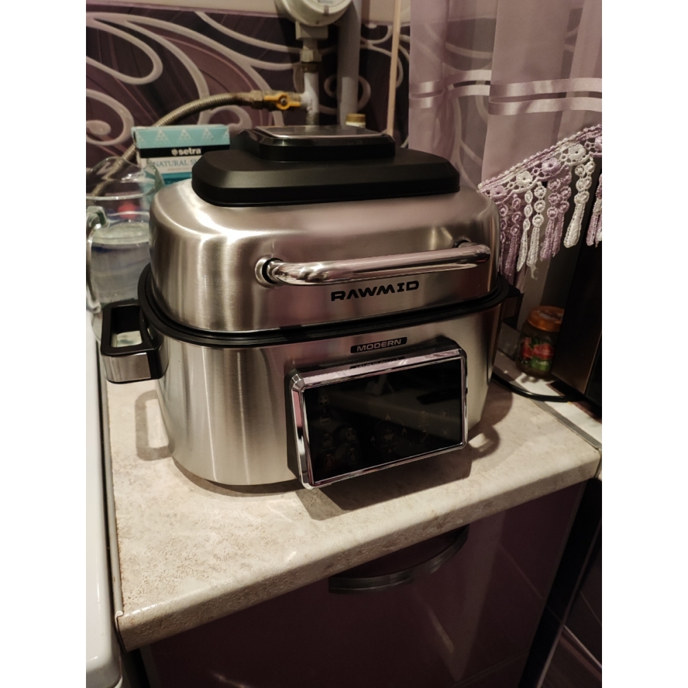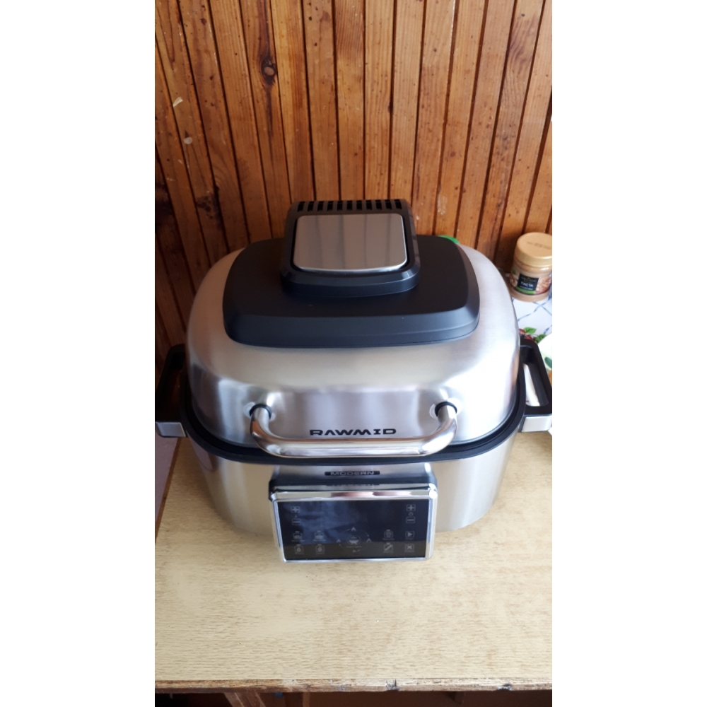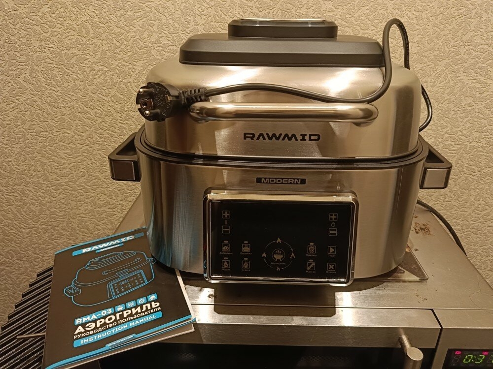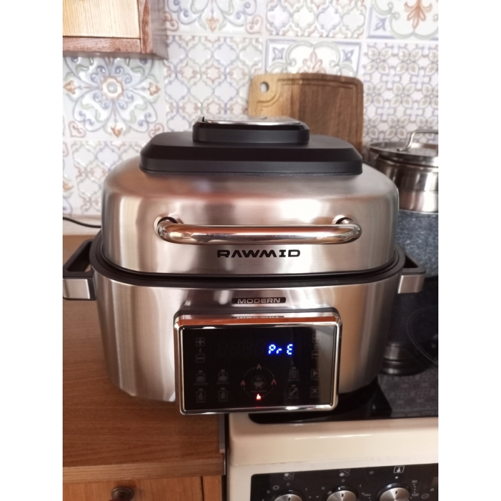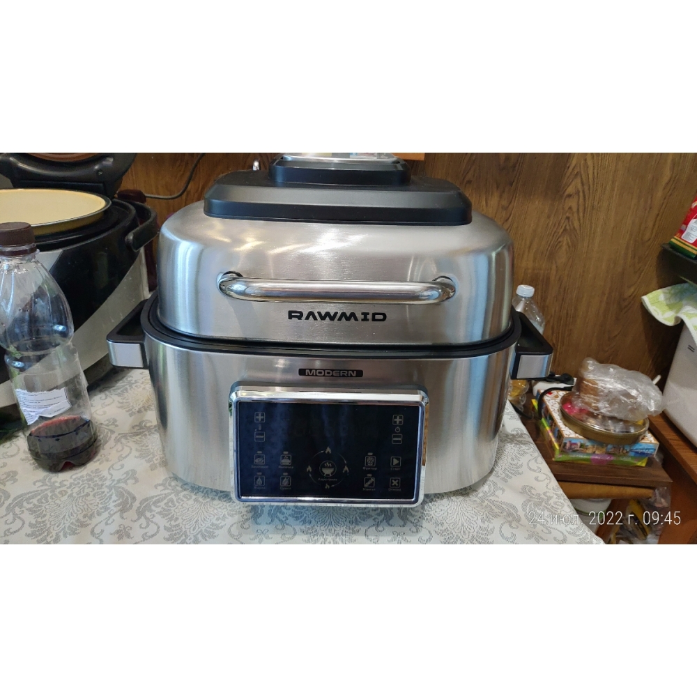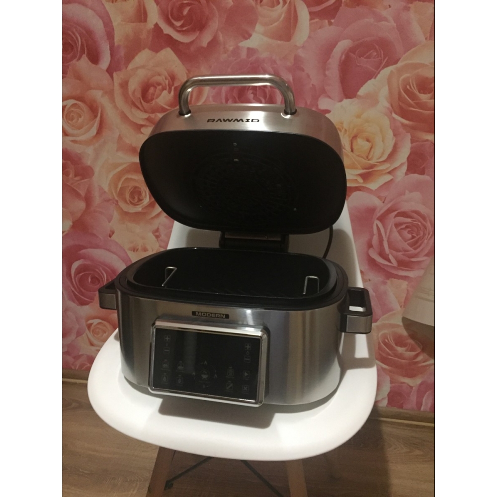Если в обычном контактном гриле можно запекать продукты только определённой толщины, то в аэрогриле RAWMID Modern RMA-03 можно готовить всё что угодно. Благодаря объёмной вместительной ёмкости аэрогриля, в нём можно одновременно готовить мясной стейк и тушёные овощи, печь пирожки и запекать рыбу. А можно вообще запечь целую курицу.