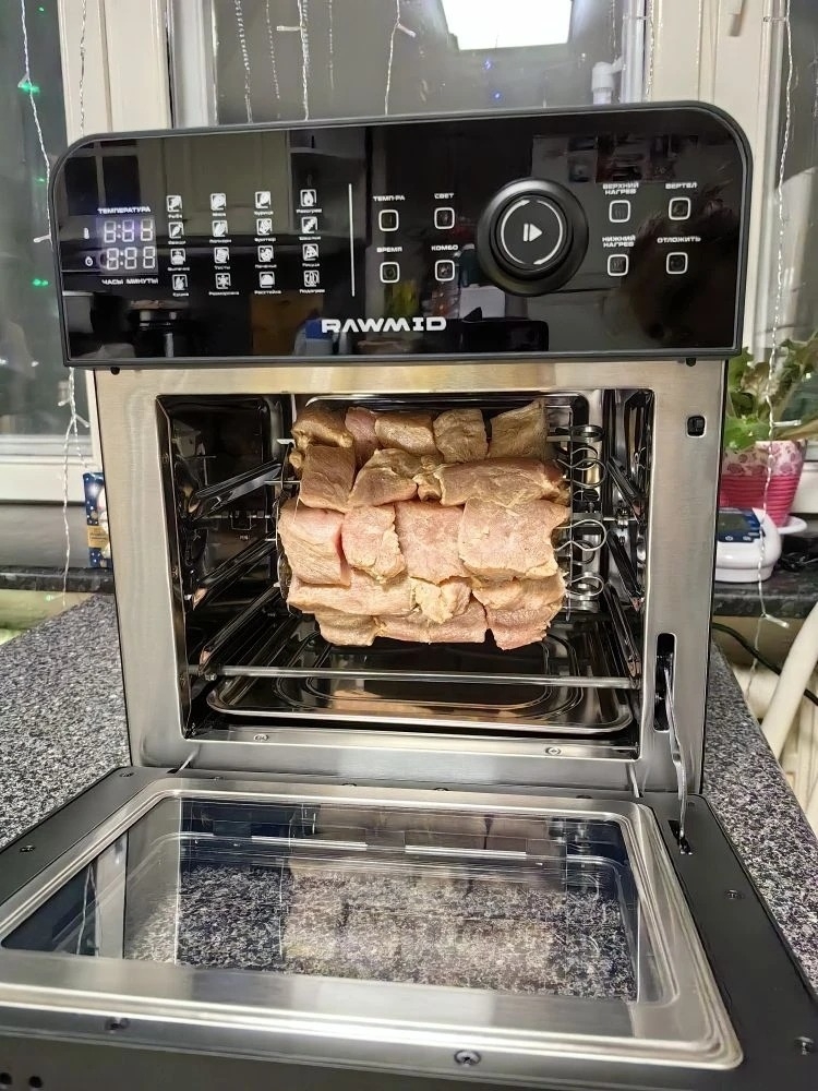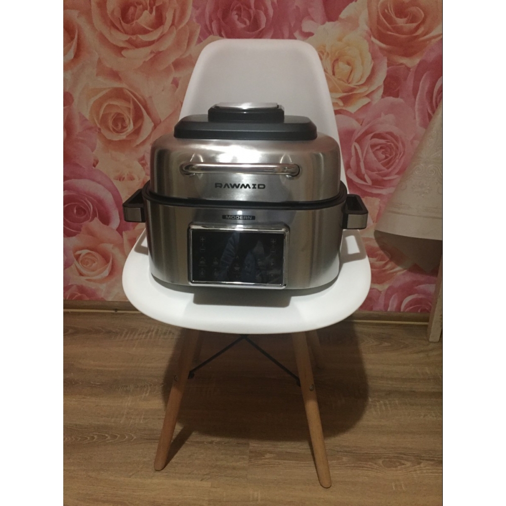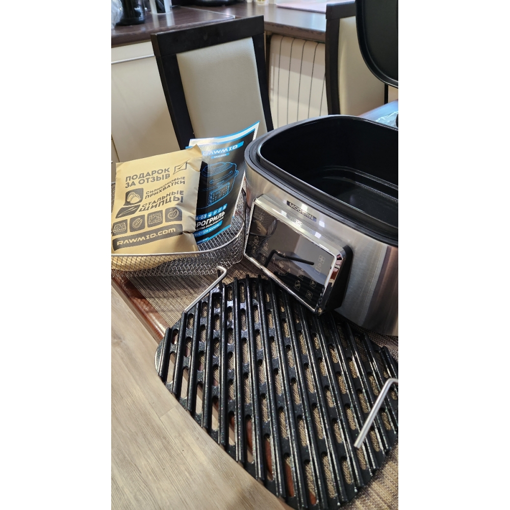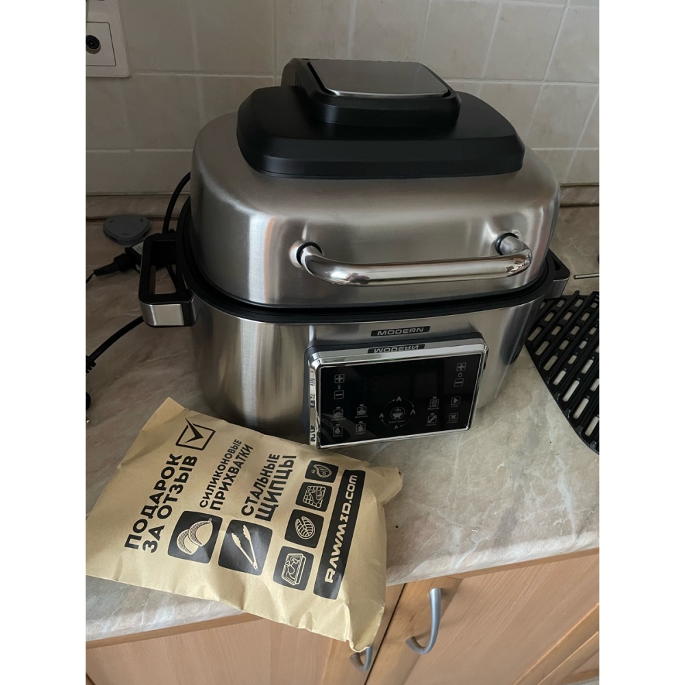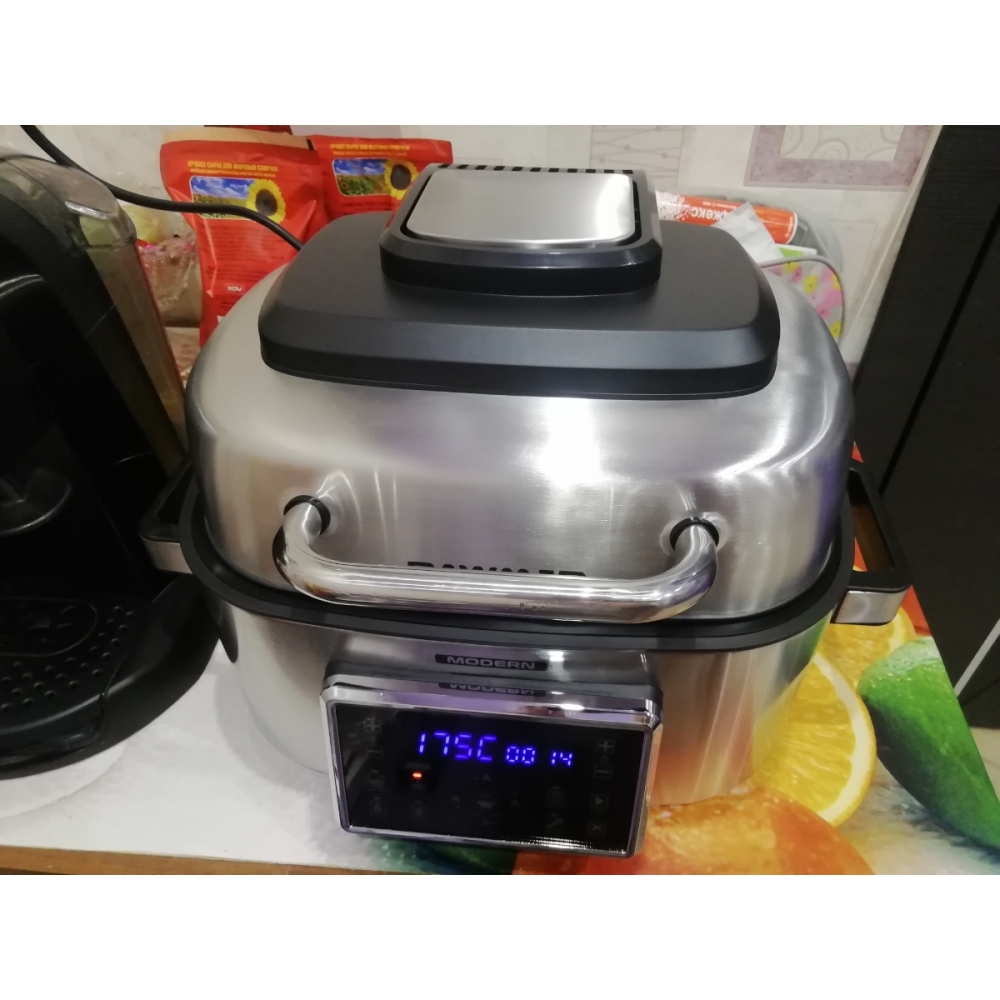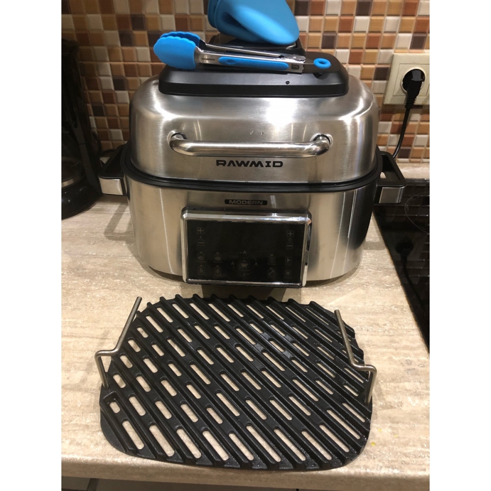 Если в обычном контактном гриле можно запекать продукты только определённой толщины, то в аэрогриле RAWMID Modern RMA-03 можно готовить всё что угодно. Благодаря объёмной вместительной ёмкости аэрогриля, в нём можно одновременно готовить мясной стейк и тушёные овощи, печь пирожки и запекать рыбу. А можно вообще запечь целую курицу.