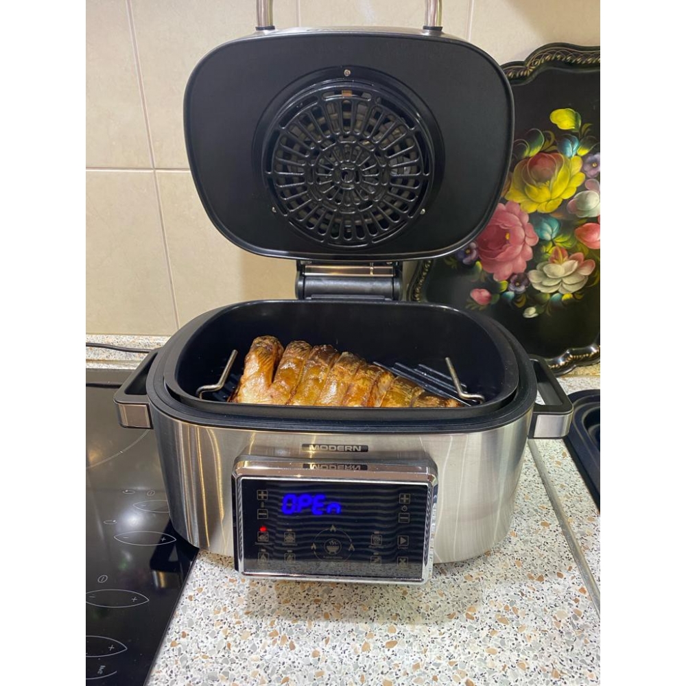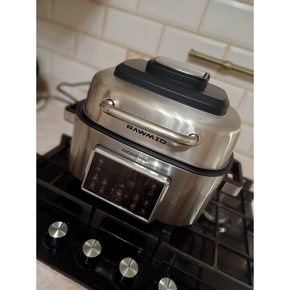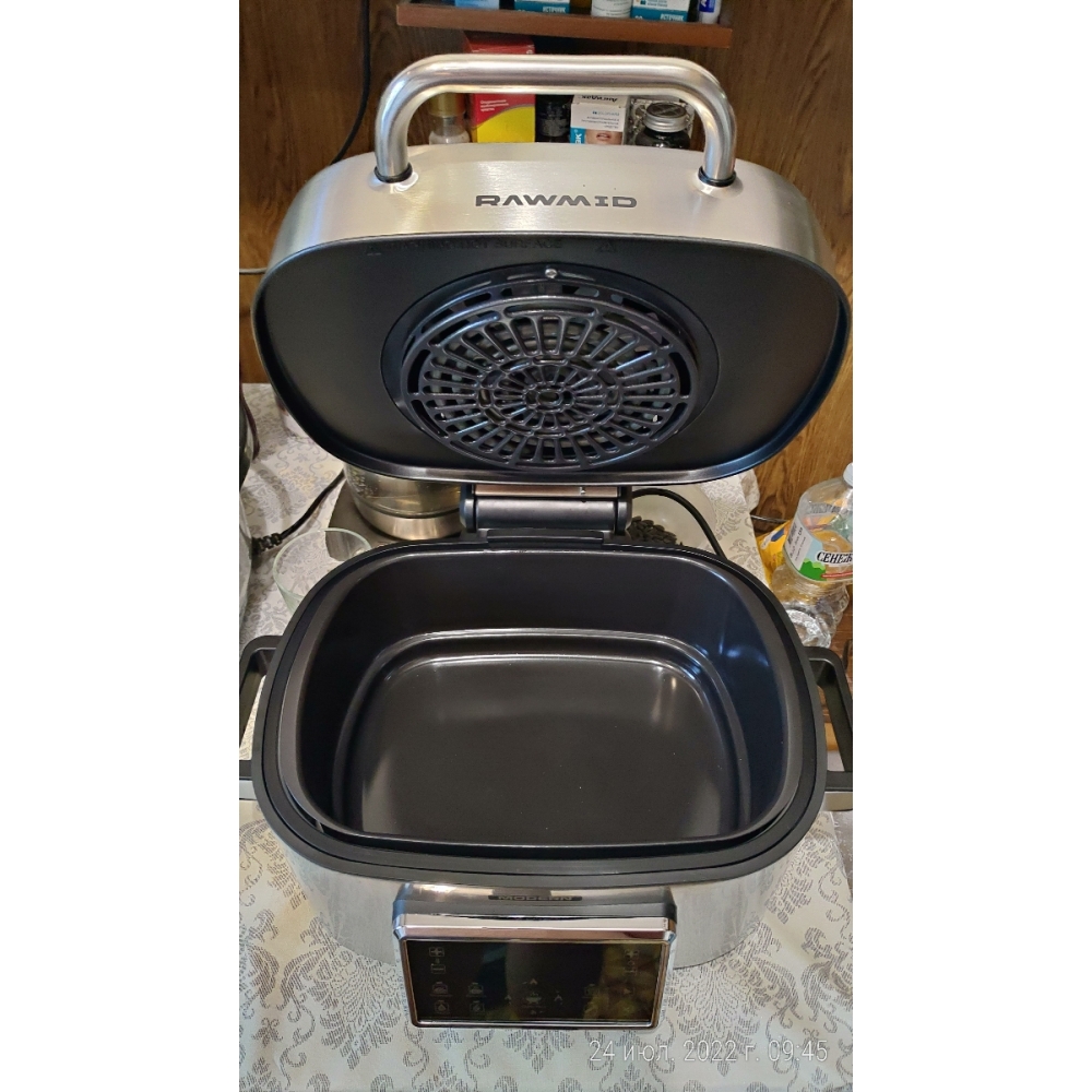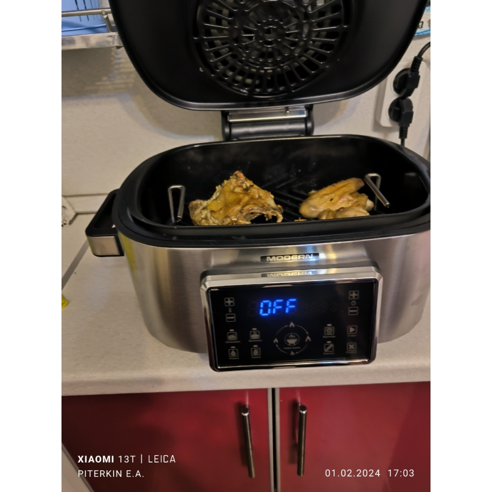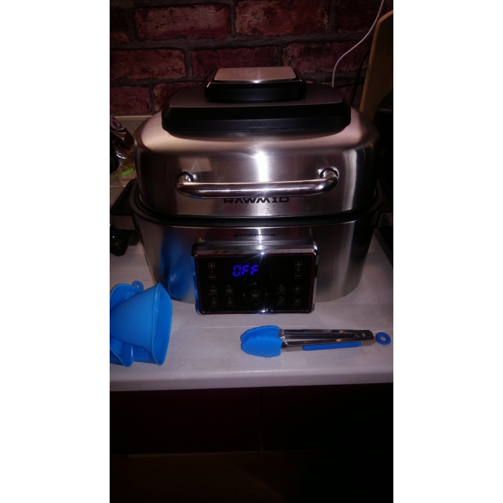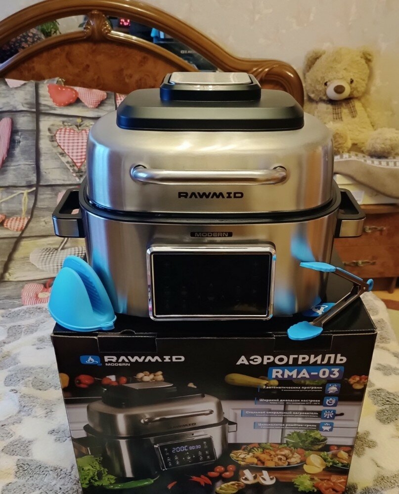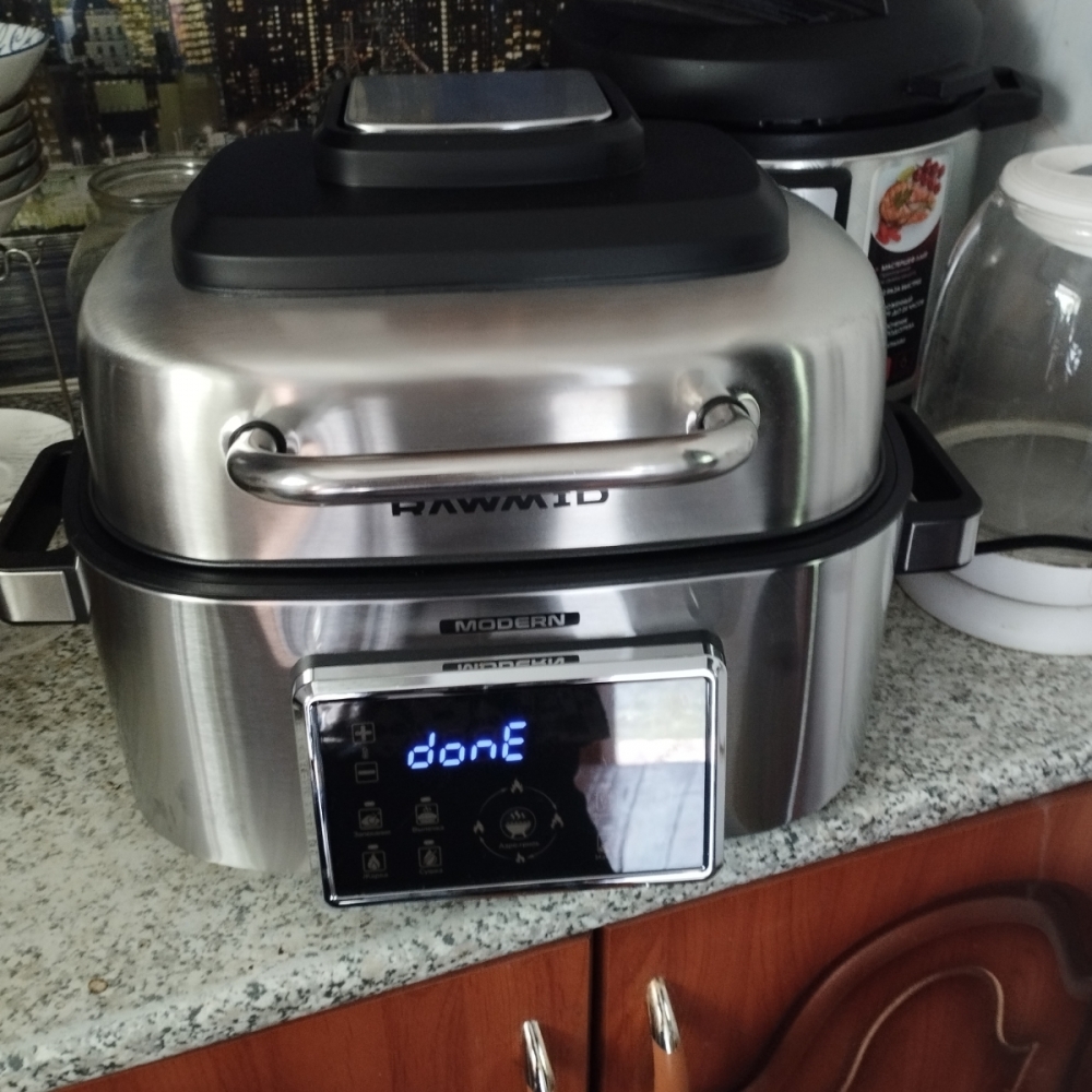 Если в обычном контактном гриле можно запекать продукты только определённой толщины, то в аэрогриле RAWMID Modern RMA-03 можно готовить всё что угодно. Благодаря объёмной вместительной ёмкости аэрогриля, в нём можно одновременно готовить мясной стейк и тушёные овощи, печь пирожки и запекать рыбу. А можно вообще запечь целую курицу.