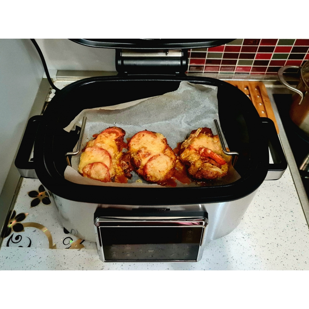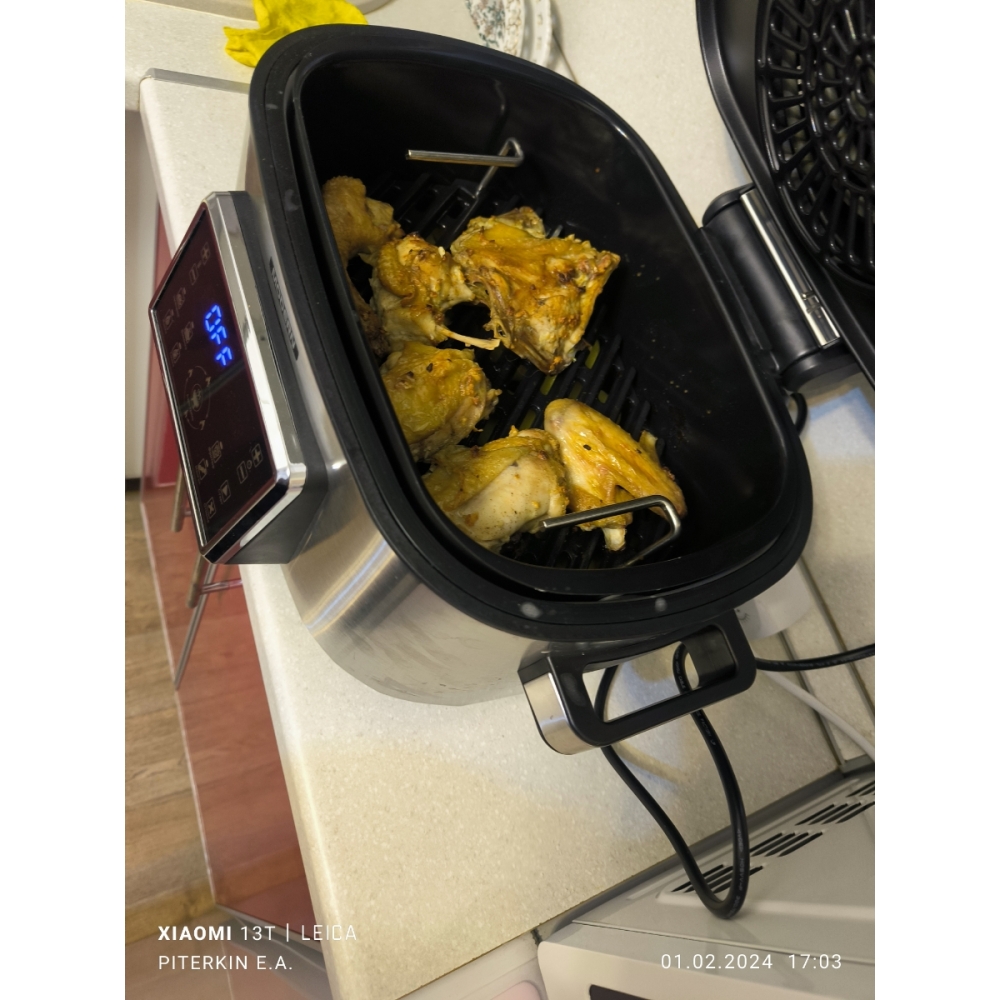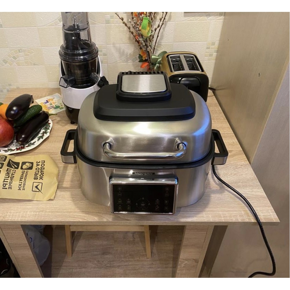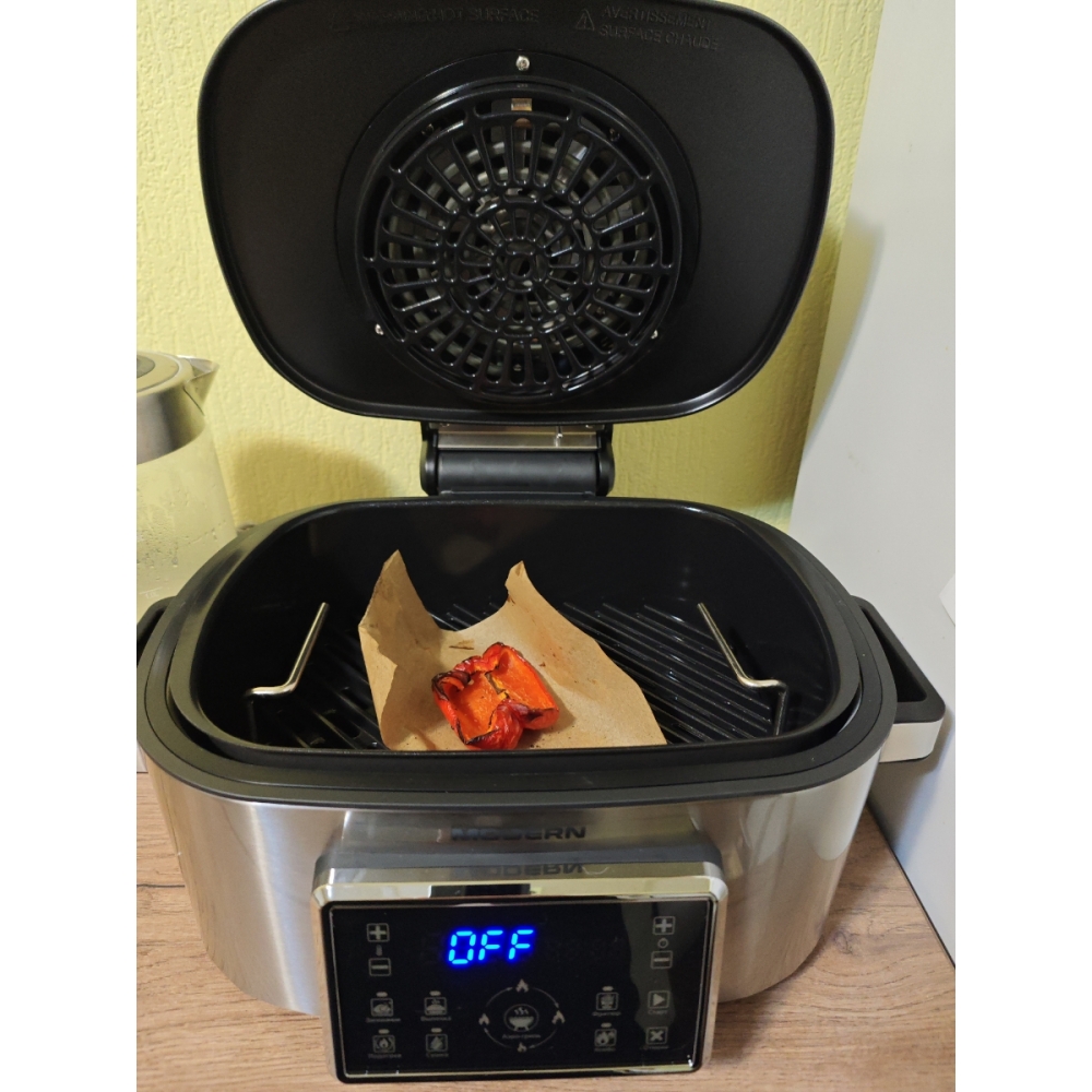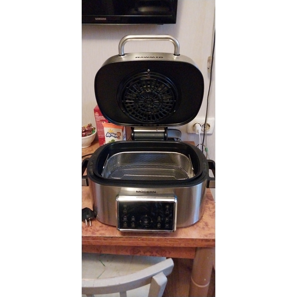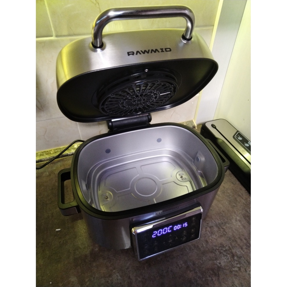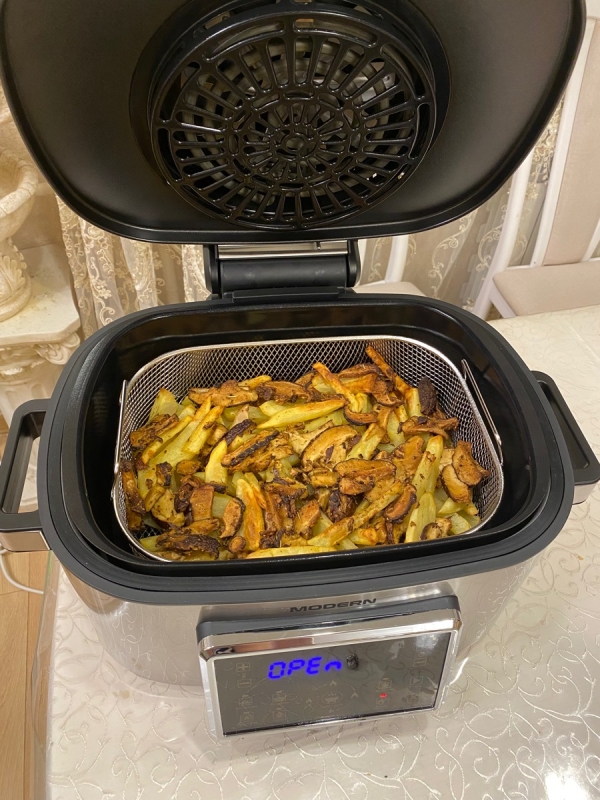 Если в обычном контактном гриле можно запекать продукты только определённой толщины, то в аэрогриле RAWMID Modern RMA-03 можно готовить всё что угодно. Благодаря объёмной вместительной ёмкости аэрогриля, в нём можно одновременно готовить мясной стейк и тушёные овощи, печь пирожки и запекать рыбу. А можно вообще запечь целую курицу.