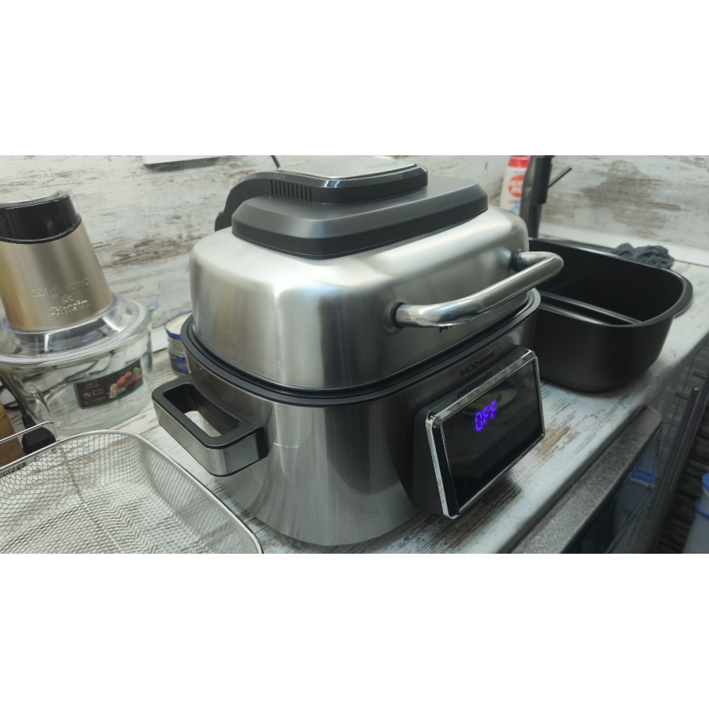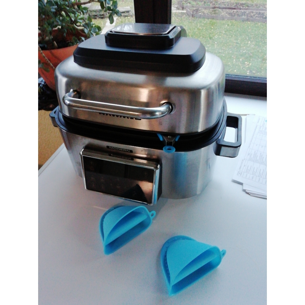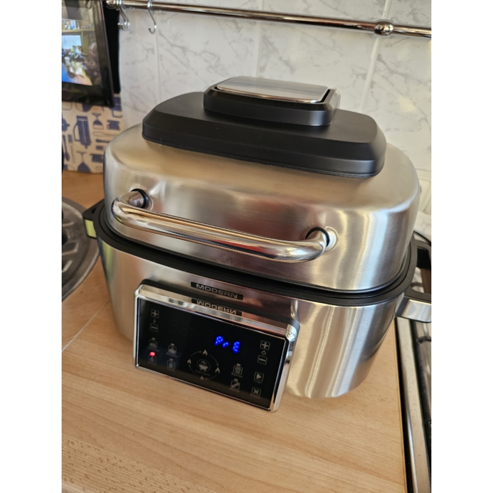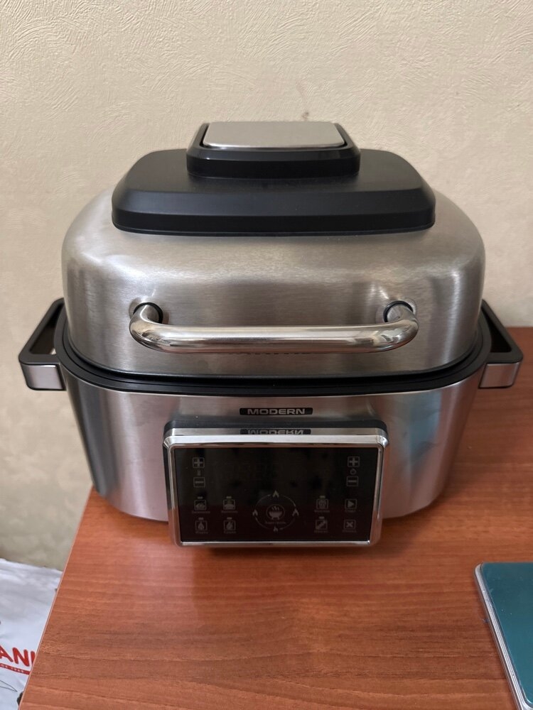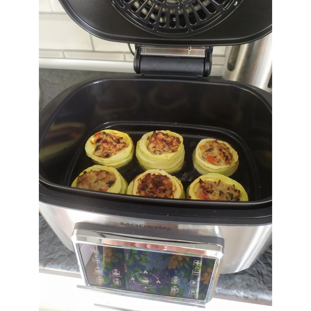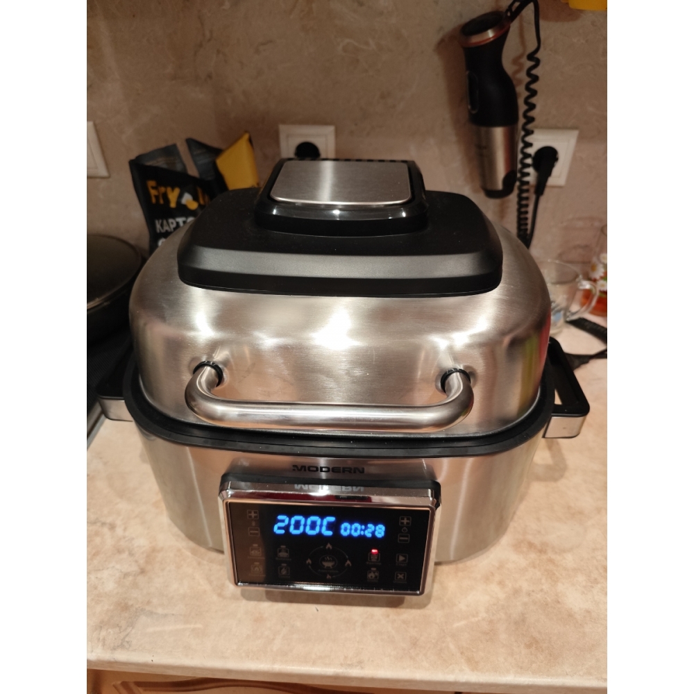 Если в обычном контактном гриле можно запекать продукты только определённой толщины, то в аэрогриле RAWMID Modern RMA-03 можно готовить всё что угодно. Благодаря объёмной вместительной ёмкости аэрогриля, в нём можно одновременно готовить мясной стейк и тушёные овощи, печь пирожки и запекать рыбу. А можно вообще запечь целую курицу.