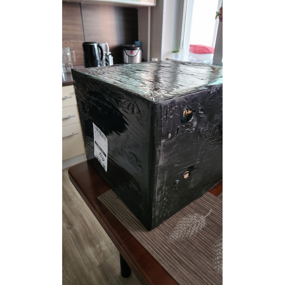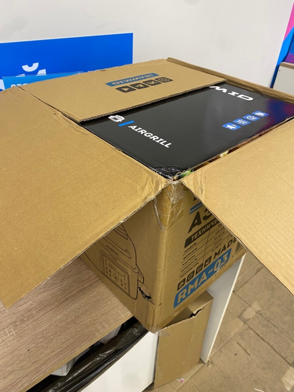 Прибор выполнен в форме прямоугольника с закруглёнными краями, что позволяет сочетать рациональное использование пространства с обтекаемой формой чаши для эффективной циркуляции воздуха. На корпусе размещены ручки, которые позволяют удобно открывать и закрывать крышку аэрогриля, а также легко перемещать его в другое место.