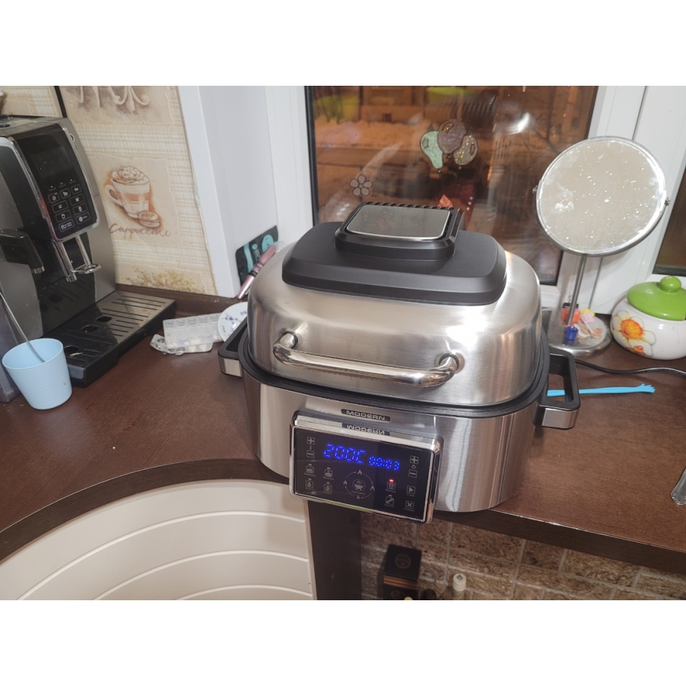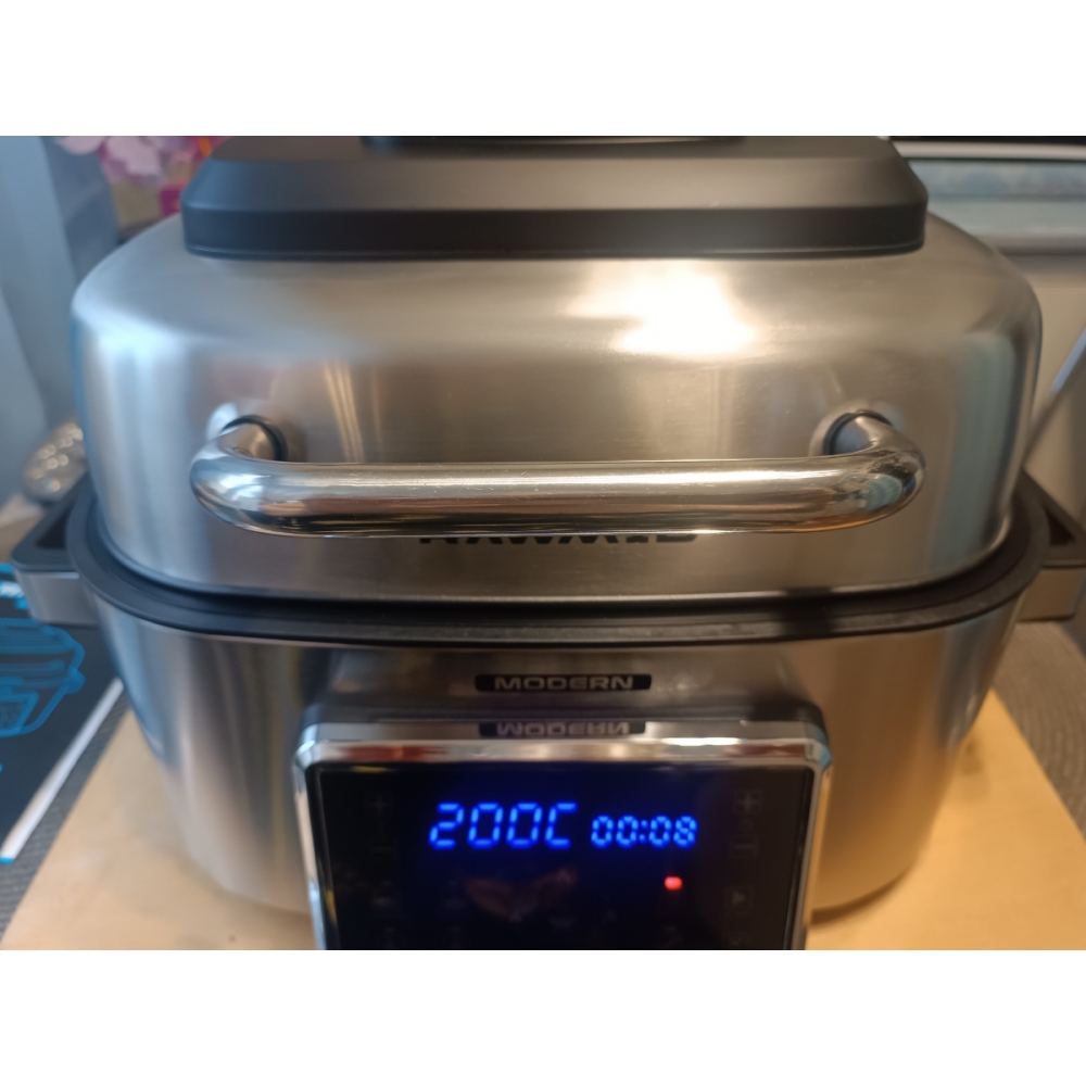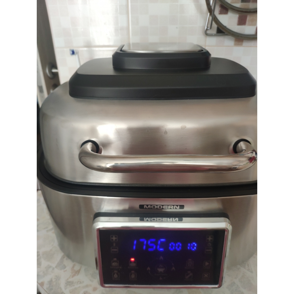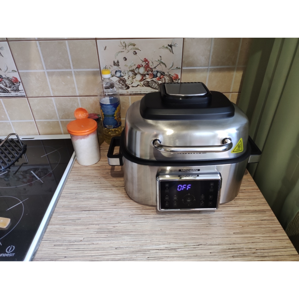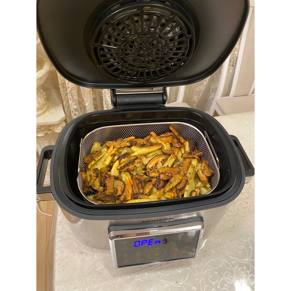 На Ваш выбор один из семи предустановленных режимов: запекание, выпечка, подогрев, сушка, фритюр, комбо, аэрогриль. В режиме аэрогриля можно выбрать 4 варианта: от не слишком жаркого до самого горячего (265°С). При желании, параметры для каждого режима можно скорректировать в зависимости от желаемого результата и объёма продуктов.