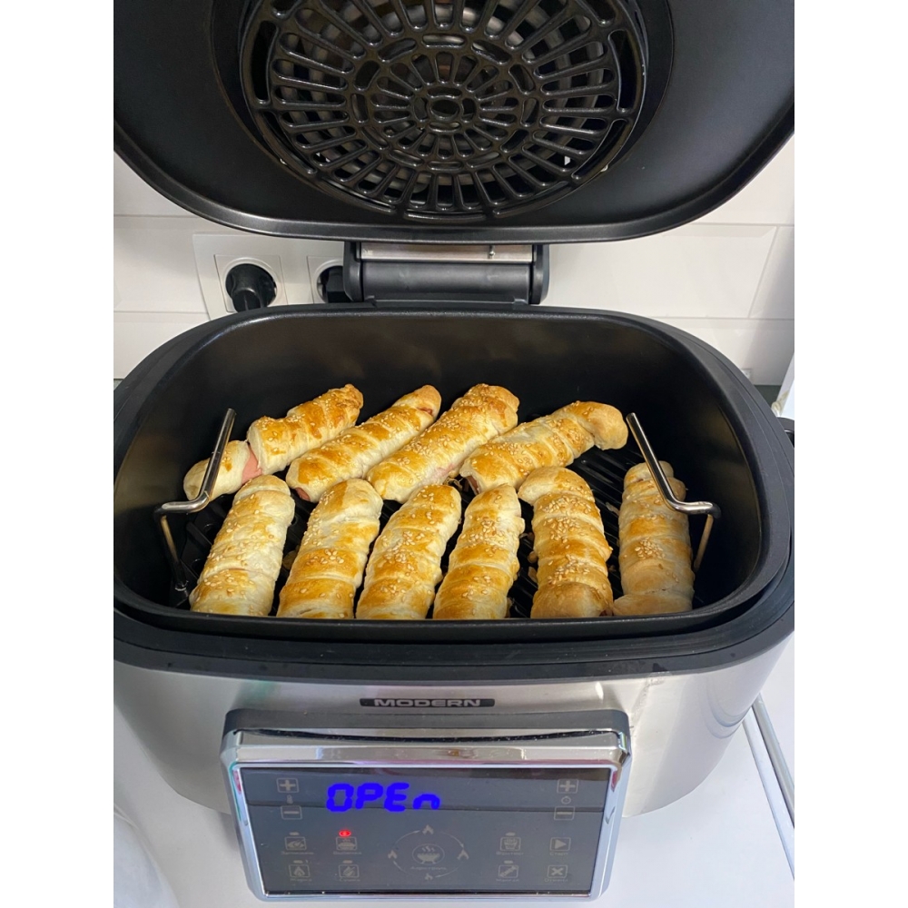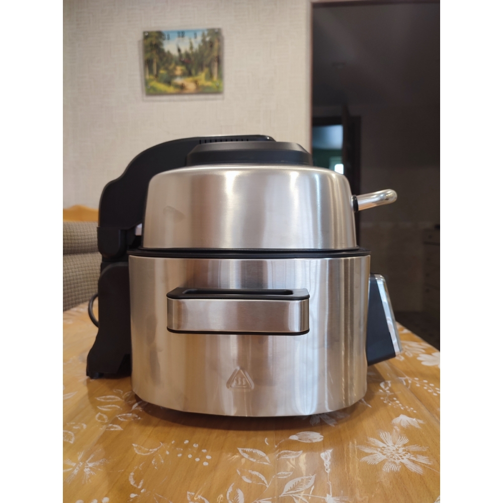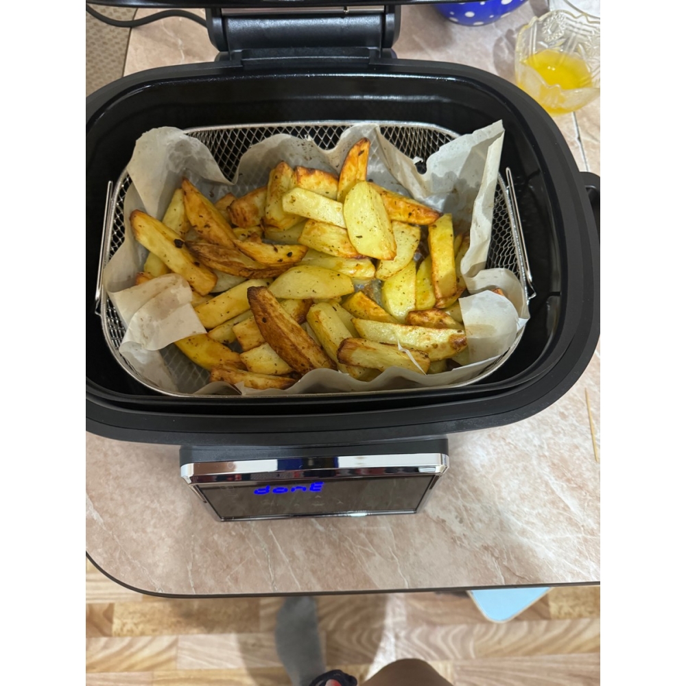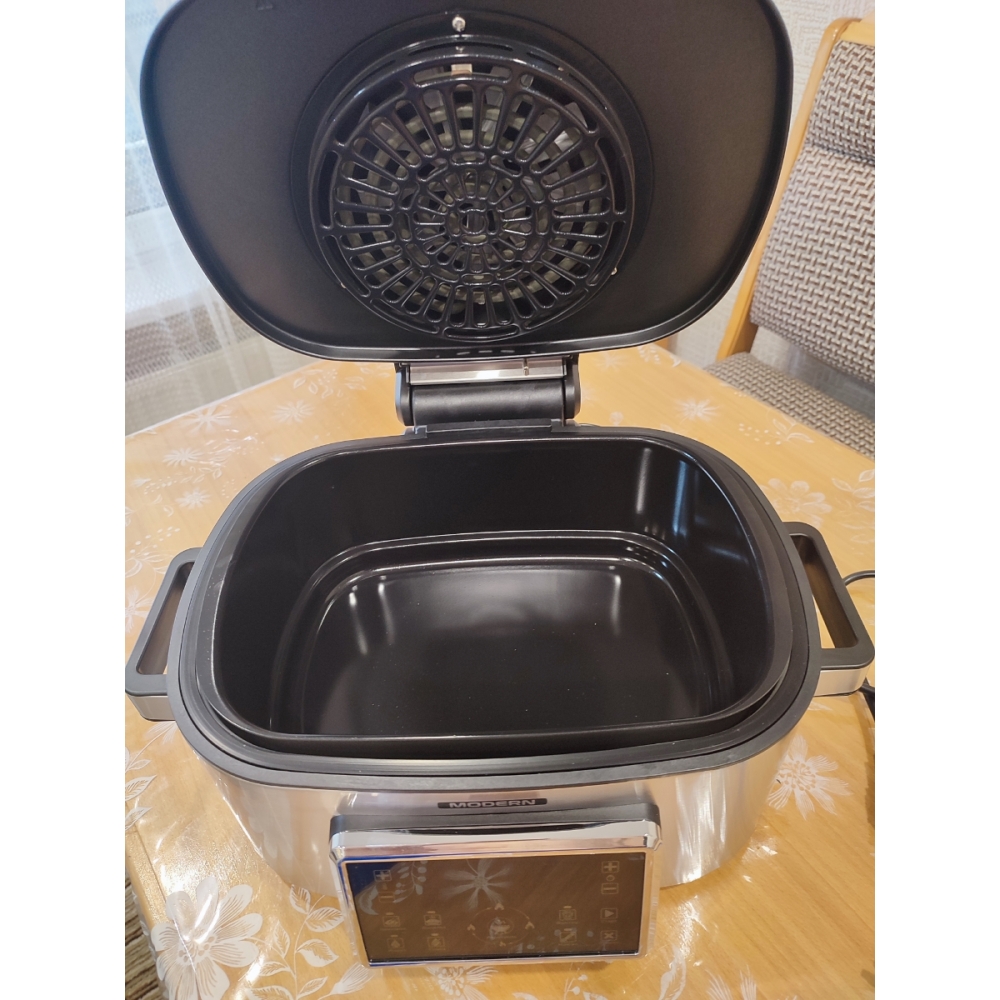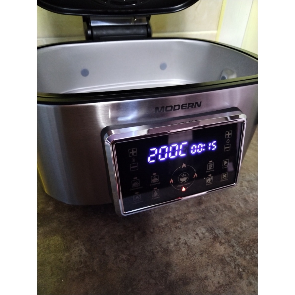 На Ваш выбор один из семи предустановленных режимов: запекание, выпечка, подогрев, сушка, фритюр, комбо, аэрогриль. В режиме аэрогриля можно выбрать 4 варианта: от не слишком жаркого до самого горячего (265°С). При желании, параметры для каждого режима можно скорректировать в зависимости от желаемого результата и объёма продуктов.
