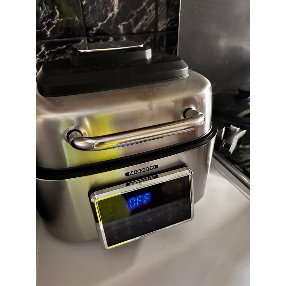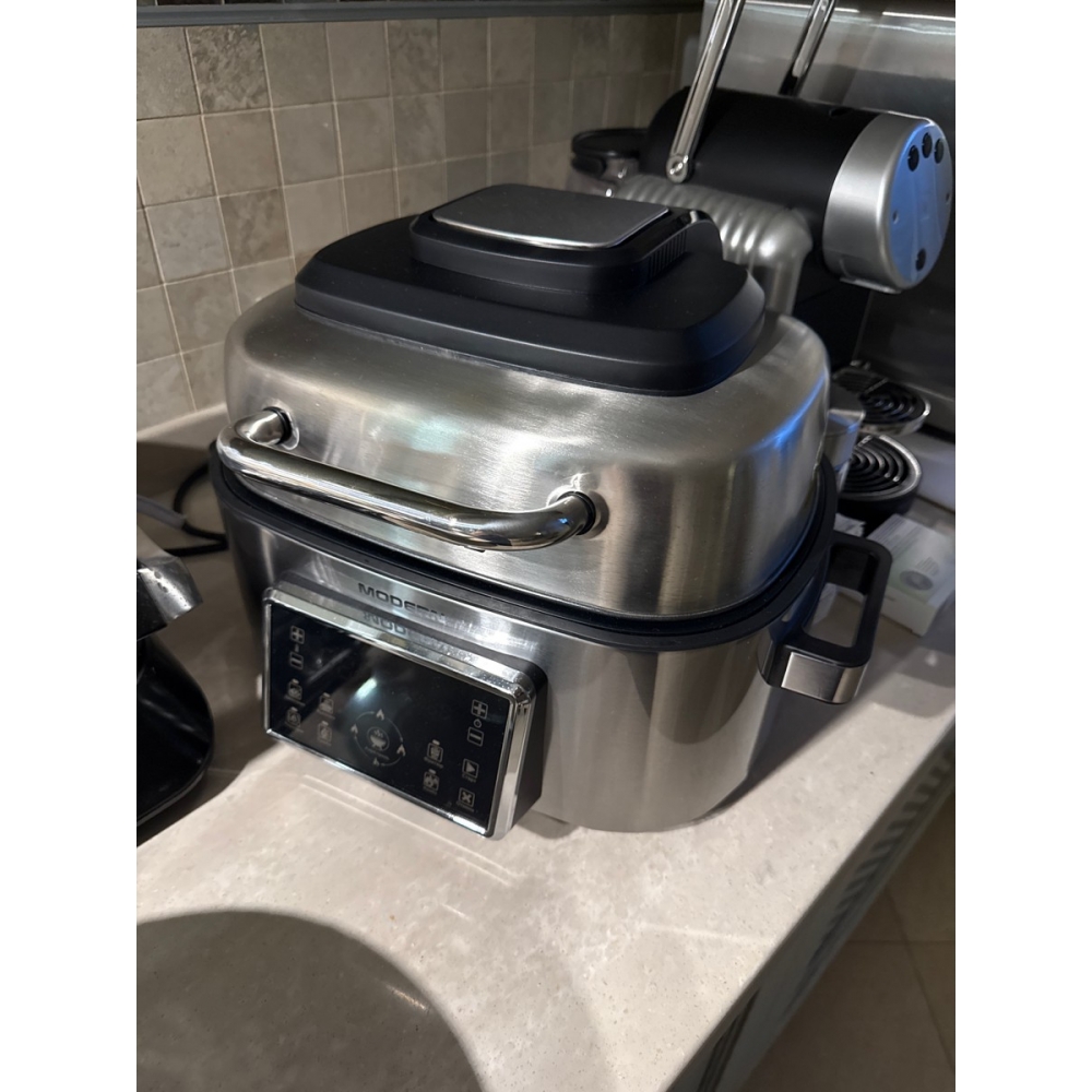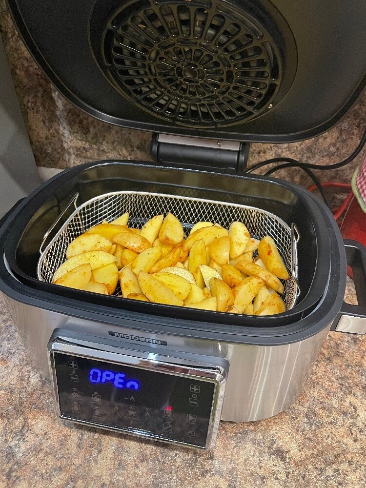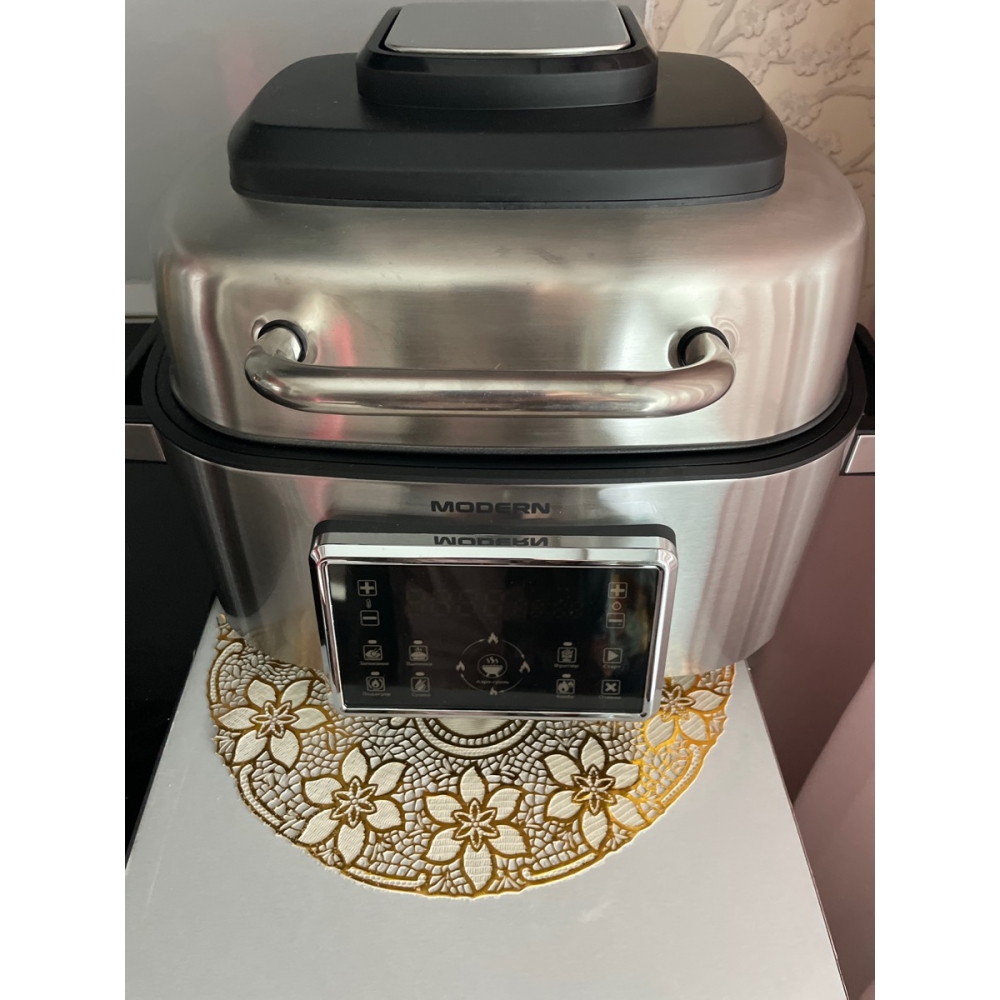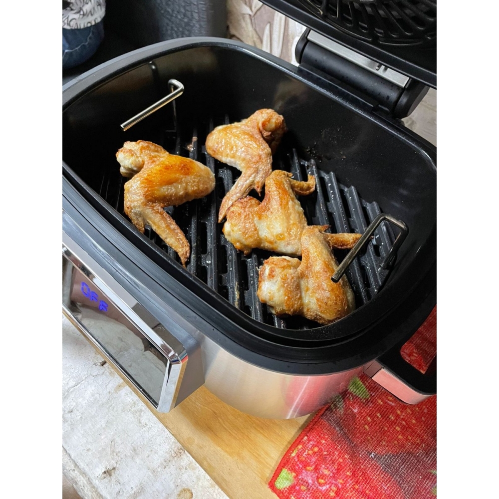 На Ваш выбор один из семи предустановленных режимов: запекание, выпечка, подогрев, сушка, фритюр, комбо, аэрогриль. В режиме аэрогриля можно выбрать 4 варианта: от не слишком жаркого до самого горячего (265°С). При желании, параметры для каждого режима можно скорректировать в зависимости от желаемого результата и объёма продуктов.