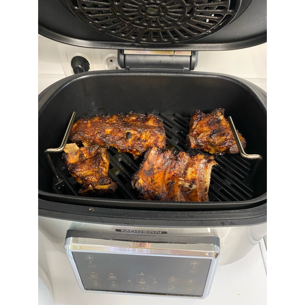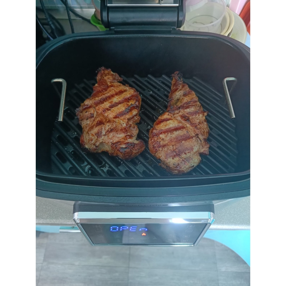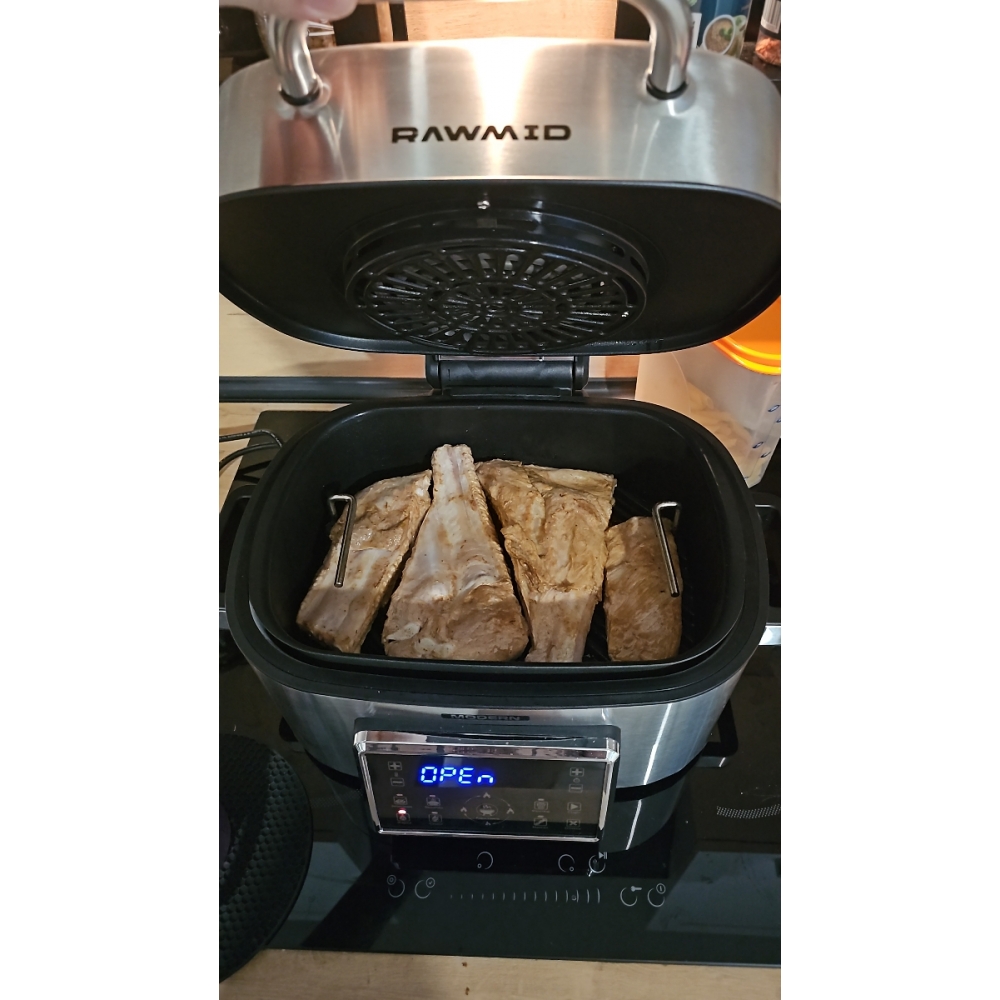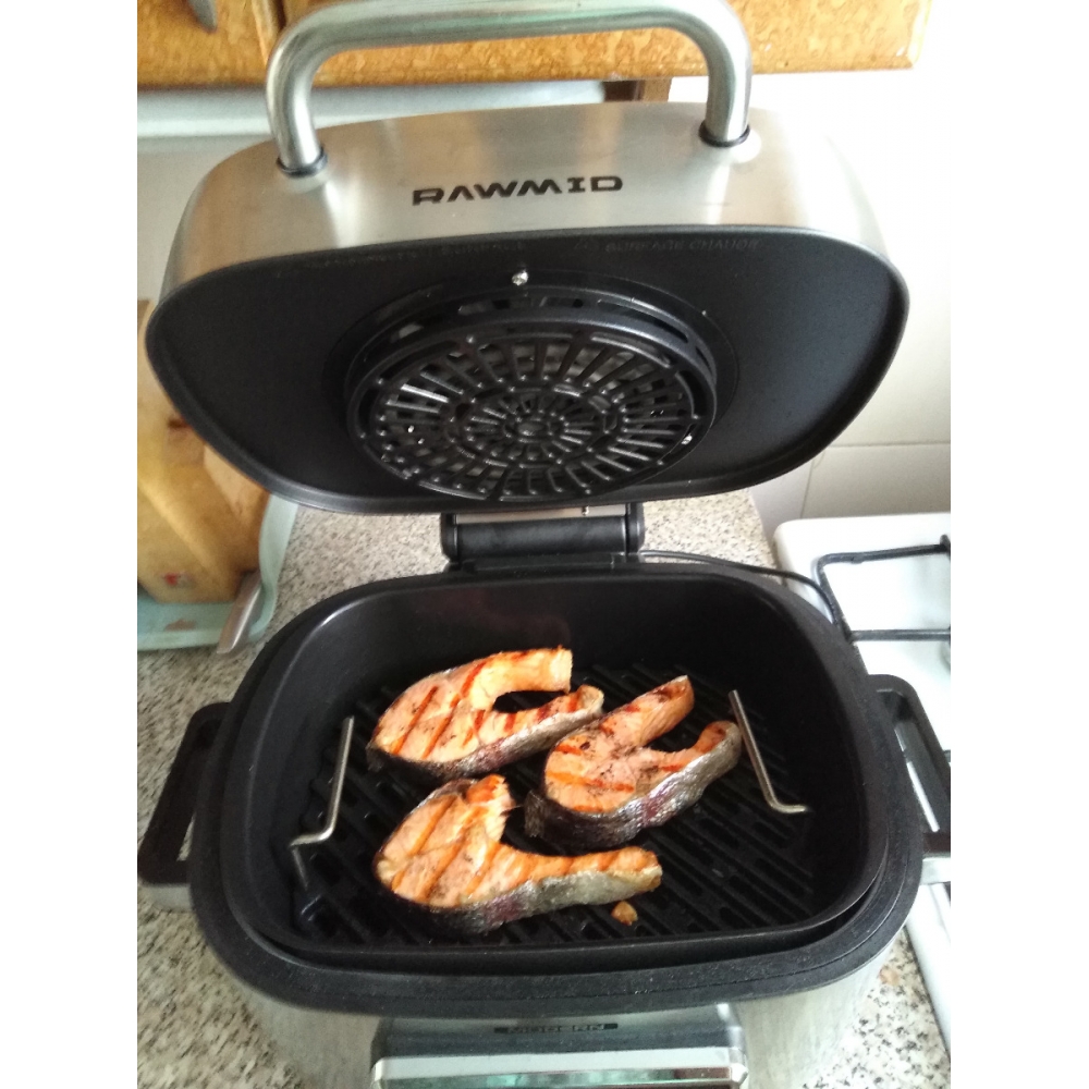 С аэрогрилем RAWMID Modern можно не опасаться того, что стейк или какое-то другое Ваше любимое блюдо окажется деформированным. Продукты лежат на решётке внутри объёмной камеры и их ничего не пережимает, поэтому они сохранят свою первоначальную форму и в результате будут такими же, какими Вы их изначально закладывали в прибор.