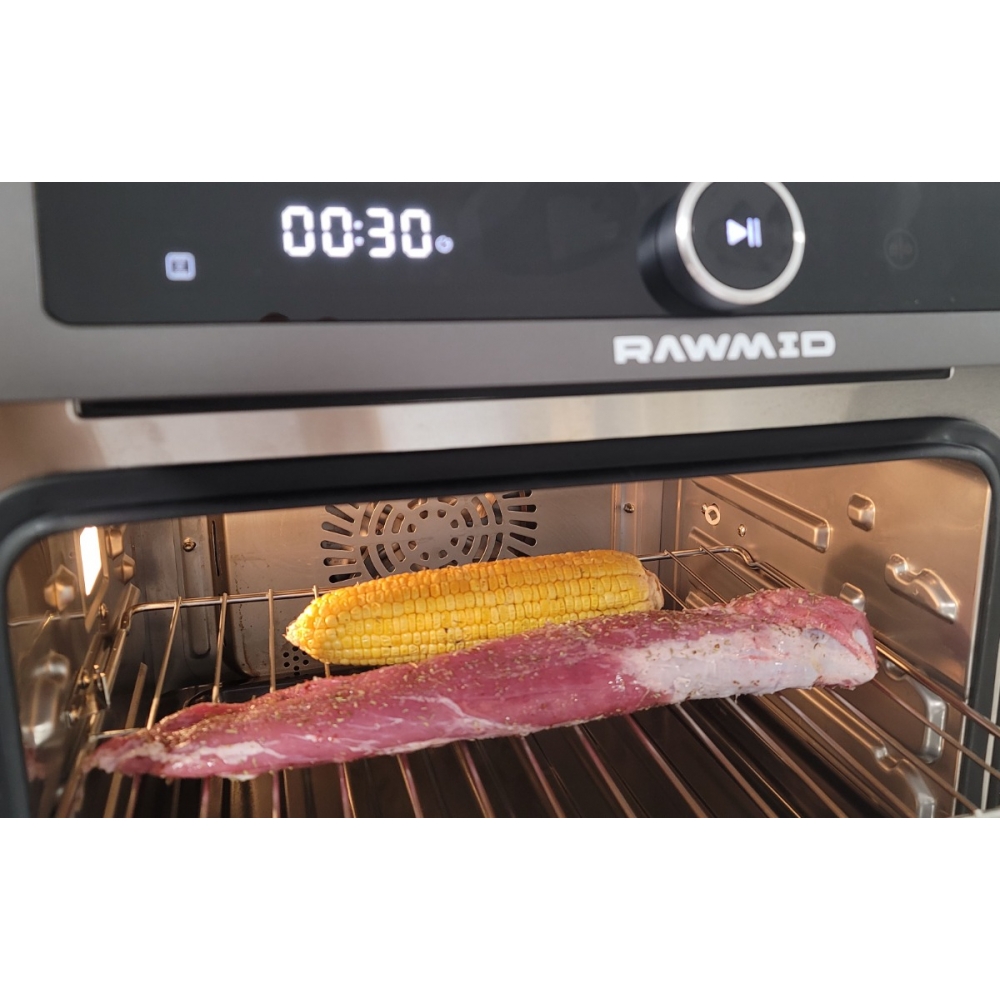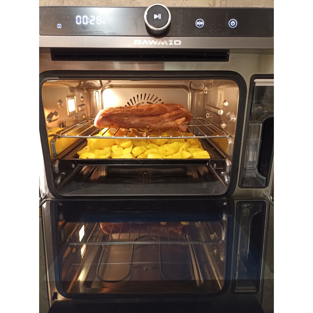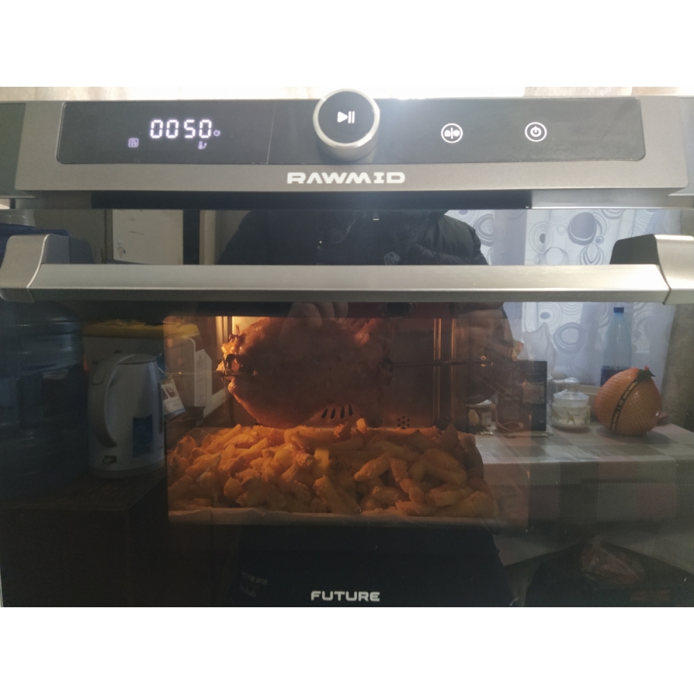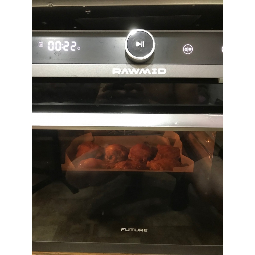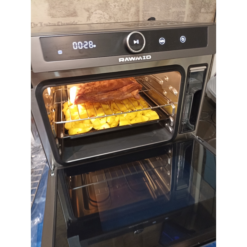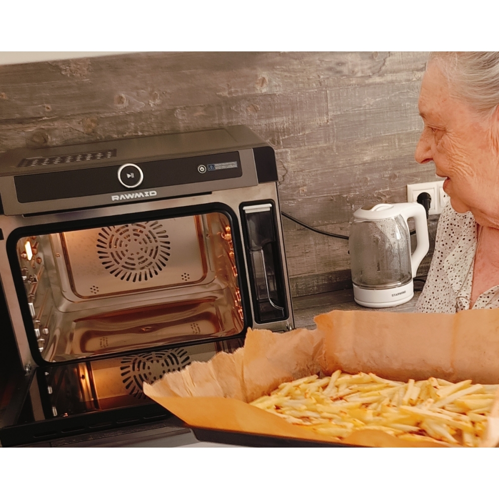 Паровая конвекционная мультипечь RAWMID Future RFM-01 — это многофункциональное устройство, позволяющее использовать функции гриля (духовки), аэрофритюрницы (обжарка потоком горячего воздуха) и пропаривания, причём все эти функции можно комбинировать.