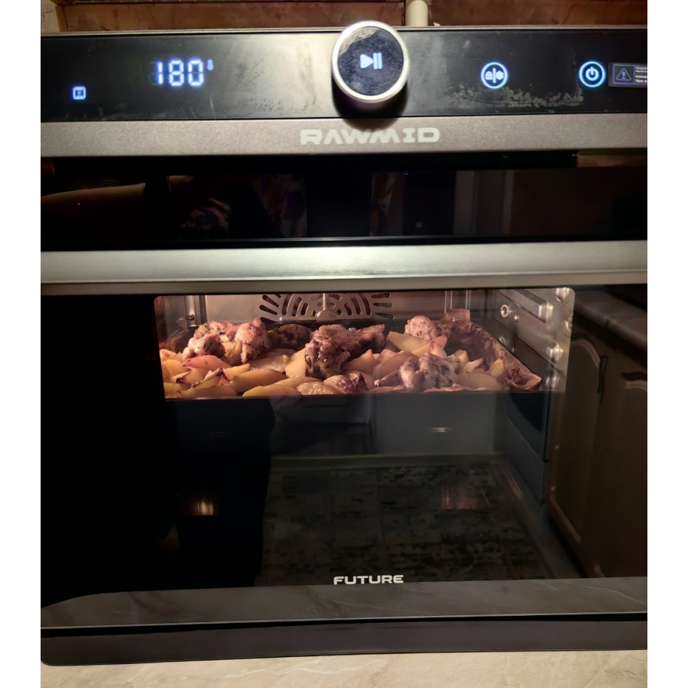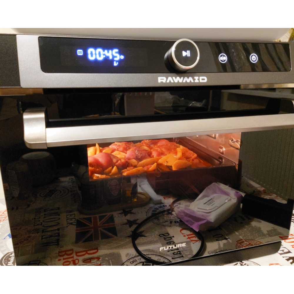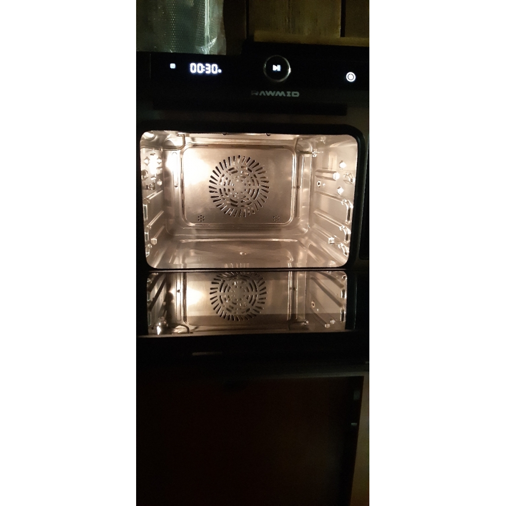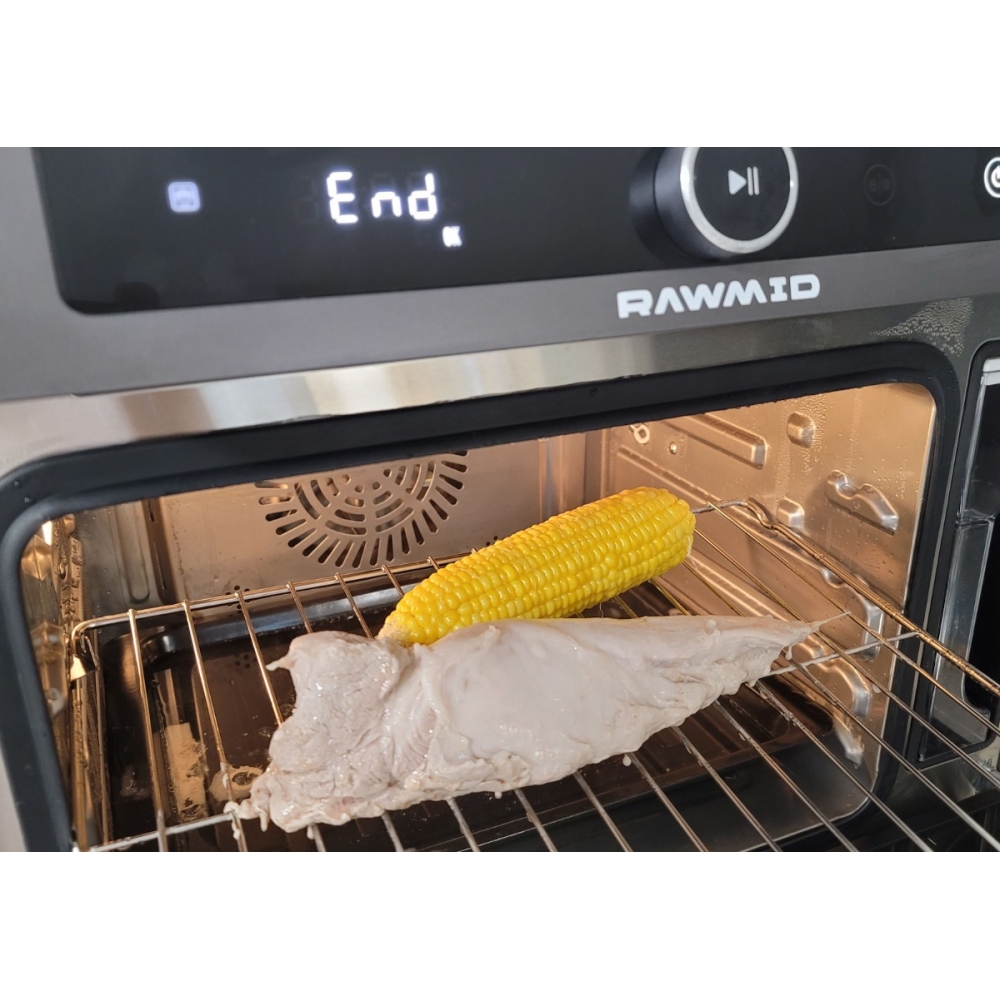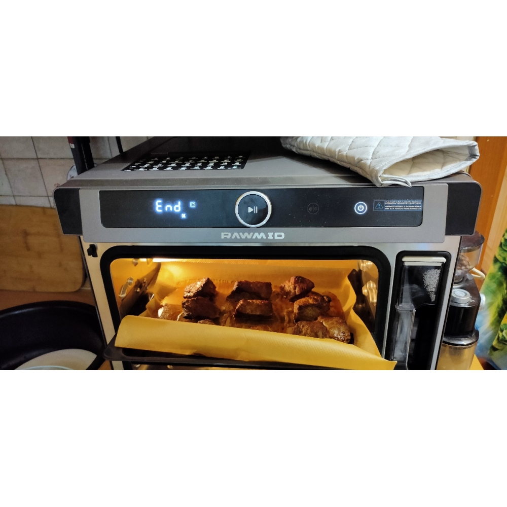 Паровая конвекционная мультипечь RAWMID Future RFM-01 — это многофункциональное устройство, позволяющее использовать функции гриля (духовки), аэрофритюрницы (обжарка потоком горячего воздуха) и пропаривания, причём все эти функции можно комбинировать.