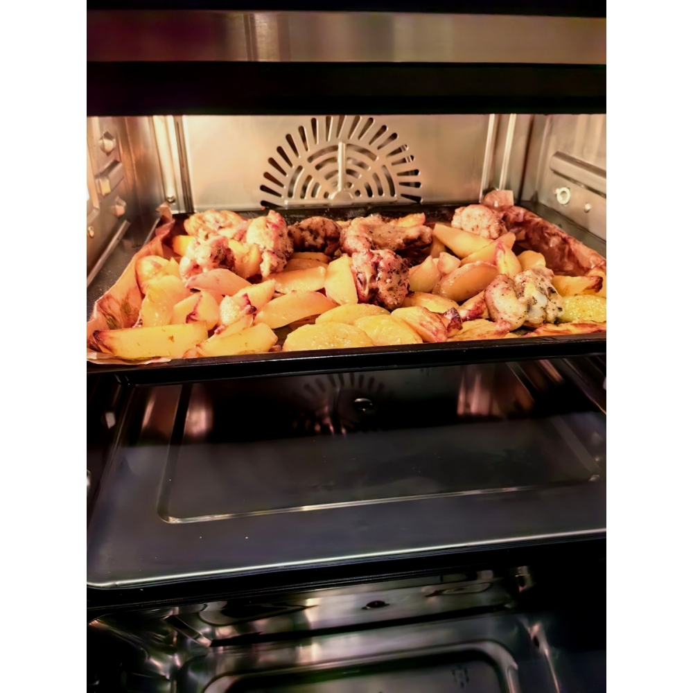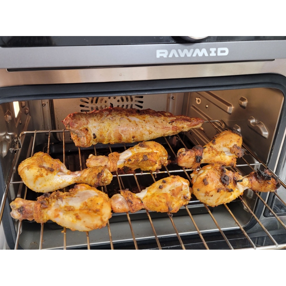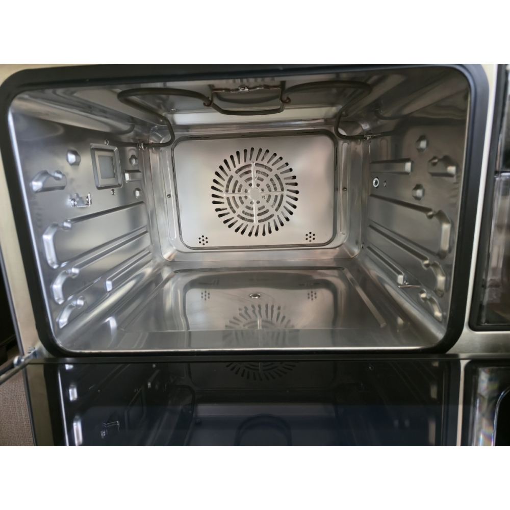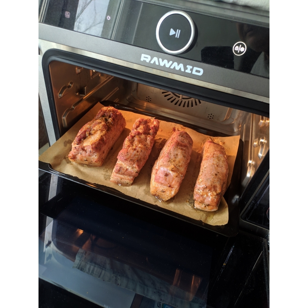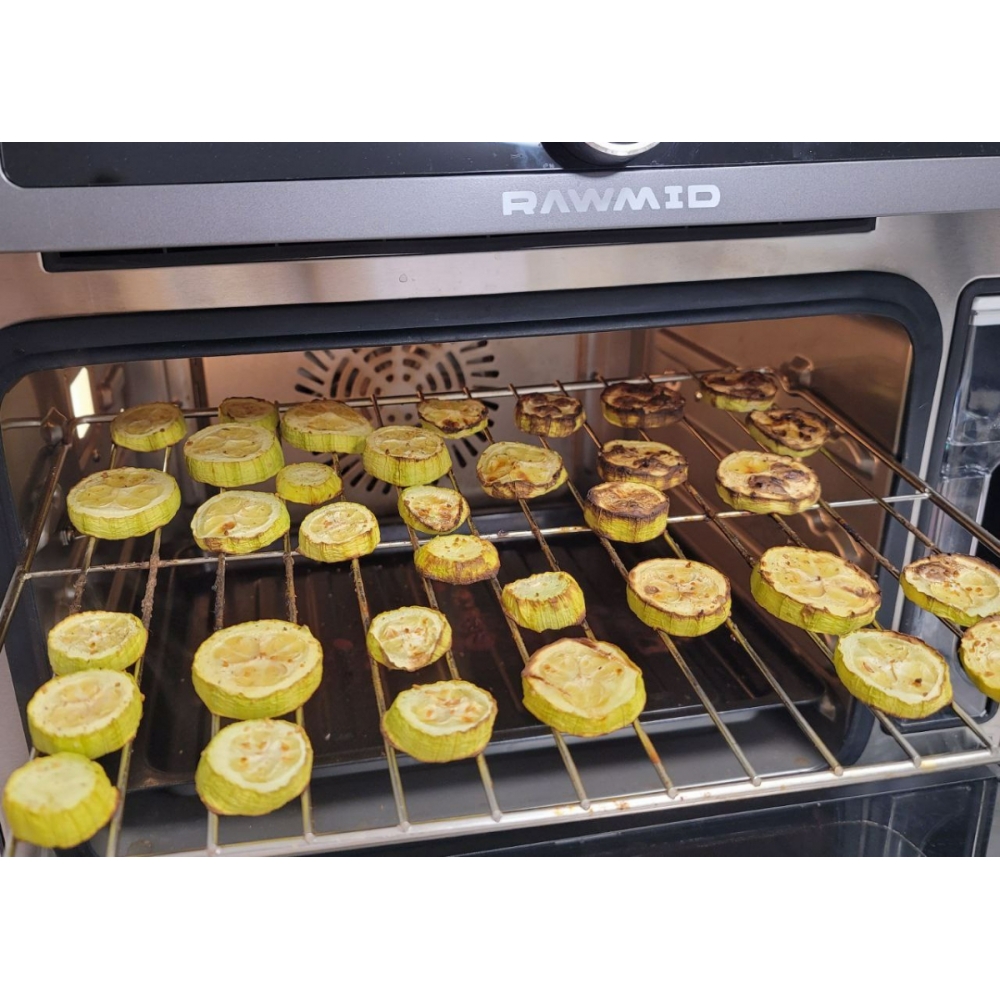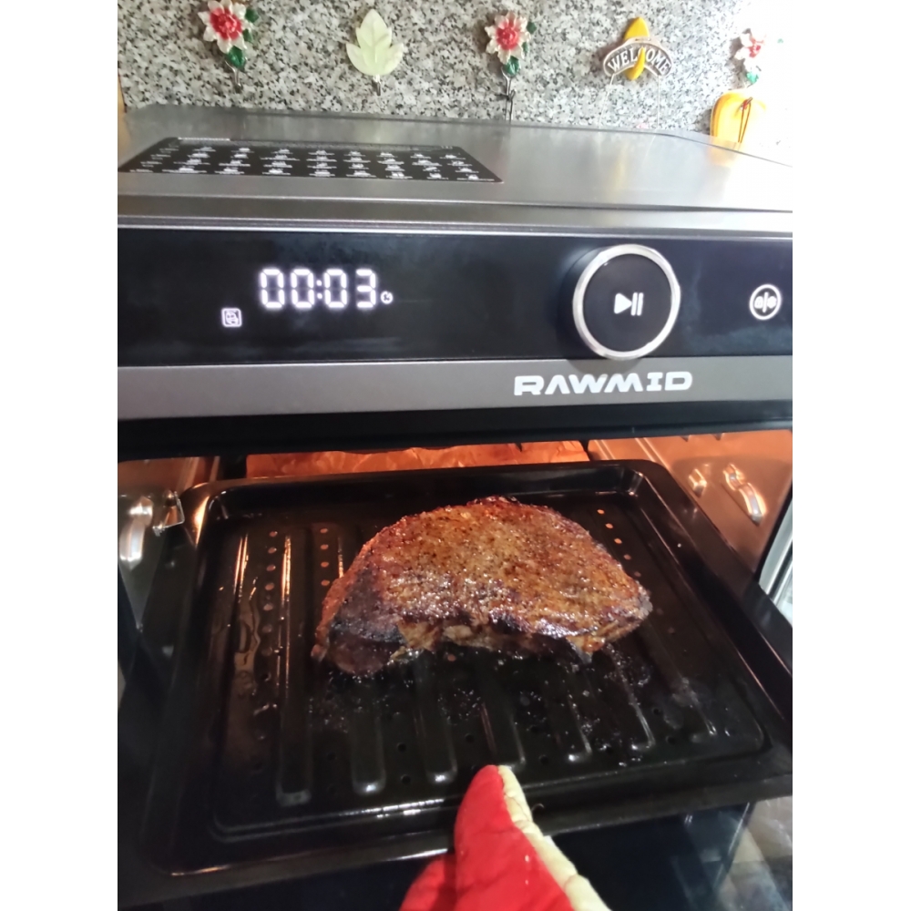 Паровая конвекционная мультипечь RAWMID Future RFM-01 — это многофункциональное устройство, позволяющее использовать функции гриля (духовки), аэрофритюрницы (обжарка потоком горячего воздуха) и пропаривания, причём все эти функции можно комбинировать.