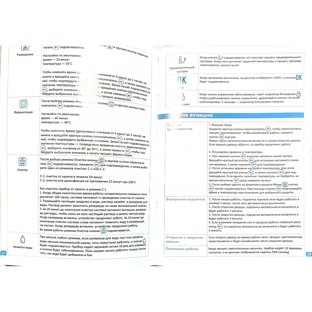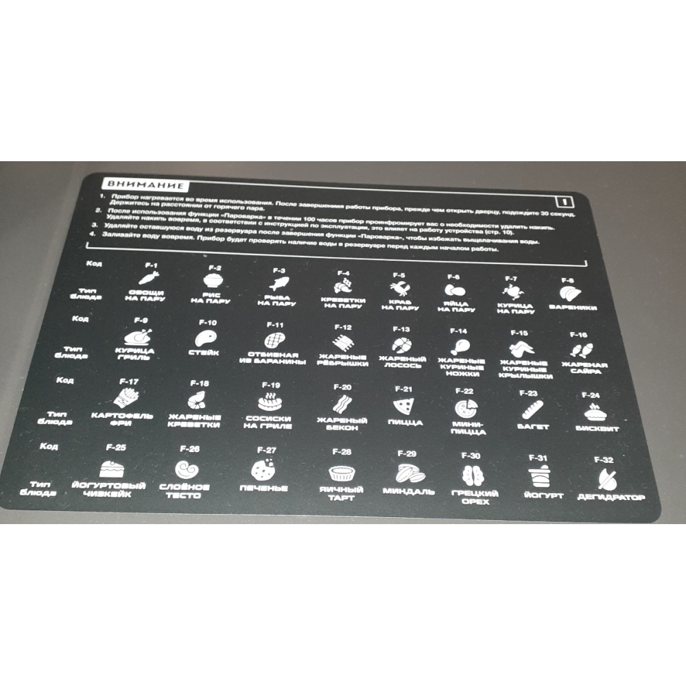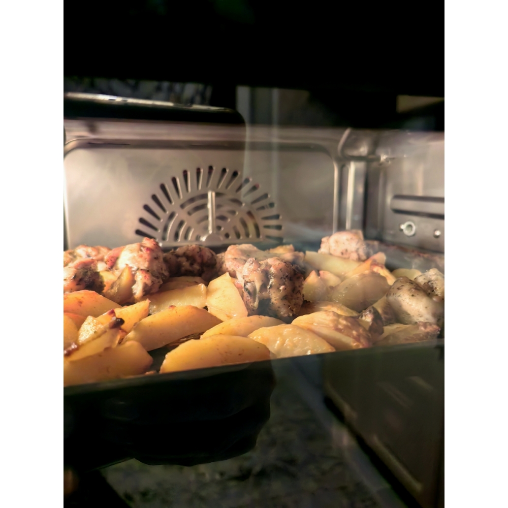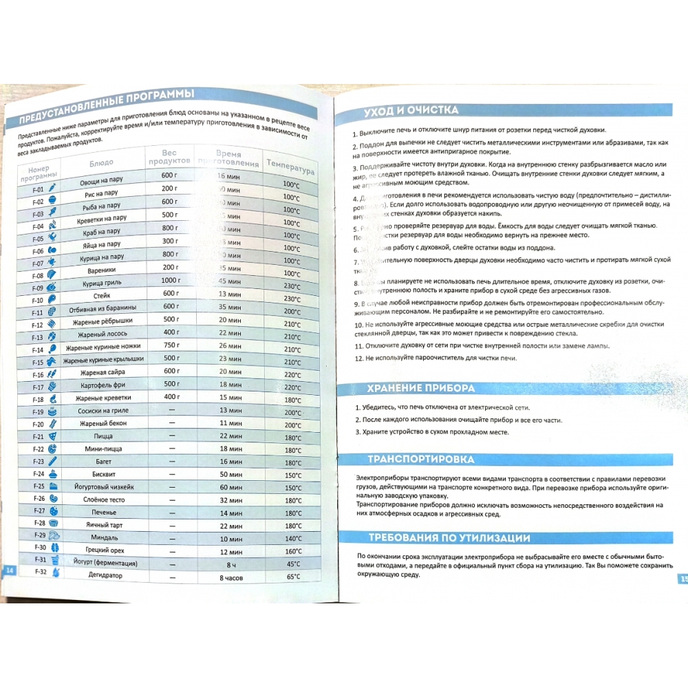 В печи предусмотрено 32 автоматических режима для приготовления различных блюд и выполнения различных задач: пироги, десерты, овощи на пару, жареная курица, пицца, хлеб, печенье, картофель-фри, йогурт и многое другое.