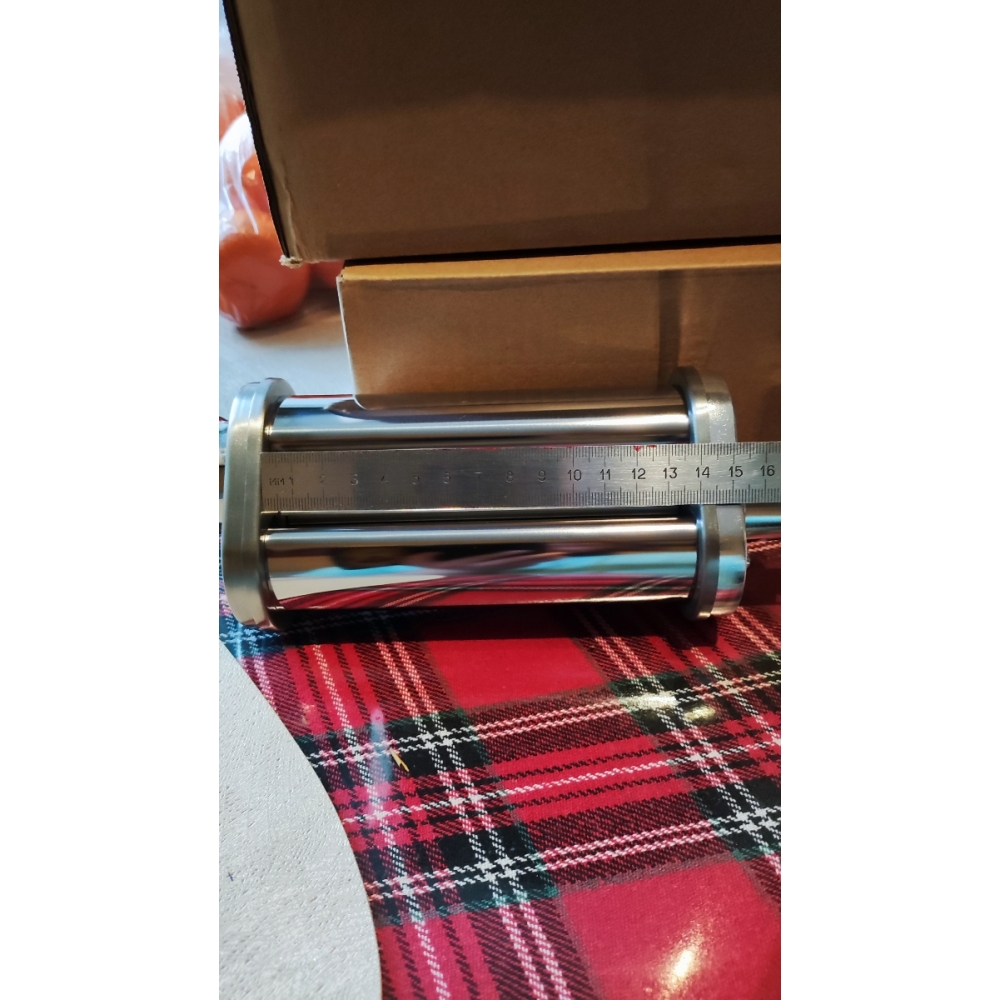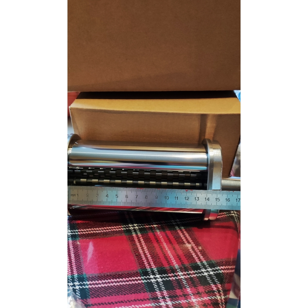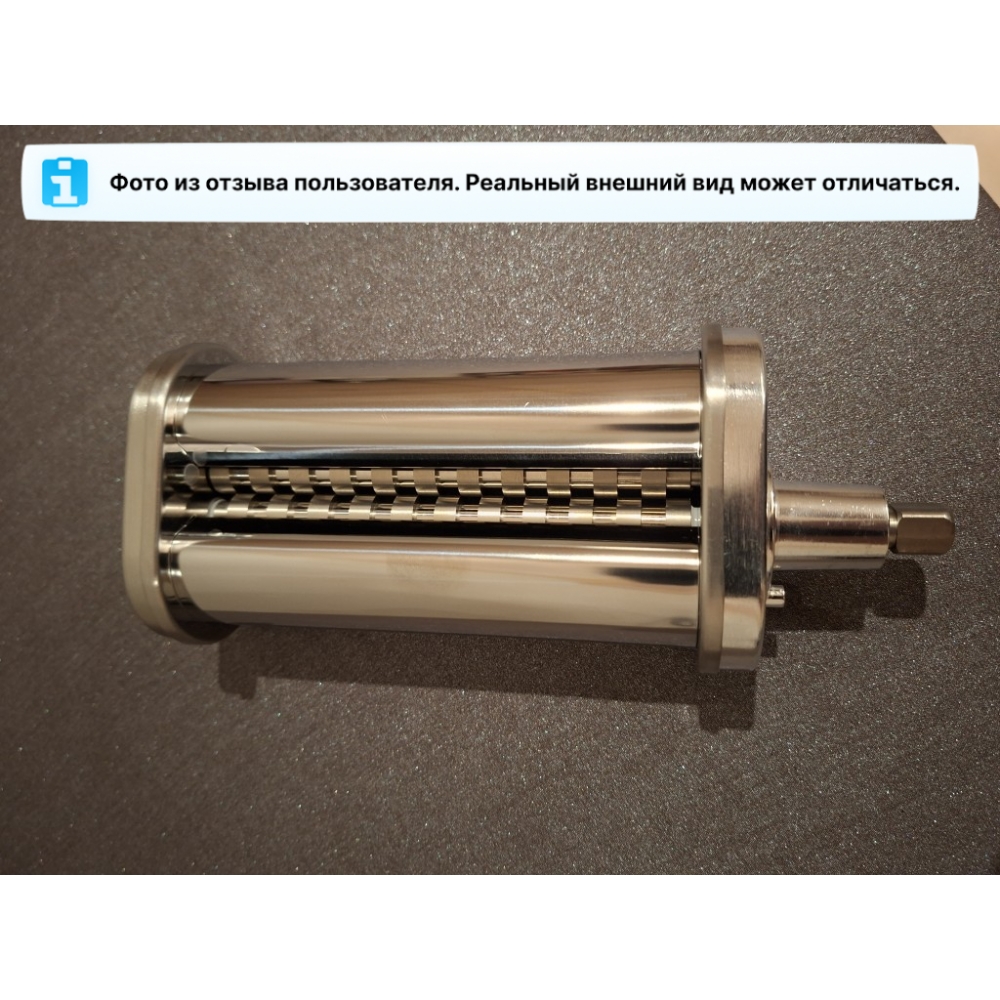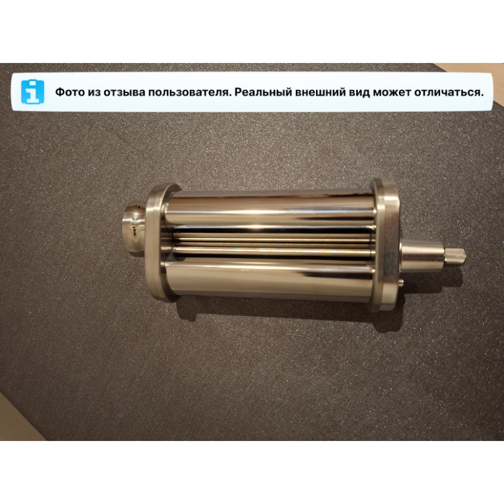 Насадка для автоматической раскатки теста позволяет легко и быстро получать идеально ровные пласты для лазаньи, пельменей, вареников, пирогов и прочих блюд. Вы сможете забыть про скалку и экономить ваши силы, нервы и время. Просто загрузите комок теста в насадку — и она всё сделает за вас. На выходе получается пласт шириной до 14 см и толщиной от 1 до 8 мм.