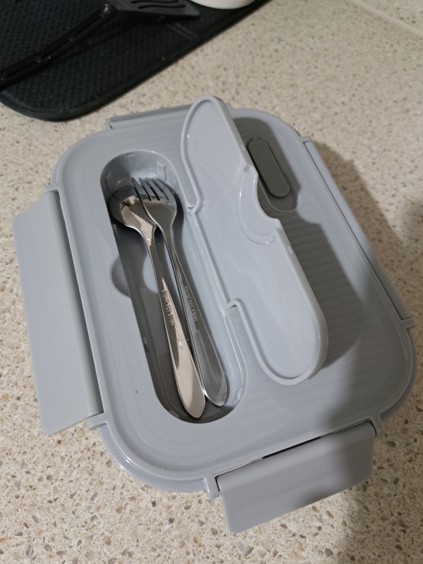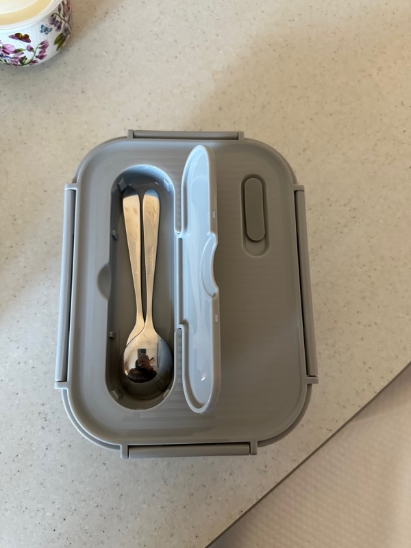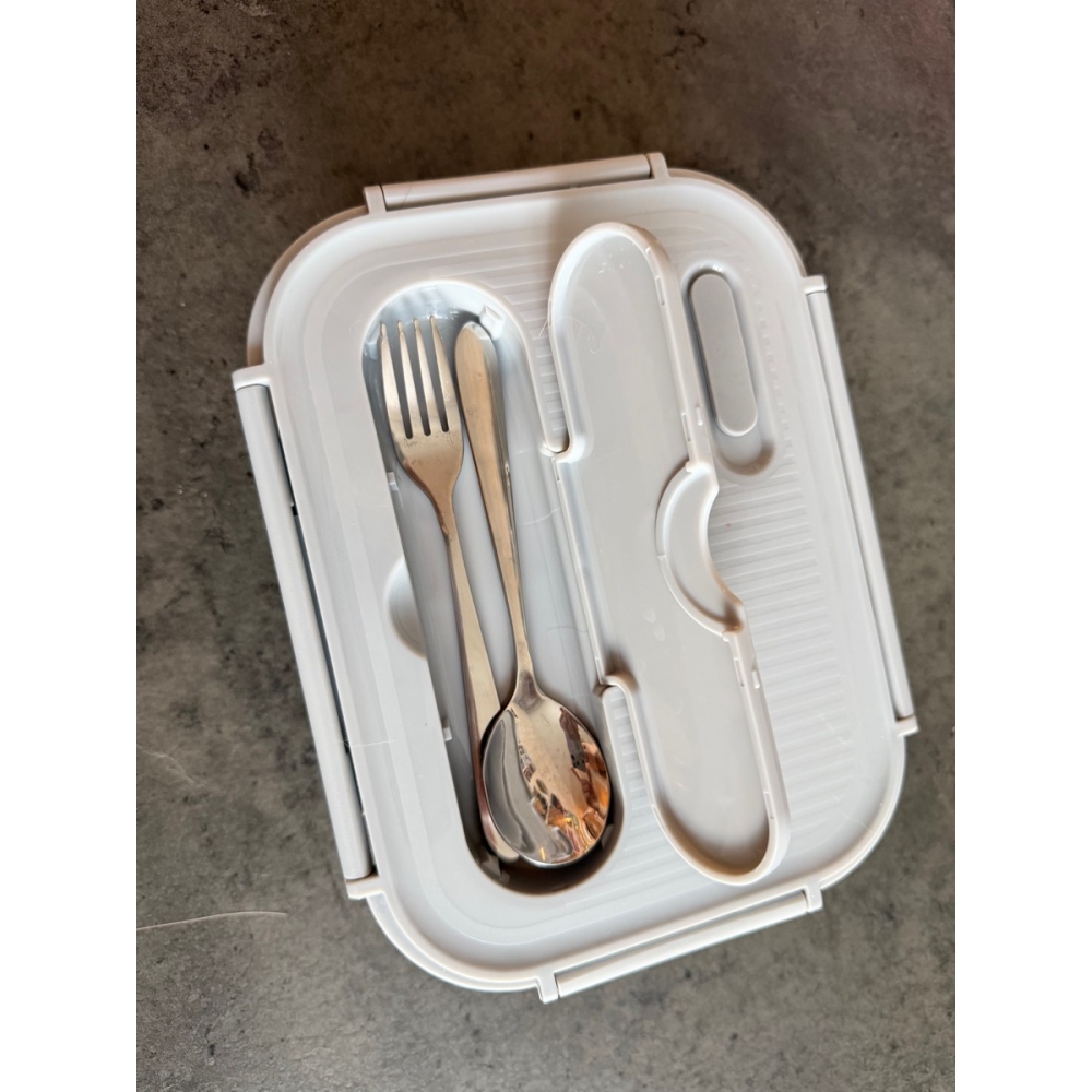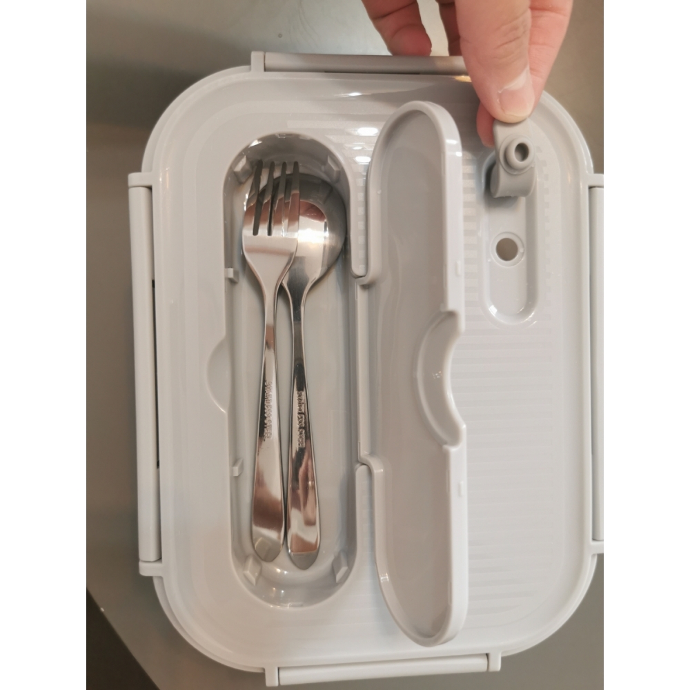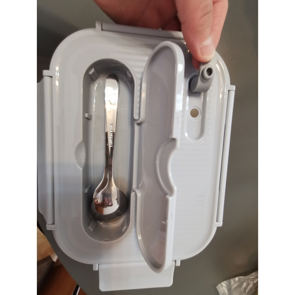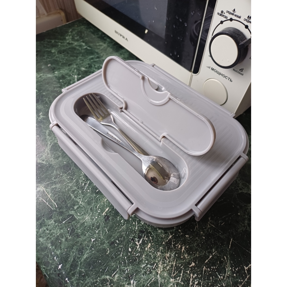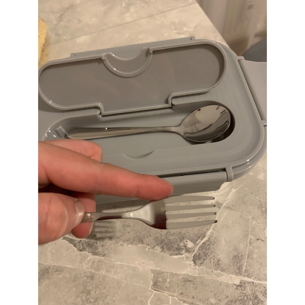 Продуманная конструкция с двумя отделениями позволяет брать с собой полноценный обед: основное блюдо, гарнир или закуску. Герметичная крышка с силиконовым уплотнителем и надёжными защёлками защищает от проливаний и помогает сохранить свежесть продуктов. Верхний отсек крышки аккуратно скрывает вилку и ложку, которые всегда под рукой — удобно в дороге, на работе или во время учёбы.