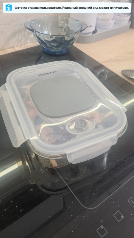 Главная особенность модели — вакуумная крышка с силиконовым уплотнителем и системой герметизации, которая надёжно блокирует доступ воздуха. Благодаря этому продукты дольше сохраняют натуральный вкус, аромат и текстуру.