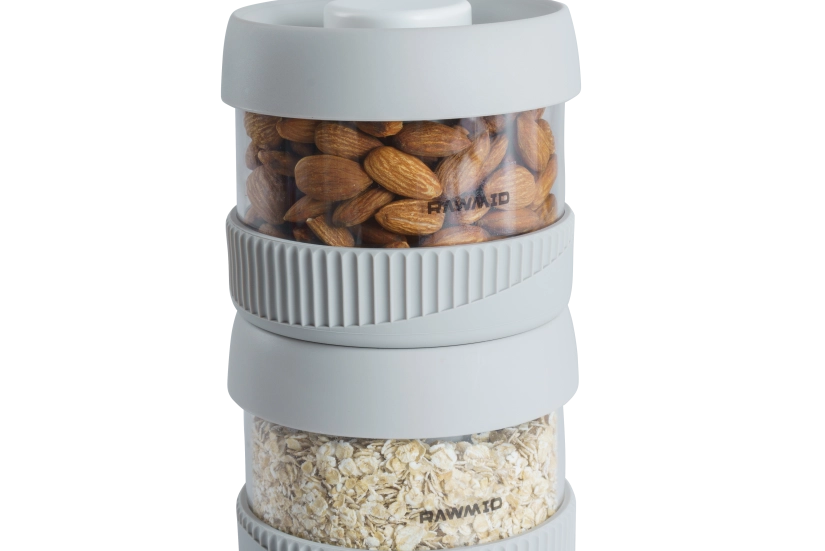 Основание контейнера выполнено из силикона, что делает установку устойчивой и предотвращает скольжение по поверхности. Компактная форма позволяет удобно разместить контейнер в шкафу, холодильнике или взять с собой.