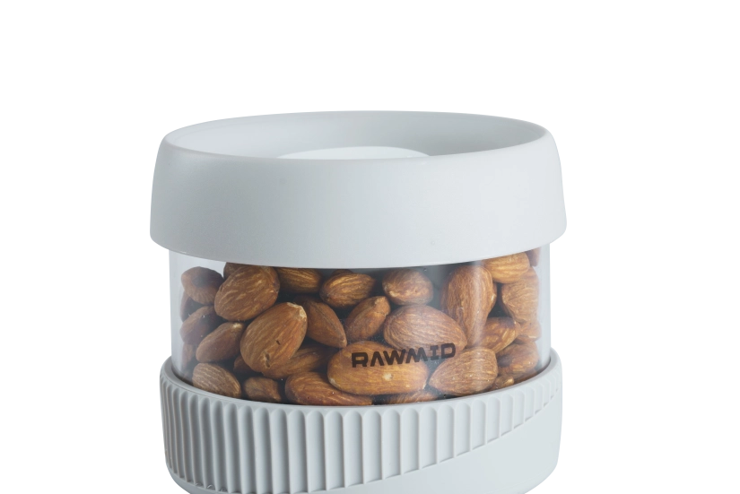 RAWMID RGC-04 — компактный вакуумный контейнер объёмом 450 мл, созданный для бережного и герметичного хранения продуктов. Он выполнен из боросиликатного стекла, которое устойчиво к перепадам температур, не мутнеет и не впитывает запахи. Материал безопасен для пищи и сохраняет внешний вид контейнера даже при ежедневном использовании.