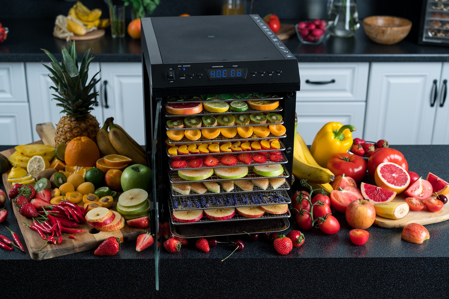Важнейшей особенностью дегидратора является то, что благодаря бережному методу сушки можно на длительный срок сохранить продукты. Больше не нужно думать о том, как надолго сберечь овощи и фрукты! Дегидратор сделает это за вас.