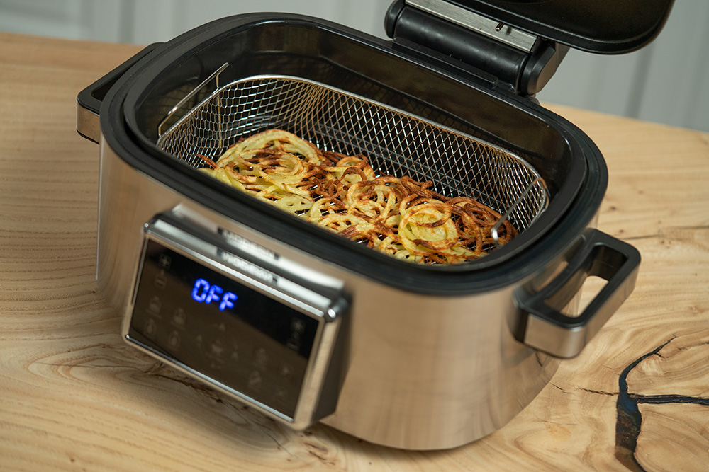 А ещё, если вы захотите самую вкусную картошку фри или любую другую рассыпчатую смесь, — и в той, и в другой модели есть специальная сетчатая корзина.