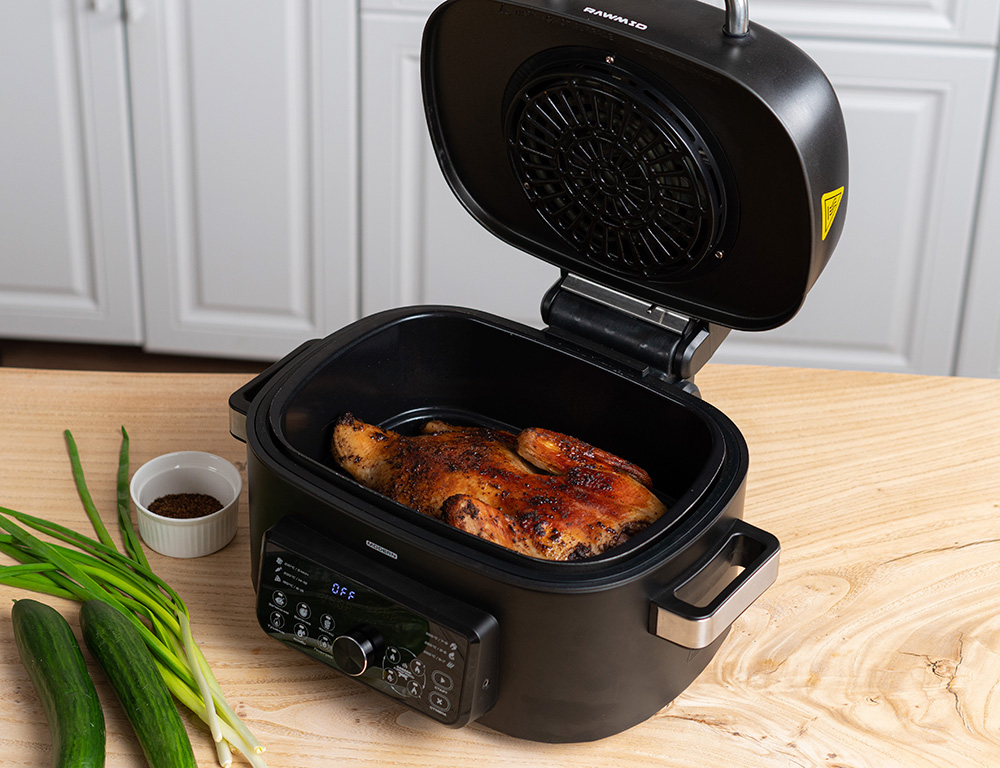 Эти два прибора схожи не только тем, что обжаривают продукт горячим воздушным потоком, но и имеют схожий форм-фактор. В обоих аэрогрилях RAWMID можно готовить почти без масла (с минимальным количеством), а обжарка получается равномерная со всех сторон. Но есть и существенные отличия не только между аэрогрилями, но и от прочих моделей на рынке.