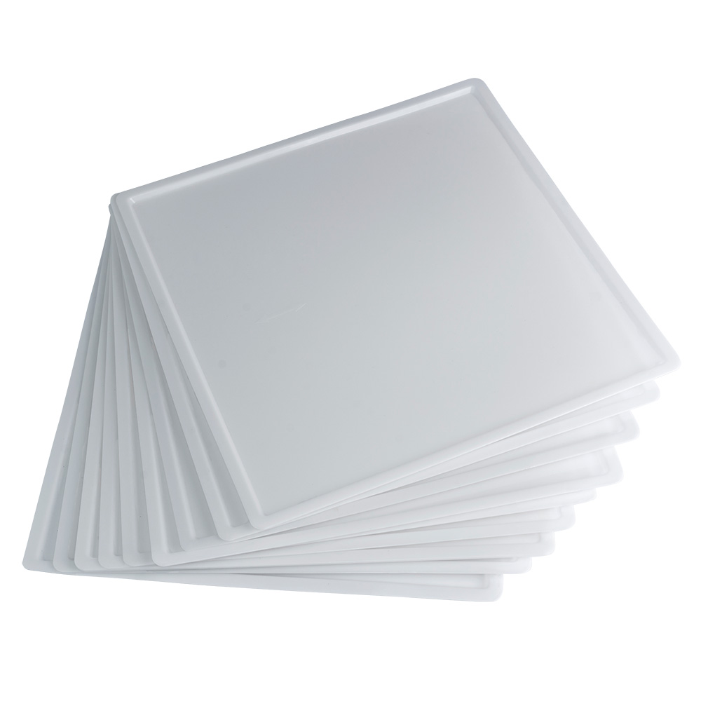 Поддоны из пищевого пластика с низкой адгезией: то есть продукты к поддонам прилипают намного меньше, или совсем не прилипают. А еще они очень гибкие и в них удобно делать пастилу и хлебцы. Такие поддоны предназначены для густой и плотной пастилы. Очень тонкий слой жидкой массы в таком поддоне может выгнуться и не принять необходимую форму из-за малого веса продукта. Если вам нужна тонкая пастила - обратите внимание на силиконовые листы, которые вы можете докупить отдельно на официальном сайте.