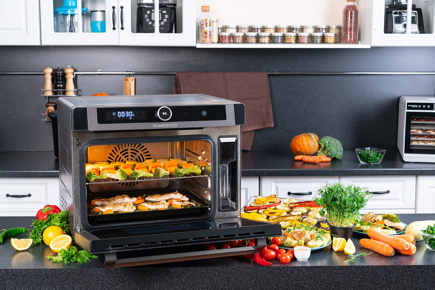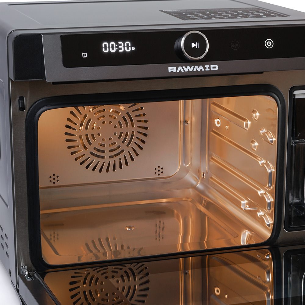 Мультипечь RAWMID RFM-01 — это настоящая революция на современной кухне, объединяющая в себе десяток полезных функций мультипечи: от профессионального приготовления на пару с сохранением витаминов до хрустящего аэрогриля и нежной выпечки. Благодаря продуманной конструкции и инновационным технологиям, процесс готовки становится проще, а результаты — безупречными.