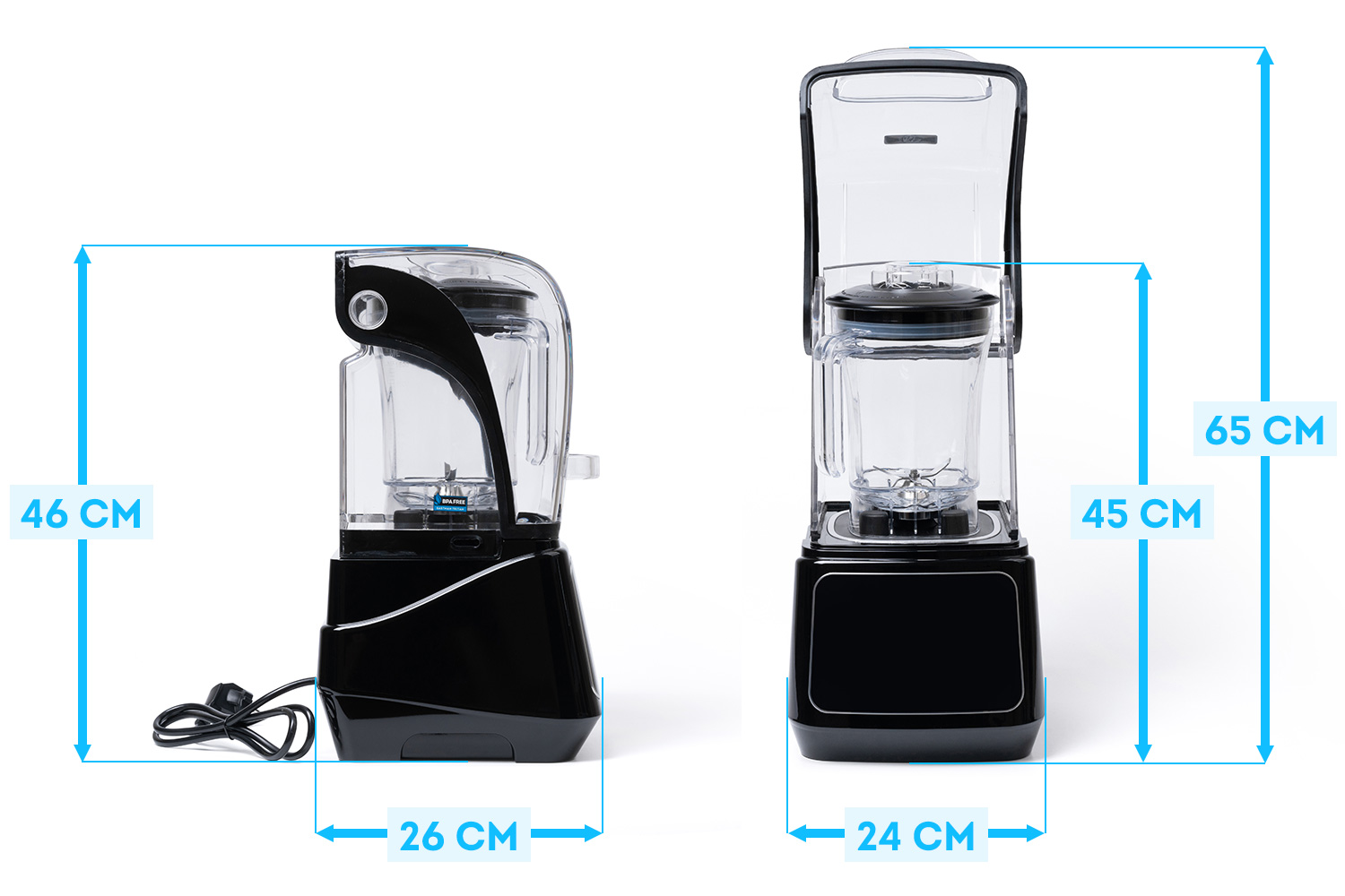 Это одно из ключевых преимуществ нашего блендера — съемный антишумовой колпак, который снижает уровень шума на целых 10 дБ. Если же вам не нужна эта "величественность", просто отложите колпак до лучших времен — он не обидится.