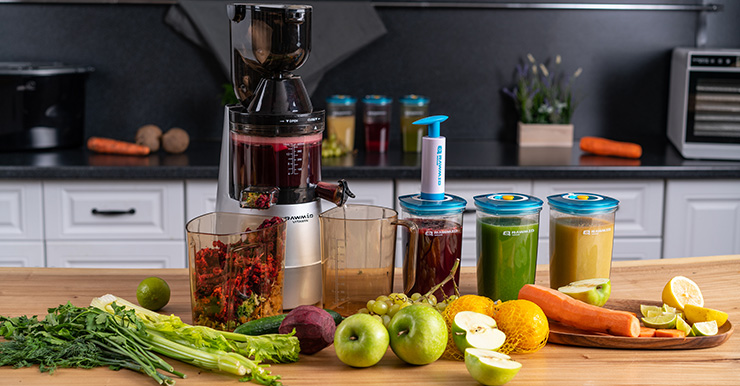 Пить свежевыжатые соки лучше через час-два после приема пищи. Концентрированные кислые соки, например ананасовый, лучше разбавлять водой, чтобы не обжечь слизистую. Не храните сок дольше 2х часов, чтобы успеть получить все витамины. Для долгого хранения используйте вакуумные контейнеры RAWMID RVC-01.