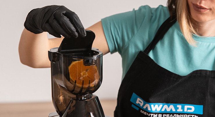 Плоды не обязательно очищать от кожуры — соковыжималка RAWMID без проблем её переработает. Однако в некоторых случаях кожура может сказаться на вкусовых свойствах свежевыжатого сока, придав ему горечь.