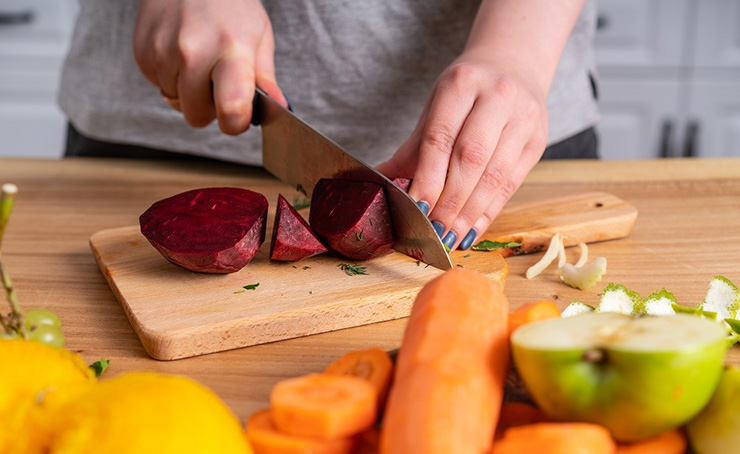 Волокнистые или очень твёрдые продукты, такие как сельдерей или свёкла, разрезайте на небольшие кусочки 4-5 см в виде соломки, так шнек быстрее и легче отожмет их. Например, перед отжимом крупной моркови разрежьте её вдоль пополам, а затем поперек на 3-4 равные части. Получившиеся кусочки должны быть 2-3 см в толщину и 5-7 см в длину.