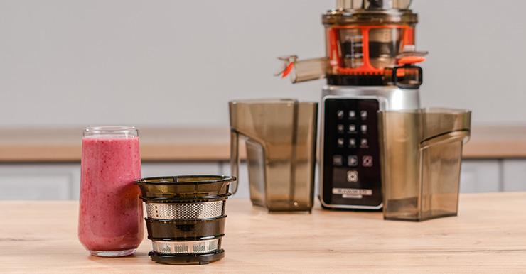 Чтобы уменьшить содержание мякоти, после отжима можно отфильтровать сок при помощи обычного сита. Кстати, в соковыжималке RAWMID Modern JDM-80 специальное сито уже входит в комплект. Также можно залить сок с мякотью в соковыжималку и ещё раз прогнать его.
