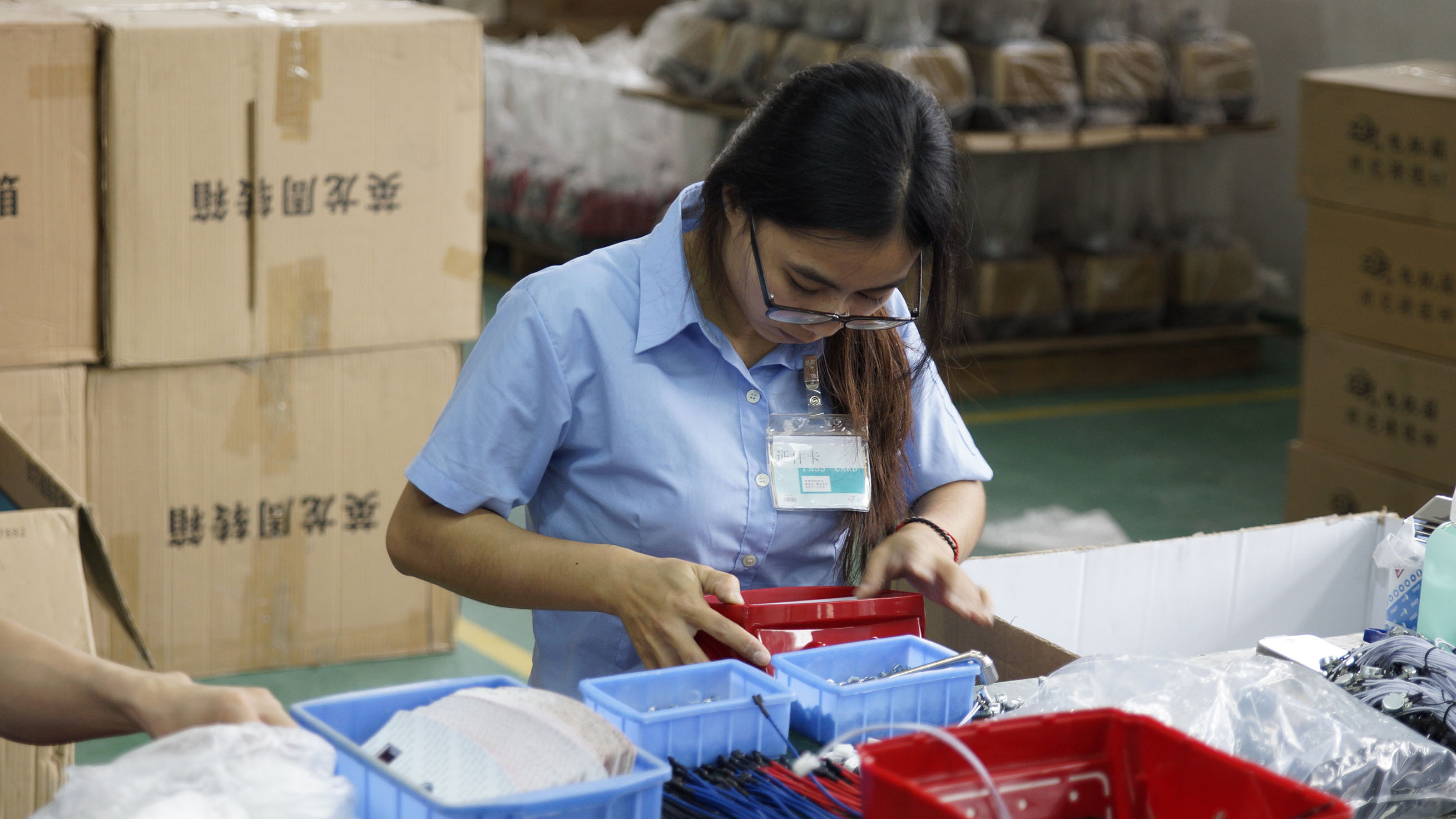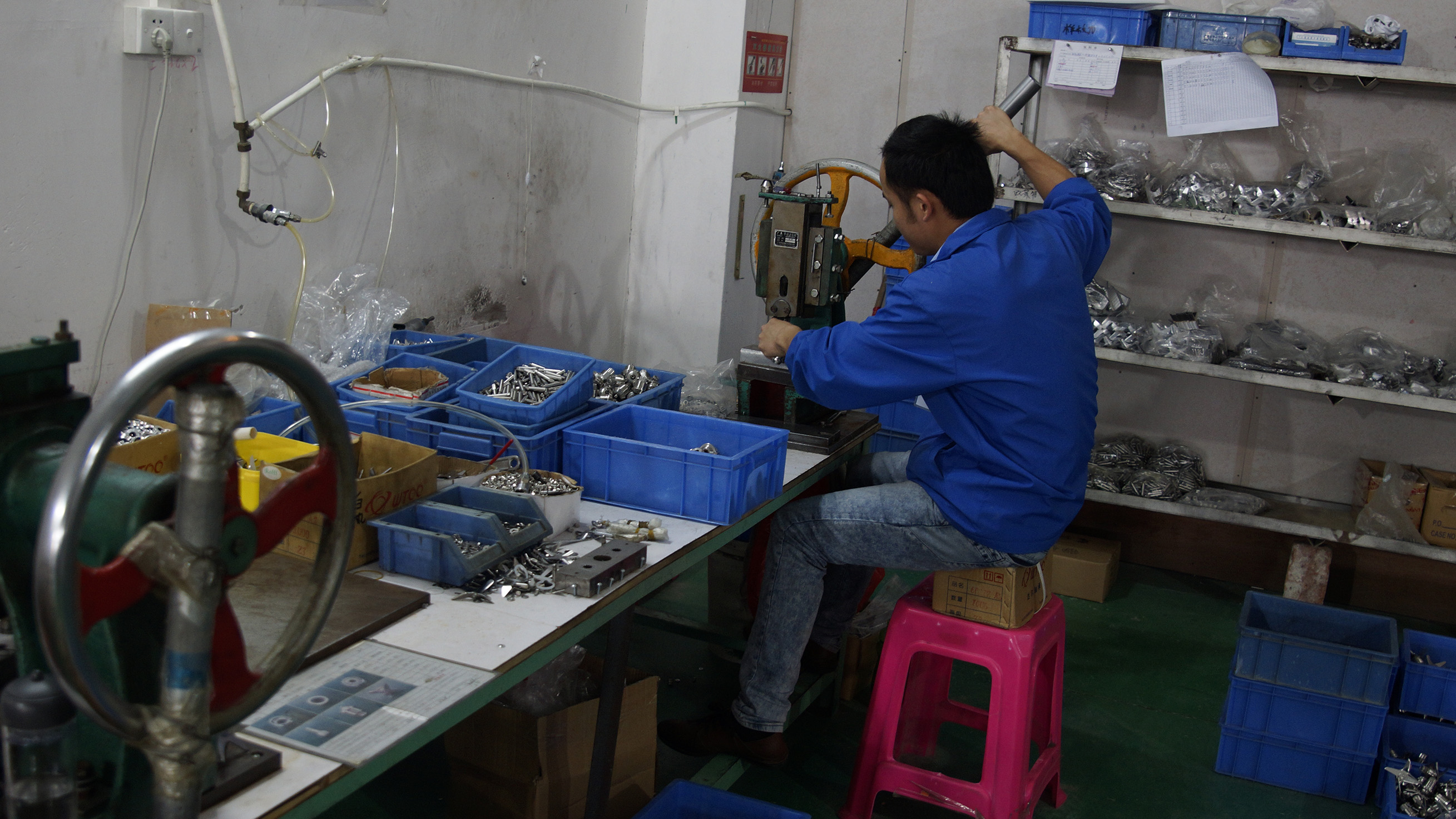 Сперва мы осмотрели место сборки и проверки ножей для блендера, ведь правильный выбор ножа играет ключевую роль в качестве измельчения, особенно для стационарных блендеров, где каждый элемент должен быть идеально подобран, как видно на фотографии, нож приходит на завод в разобранном состоянии и только там, с помощью специальных инструментов, металические детали обретают форму ножа. Рядом другой рабочий вставляет в гайки силиконовые прокладки. После того как ножи и гайки собраны, они доставляются дальше по производственной линии и крепятся к кувшину.