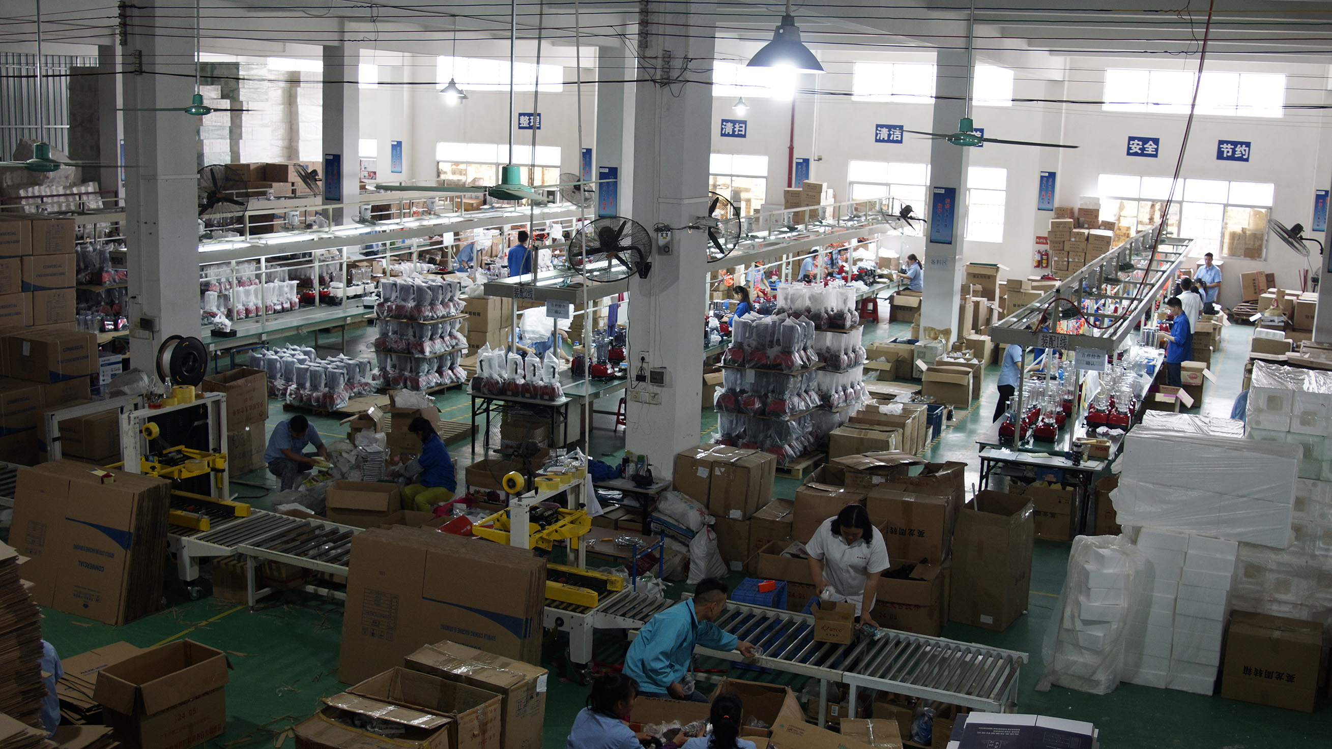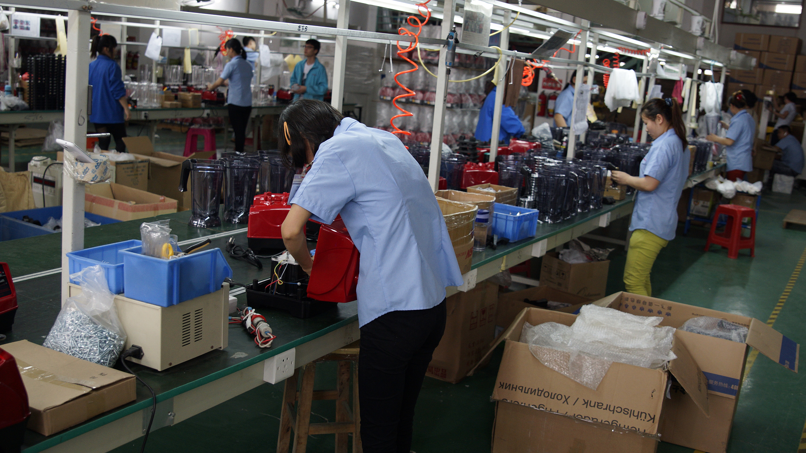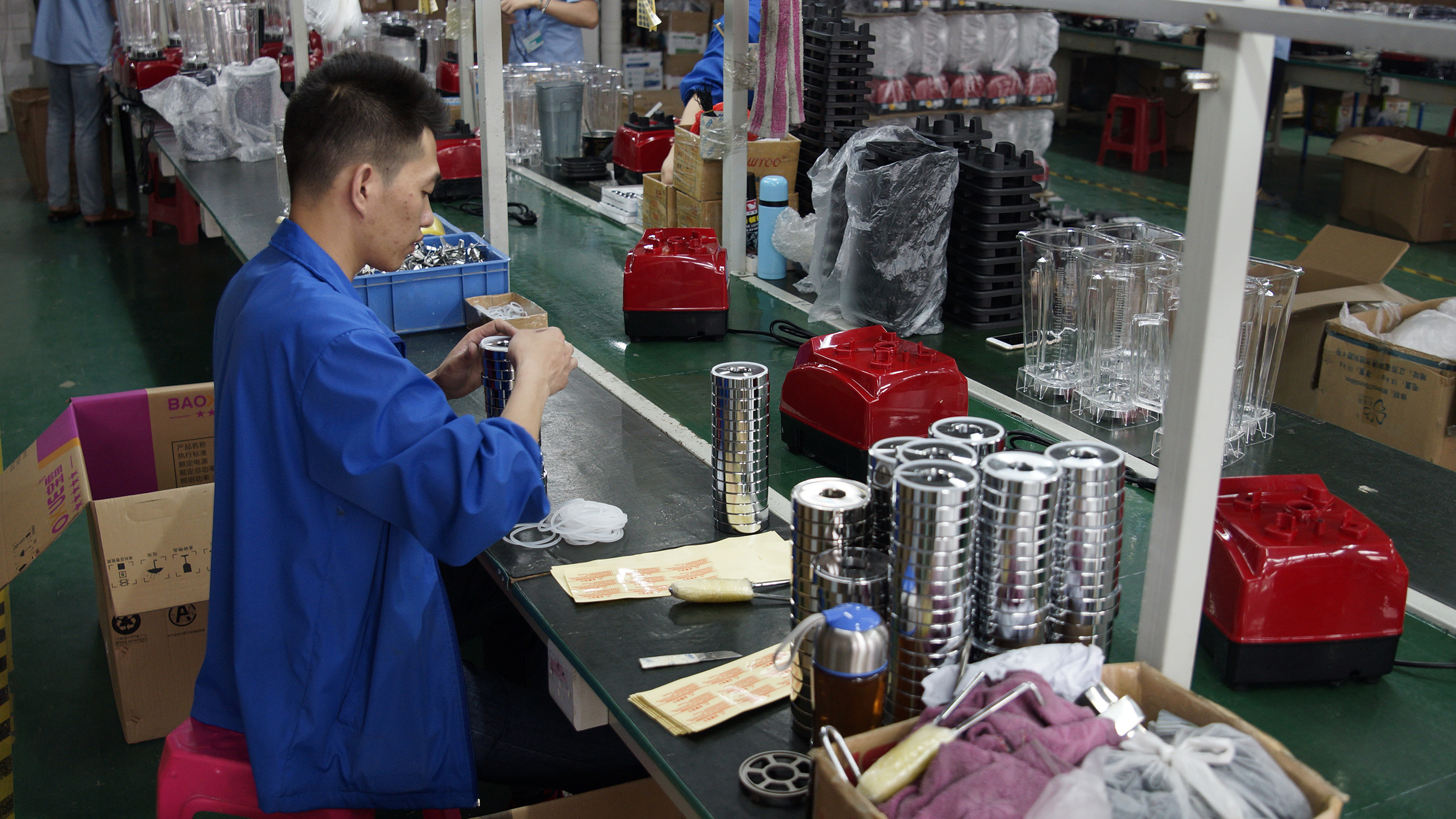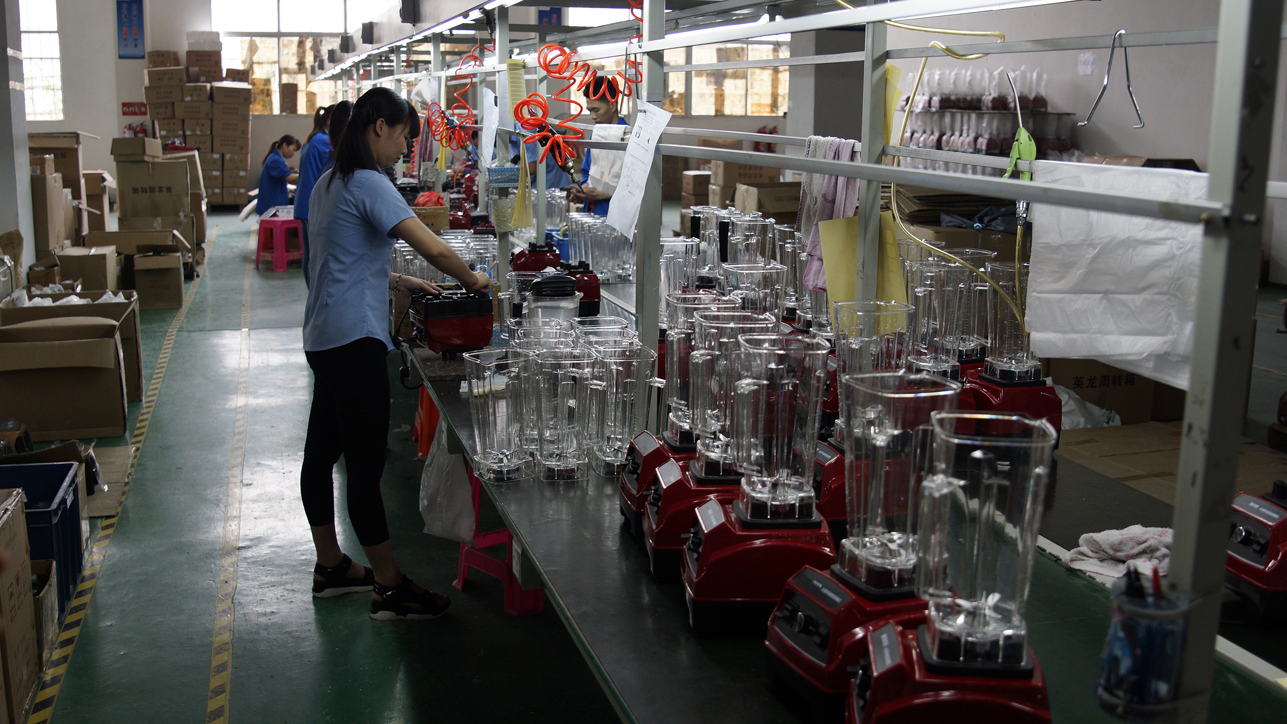 После того как кувшин и корпус собраны, остается еще немного времени до того как на Вашей кухне появится мощный стационарный блендер, готовый к использованию. Но перед этим, все же, есть пара важных этапов. Обеспечить передачу мощности блендера ножу позволит металлический грибок, устанавливающийся сверху и крепящийся болтом к корпусу и стальным запчастям внутри него. Вот все части находятся на своих местах и блендер отправляют к предпоследнему рубежу производственной линии, где тестируют мощность блендера, проверяют на брак и прочие недочеты. Не знаю, готовились они заранее или нет, но ни одного, даже самого мелкого недочета, при мне не было найдено. Когда стационарный блендер проверен и проходит отдел контроля качества, остается упаковать в коробки и отправить в Россию.