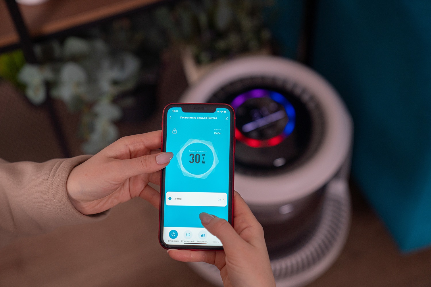 Климатический комплекс, как и другие климатические приборы RAWMID, подключается к Wi-Fi — им можно управлять со смартфона, а также объединять с другими приборами умного дома.