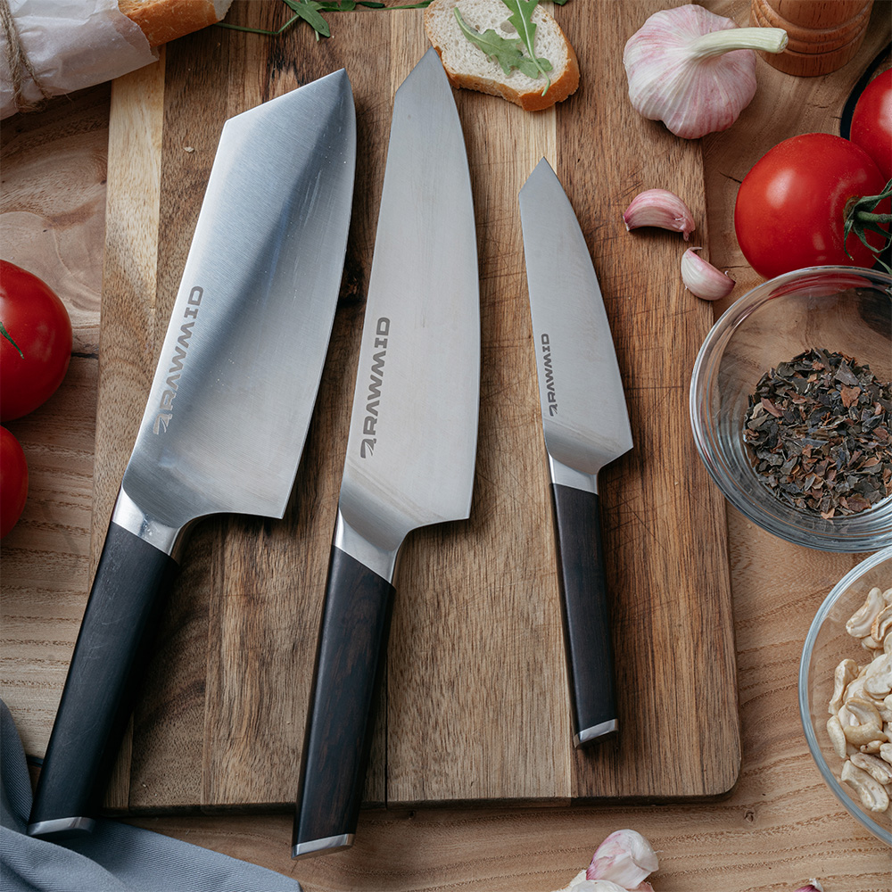 Ножи RAWMID – это надежные помощники на кухне, которые сочетают в себе качество, стиль и функциональность. Правильный уход и использование позволят сохранить их остроту и внешний вид на долгие годы. С острыми ножами процесс готовки становится быстрее, безопаснее и приятнее. Именно острые кухонные ножи для дома превращают приготовление пищи в удовольствие, а не в рутинную обязанность.