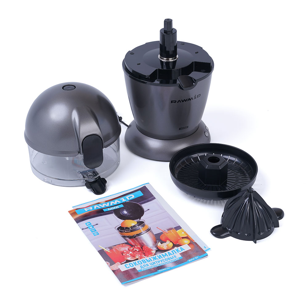 RAWMID Mini RMJ-02 может использоваться в полуавтоматическом режиме — если вы хотите сами прижимать фрукт, как в классических моделях. Это полезно в случаях, когда нужно точно контролировать давление или использовать нестандартные плоды.