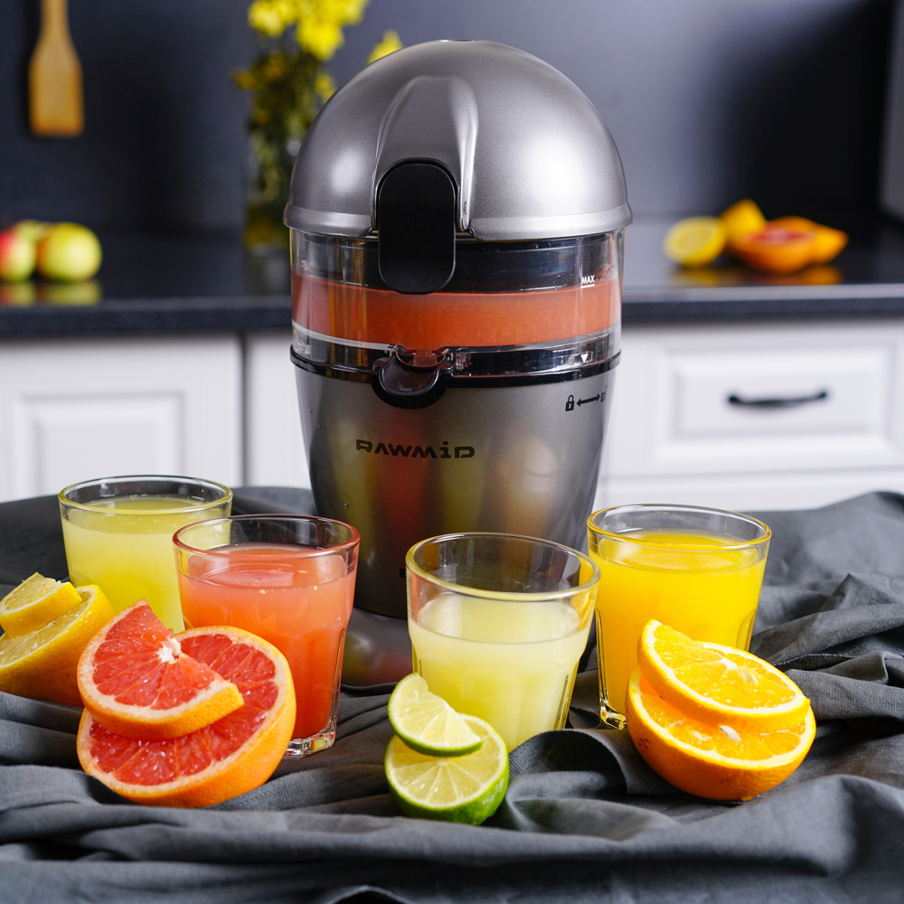 RAWMID Mini RMJ-02 разрабатывался с учётом разнообразия цитрусовых, а также нестандартных фруктов. Он с лёгкостью справляется с: апельсинами, лимонами, лаймами, мандаринами, грейпфрутами и даже с гранатом (что действительно уникально для цитрусовой соковыжималки).