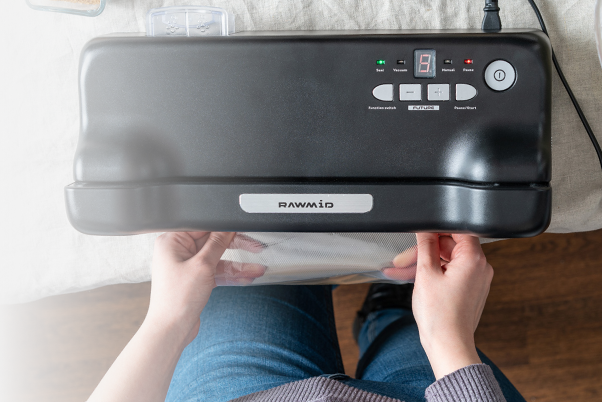 Если вакуумируете при помощи вакууматора, то перед погружением продукта лучше завернуть края пакета. Это поможет не испачкать его в месте запаивания и сделать более герметичный шов.